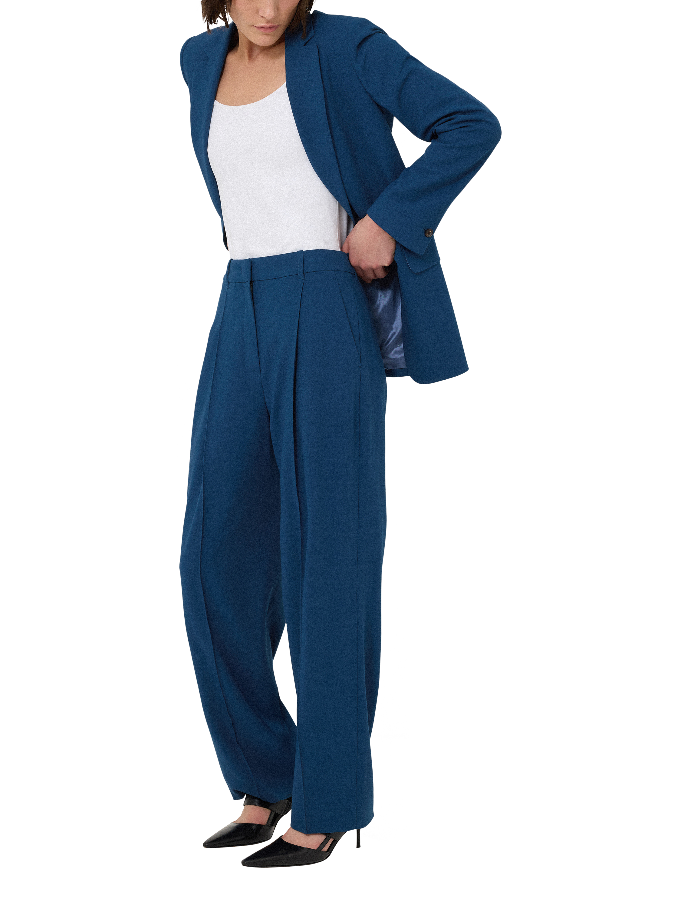 The Dexter trousers are a versatile addition for the wardrobe. Tailored for a subtly tapered leg, front pleates create a streamlined, leg-lengthening effect.