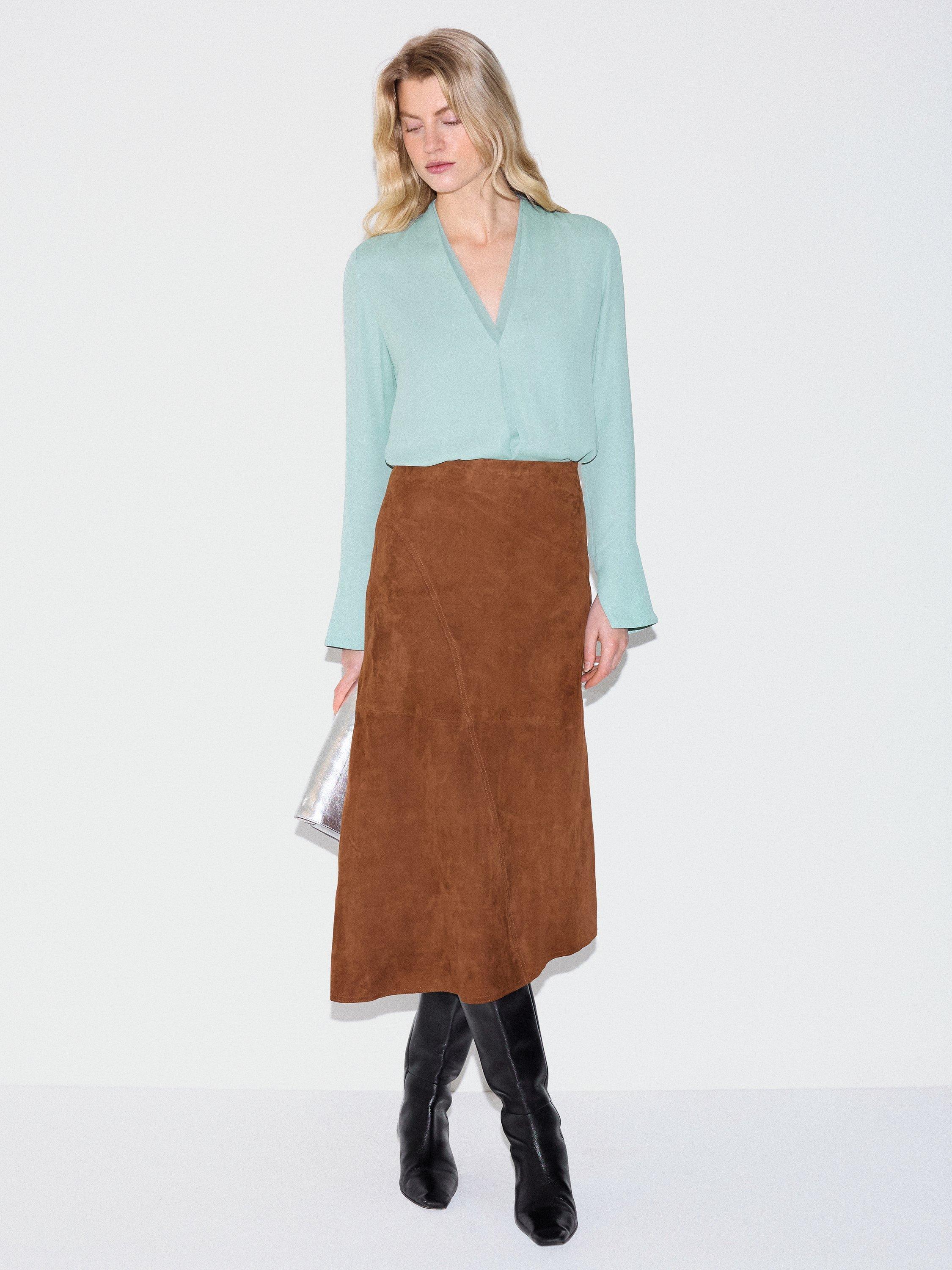 This versatile top features a fluid double-layer design that offers a flattering drape against the silhouette. An essential foundation piece, style with tailored separates or relaxed denim for a polished everyday look.