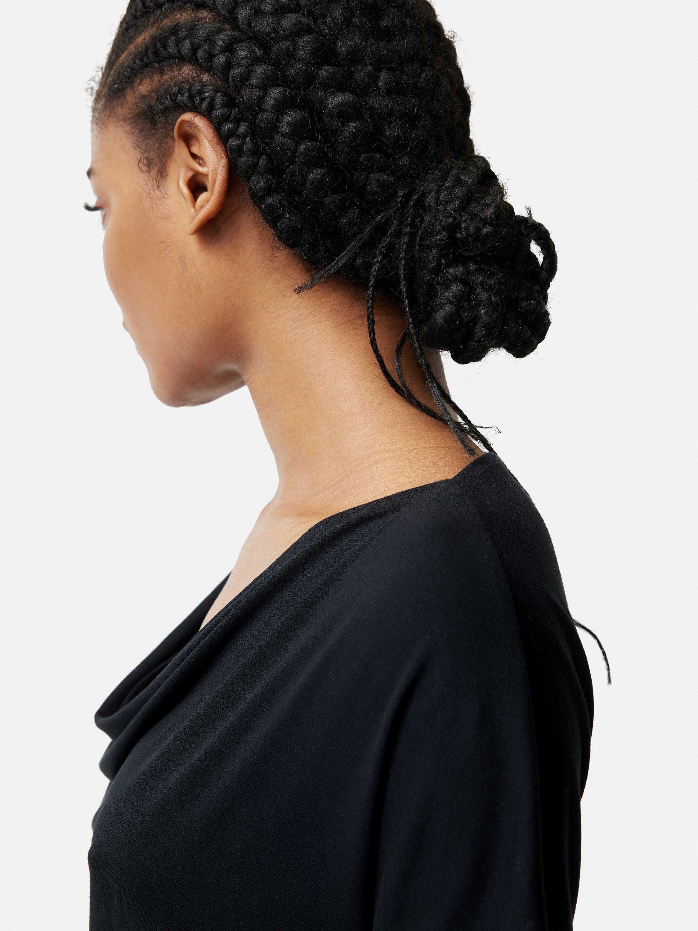 With its sweeped cowl neckline and short sleeves, it is made with light yet robust blended fabric for longevity of wear.