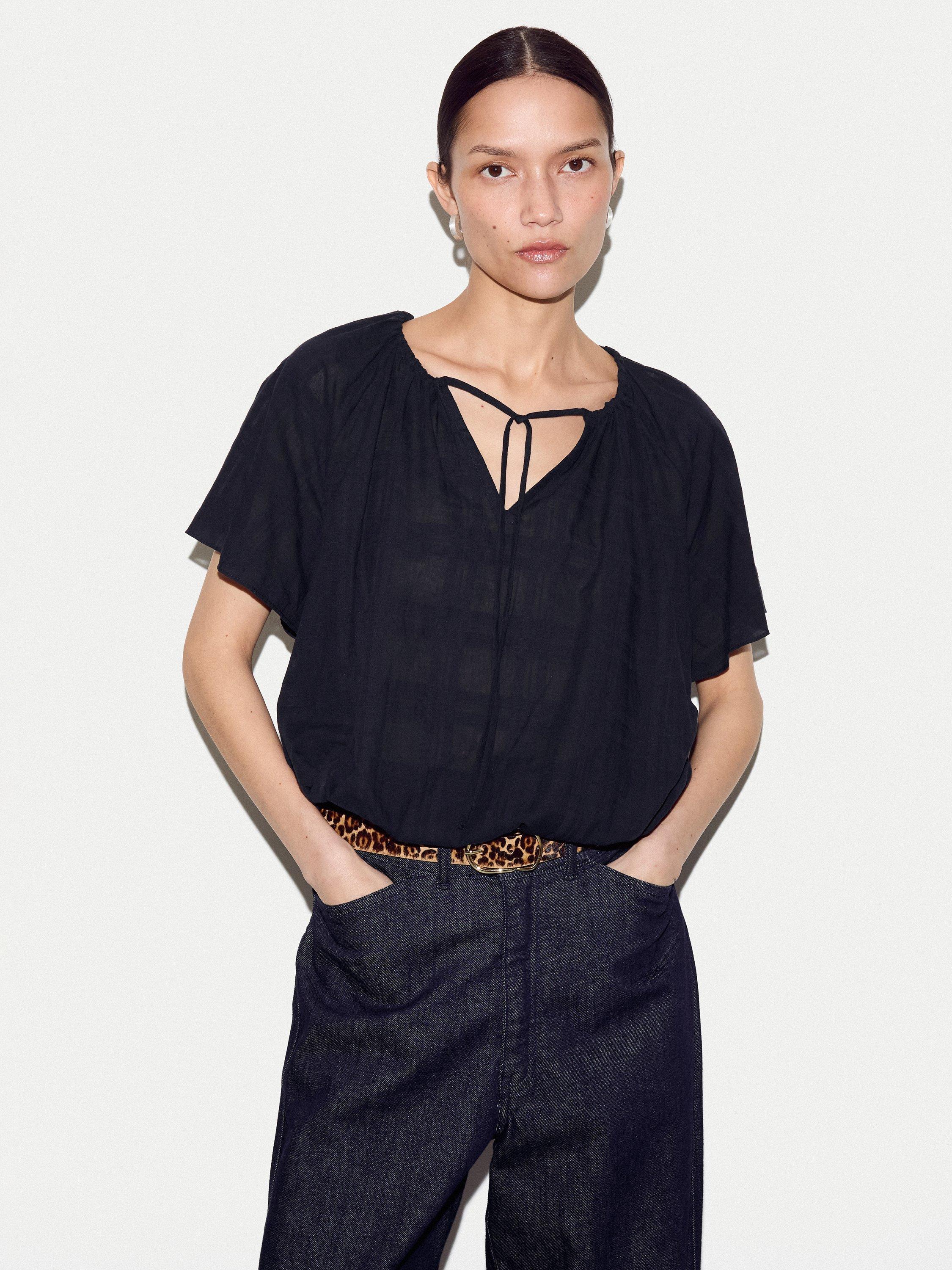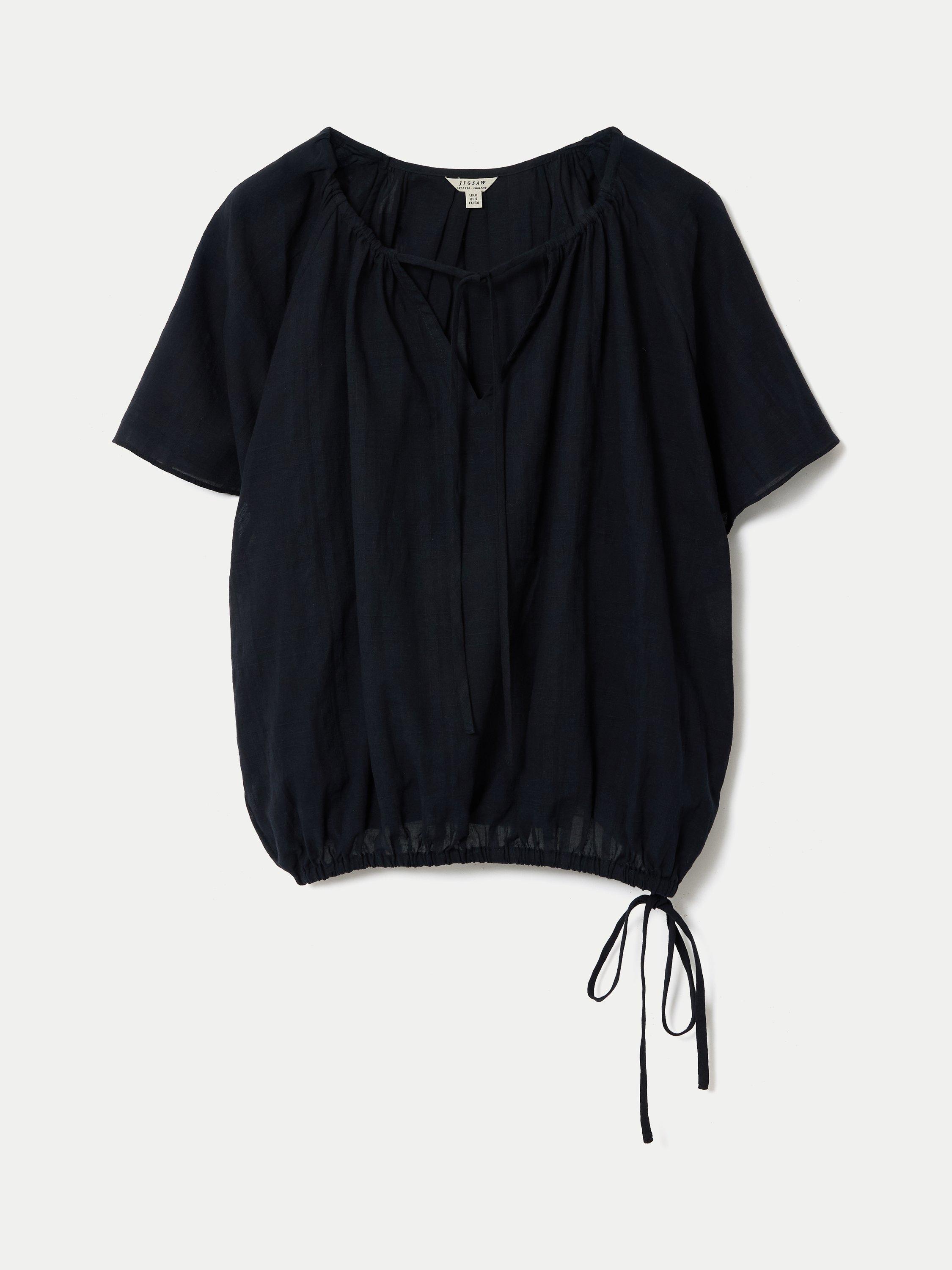 This lightweight top features subtle drawstring detail at the neckline for versatility. Crafted from soft, breathable fabric, it’s an easy-to-style piece that works well with tailored trousers or casual shorts alike.