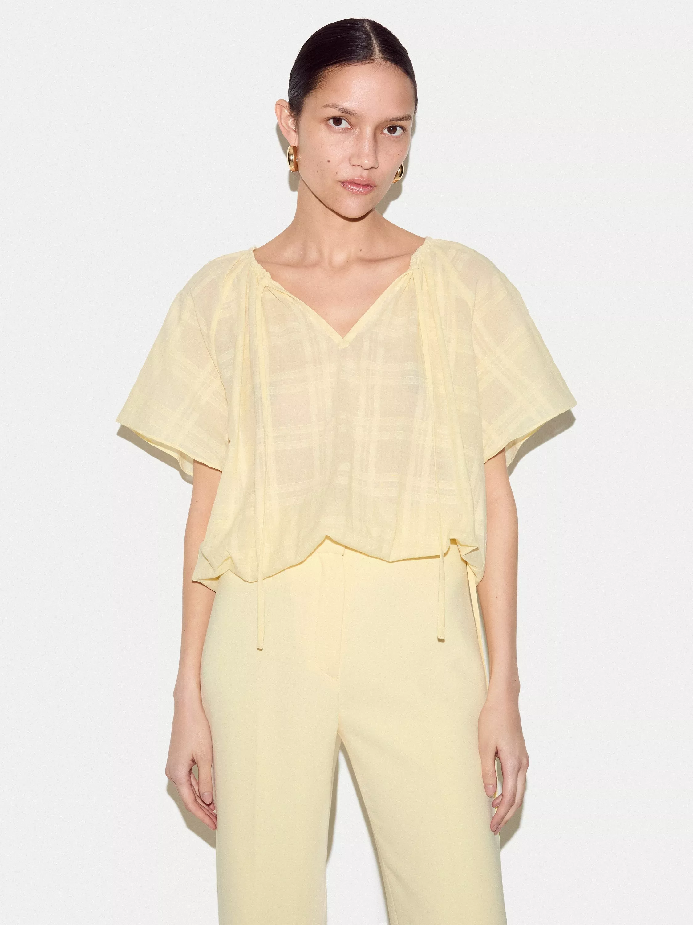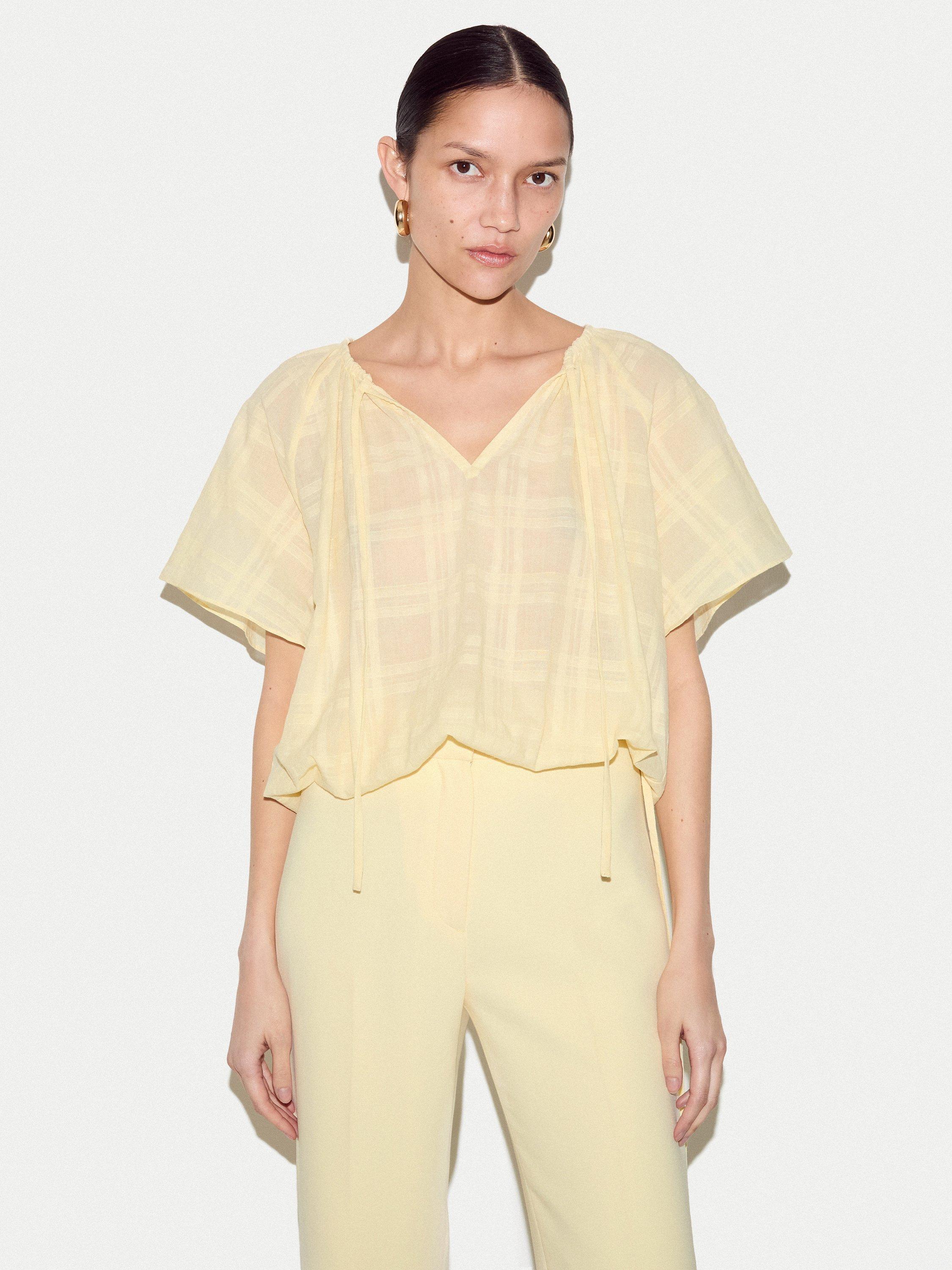 This lightweight top features subtle drawstring detail at the neckline for versatility. Crafted from soft, breathable fabric, it’s an easy-to-style piece that works well with tailored trousers or casual shorts alike.