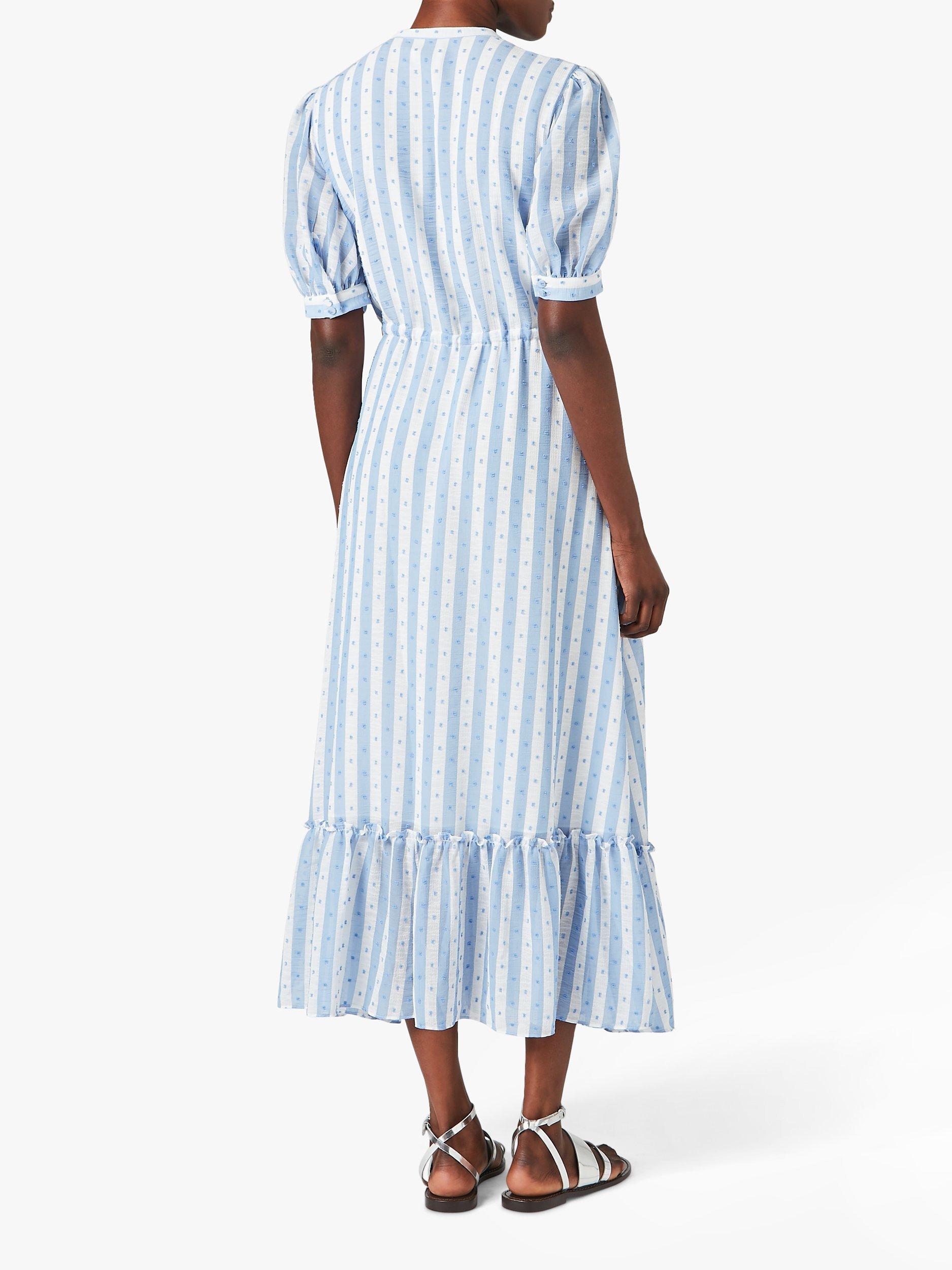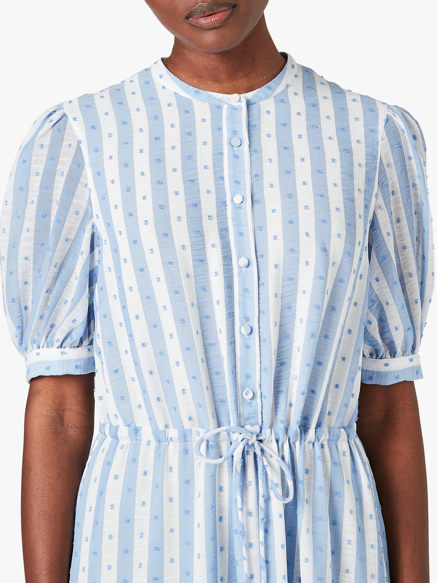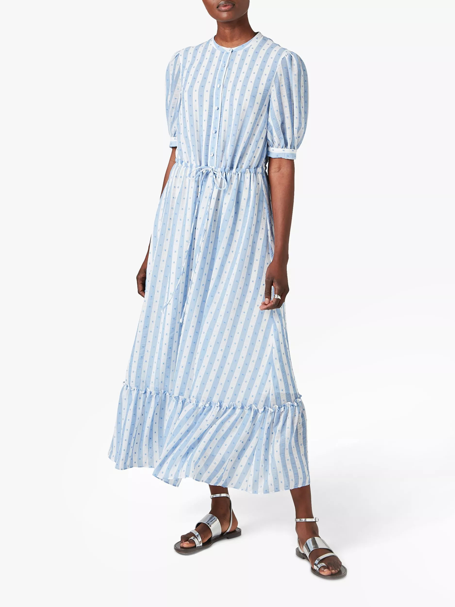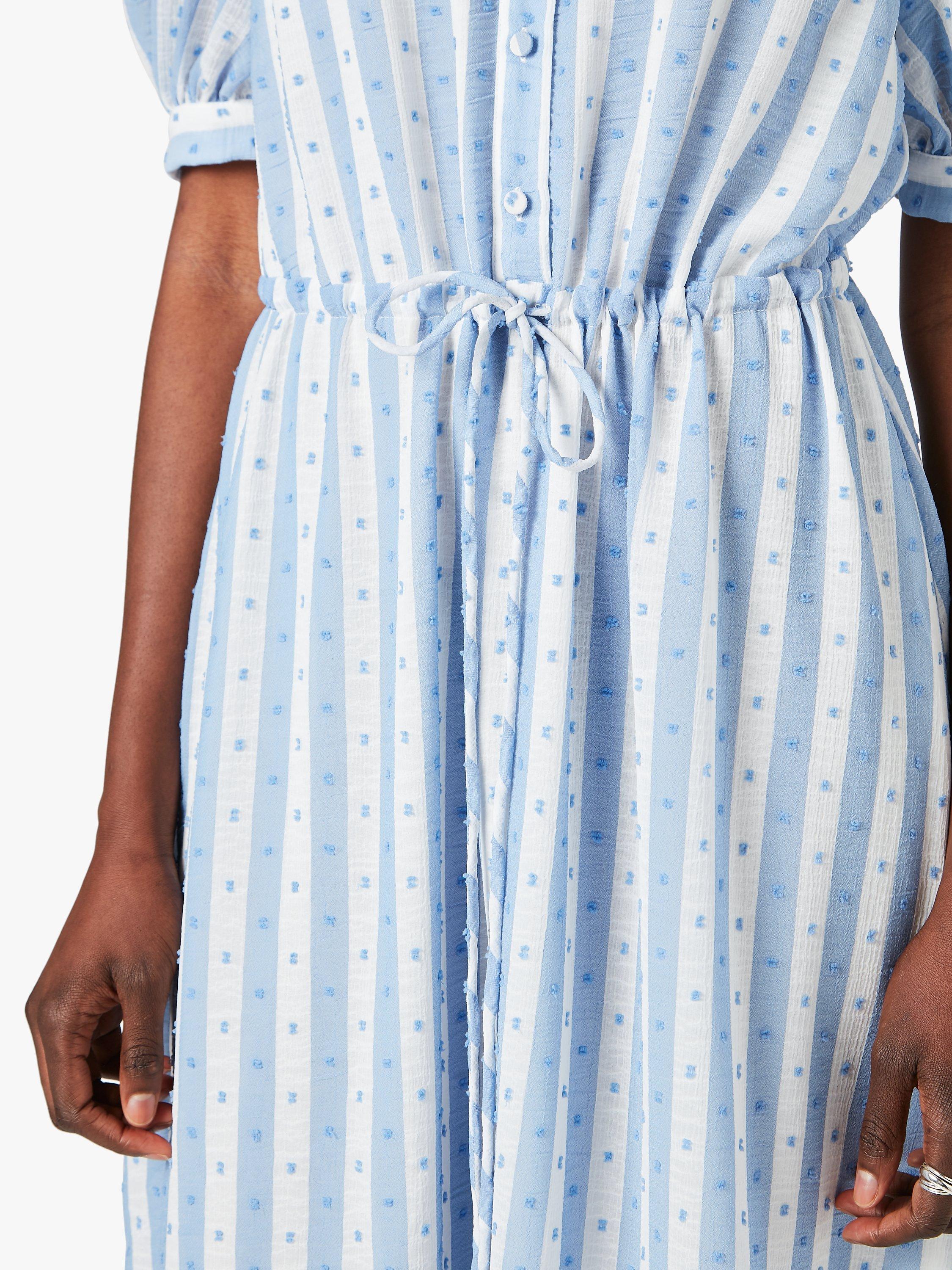 Great for those days out in the sun, this Jigsaw dress is made from a lightweight textured fabric with a contrasting print - soft flowers placed onto stripes. The dress has a tiered hem that conveys a romantic touch and a thin drawstring at the waist to structure the look.