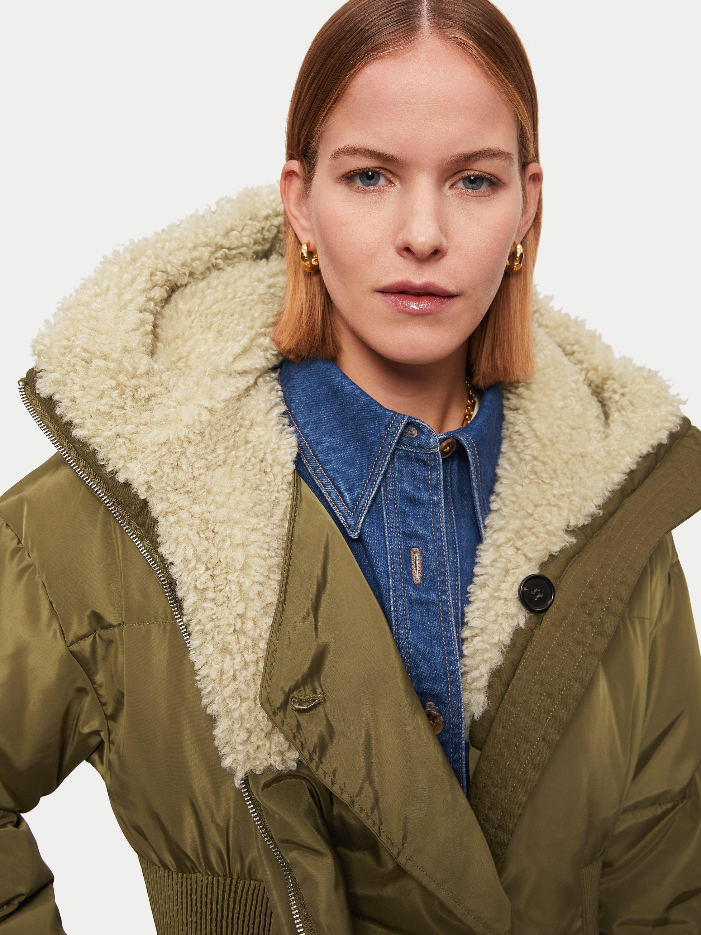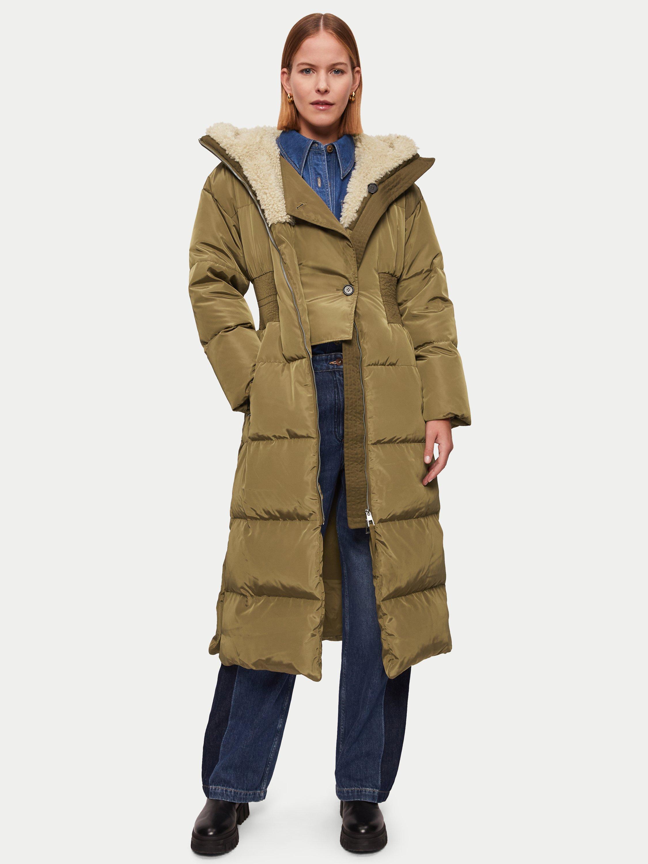 Packed full for a cosy wear on chilly days, this puffer coat by Jigsaw falls to a long length.