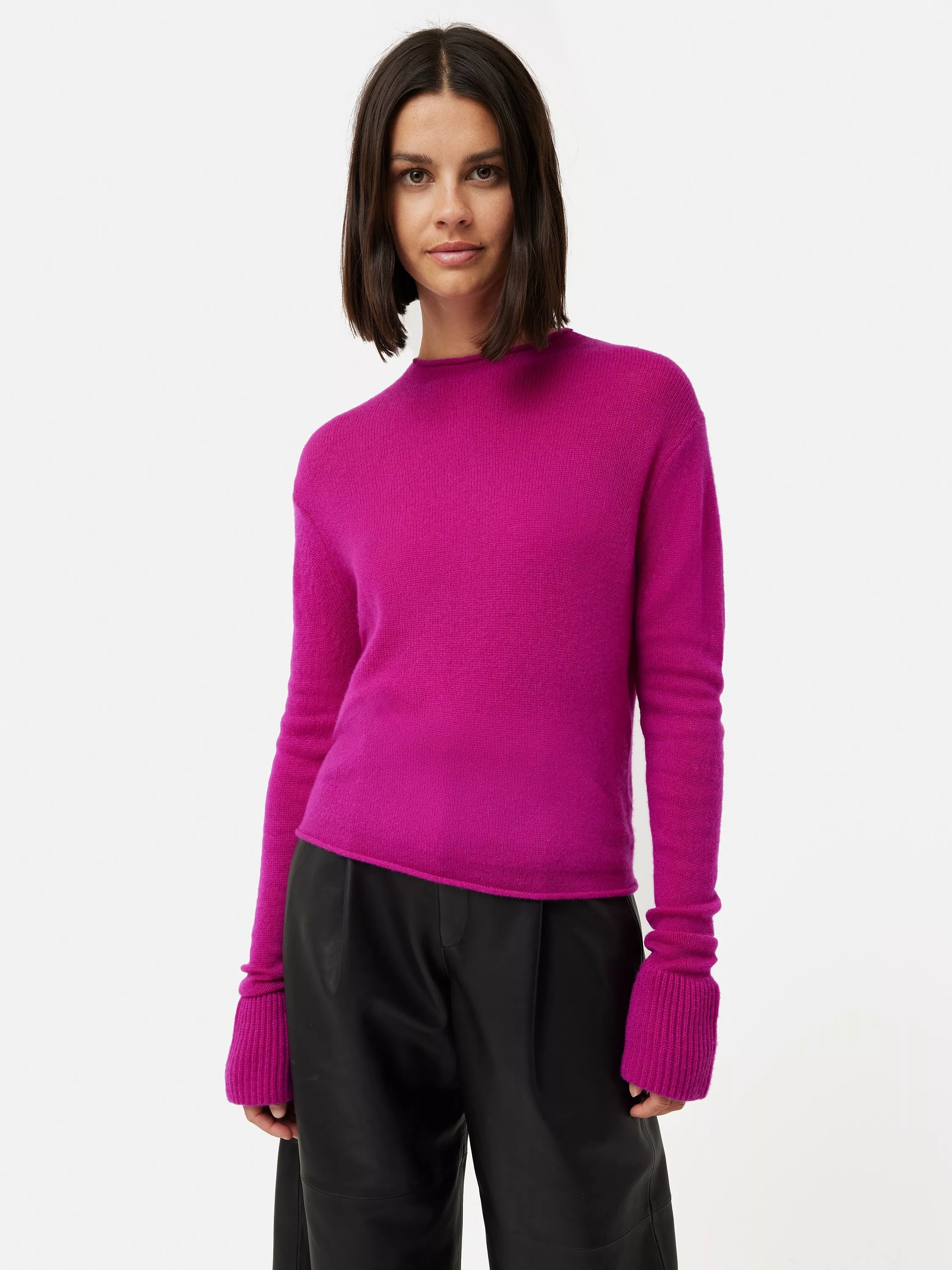 Enhancing your silhouette with a high neckline, this lightweight jumper from Jigsaw is made from a luxuriously soft cashmere fabrication.
