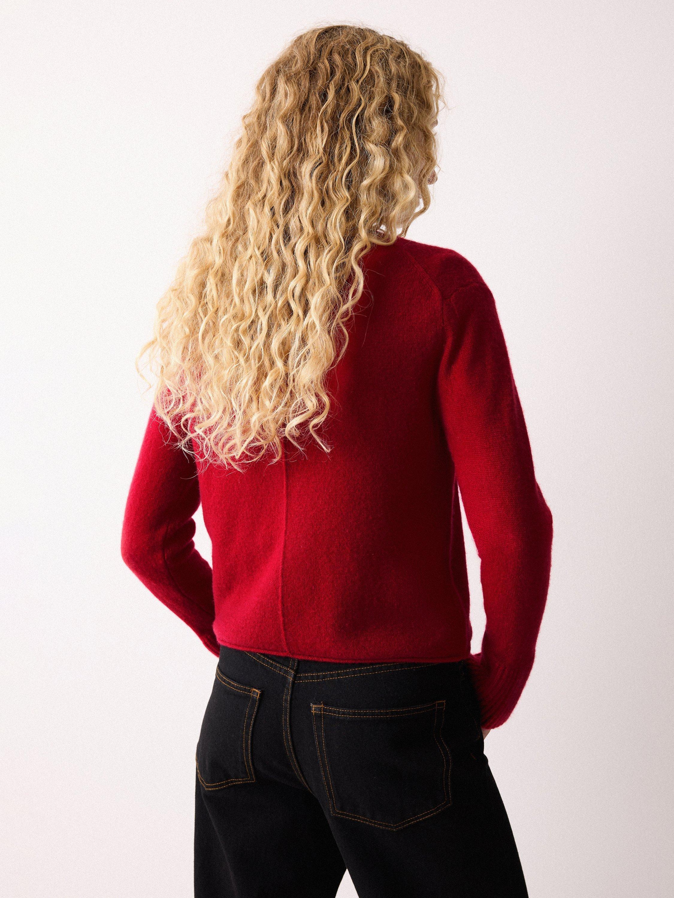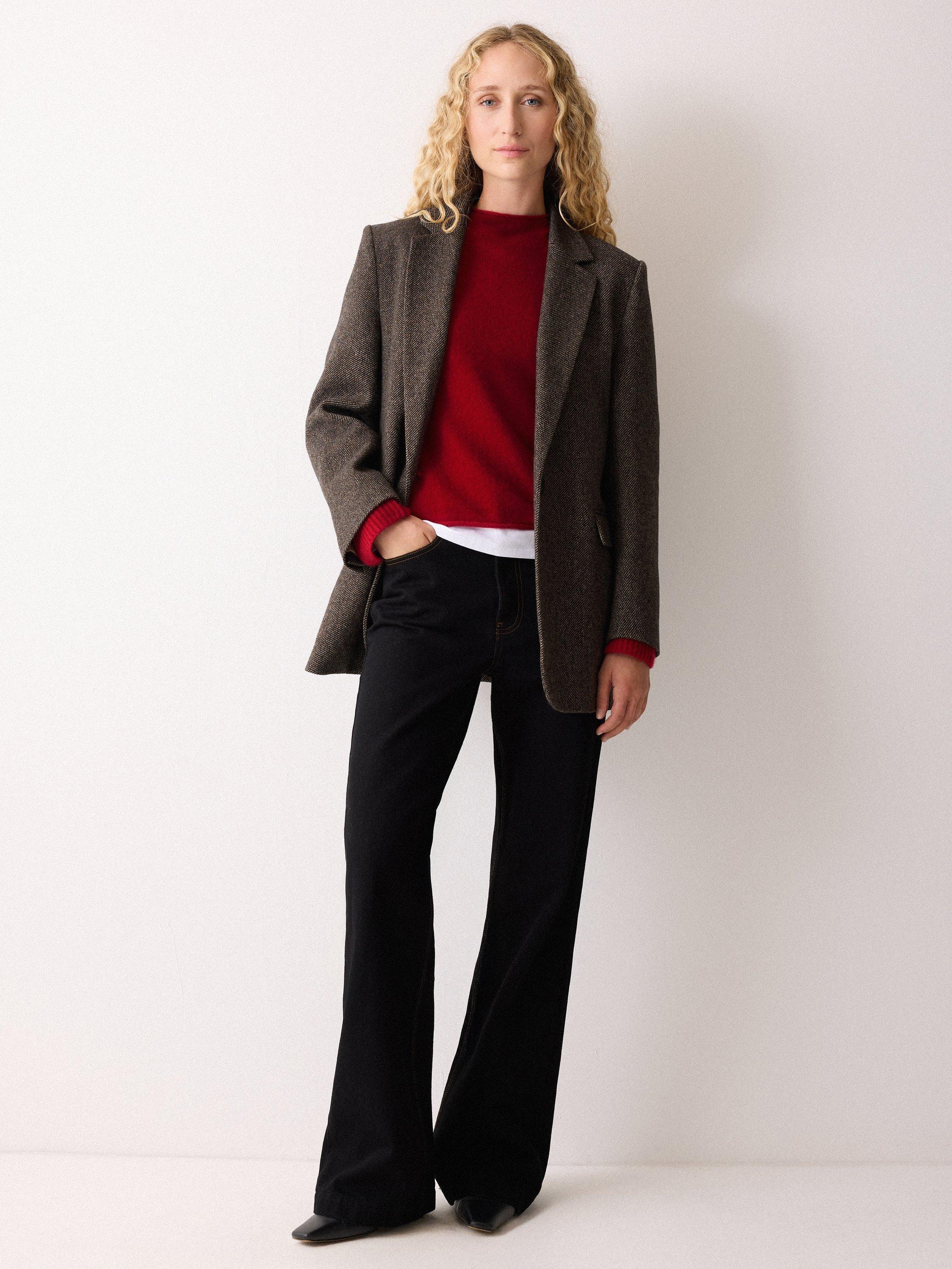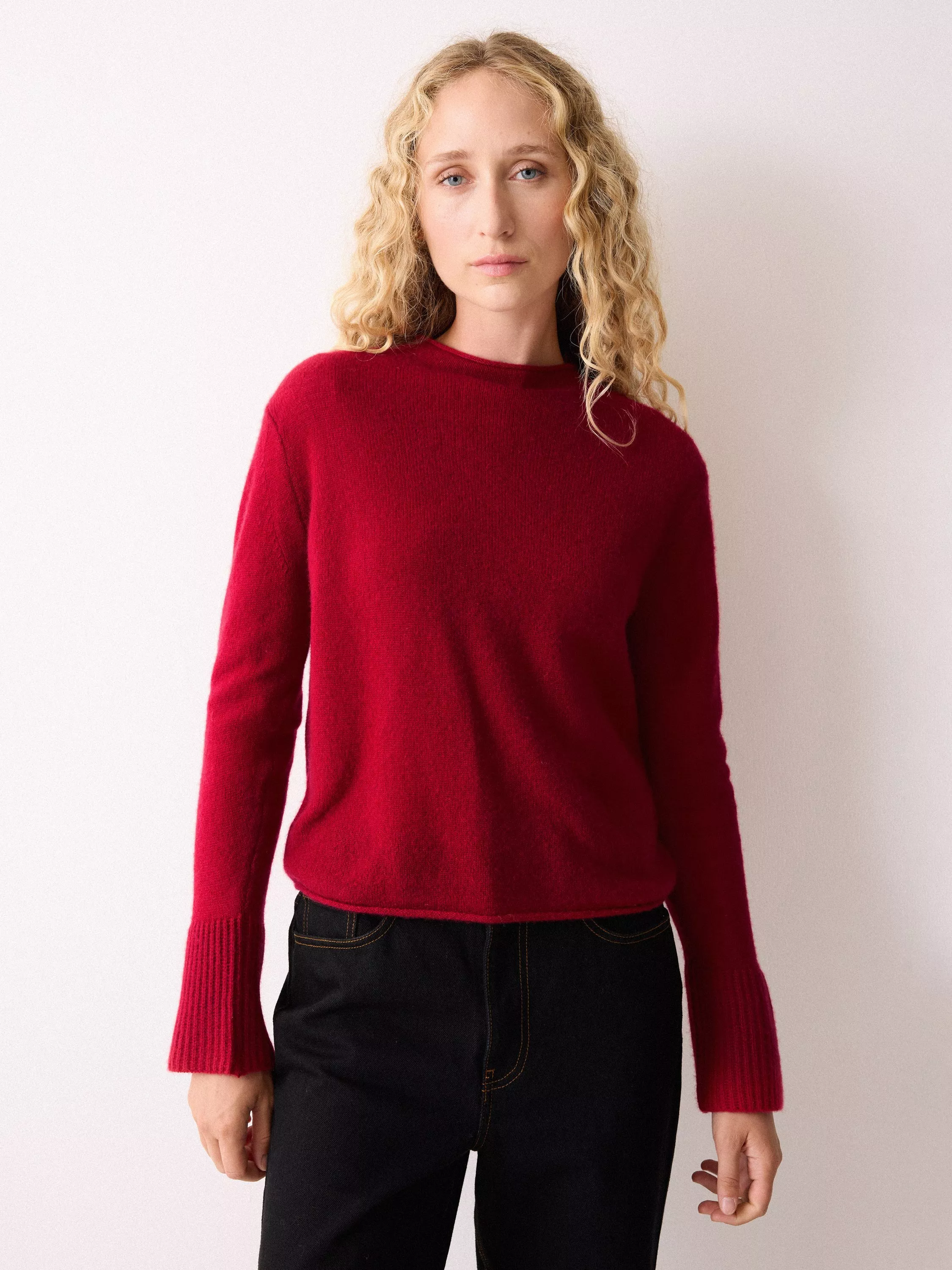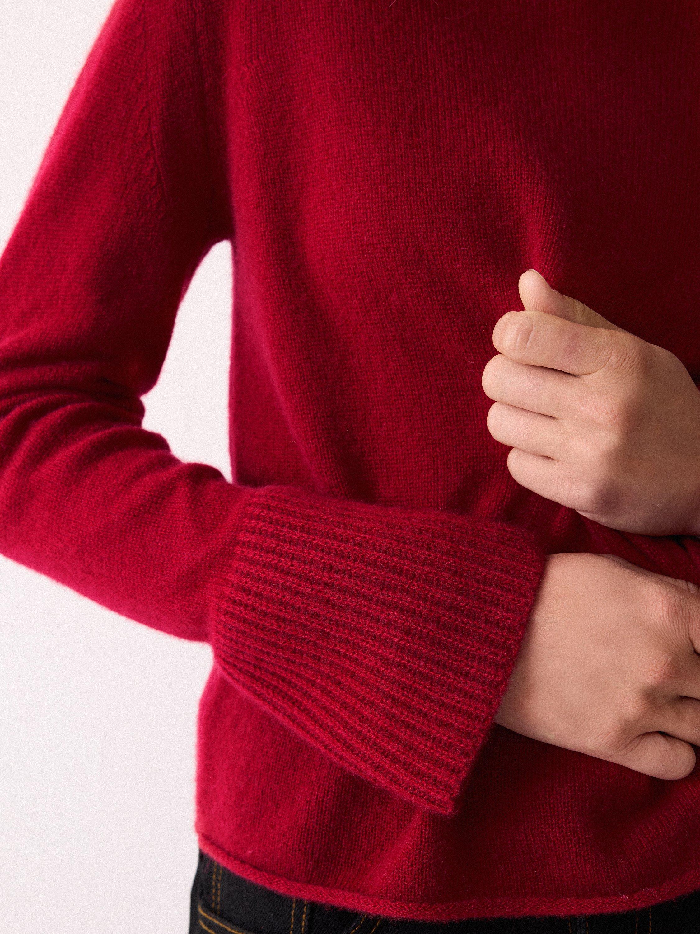 The Eldon jumper returns for another season. Loved for its ultra-feminine silhouette with a minimal rolled neckline and fluted cuffs, this wardrobe signature highlights the sumptuous, lofty feel of Cloud cashmere, which has been knitted off gauge. The perfect transitional layer for autumn and beyond.