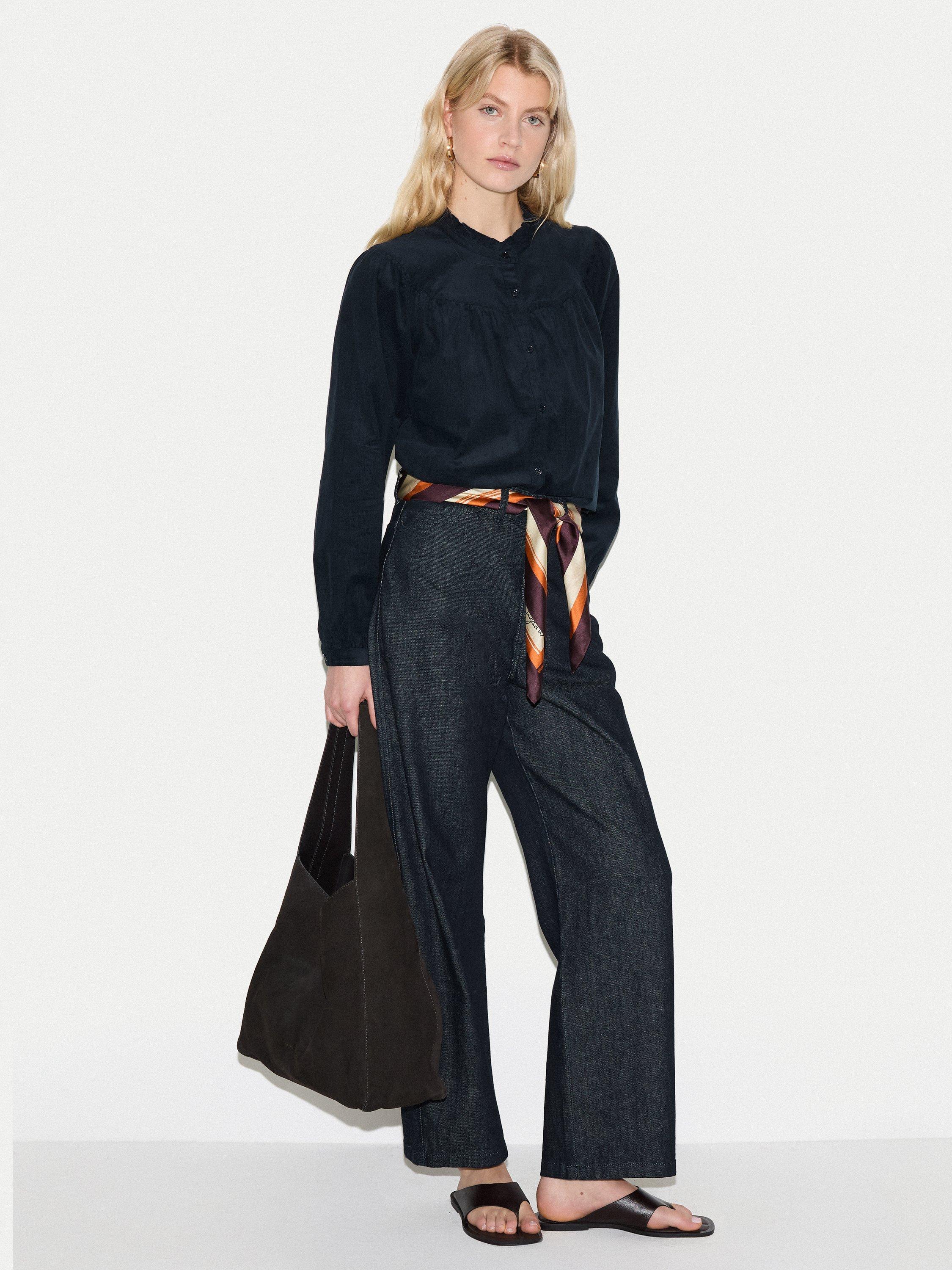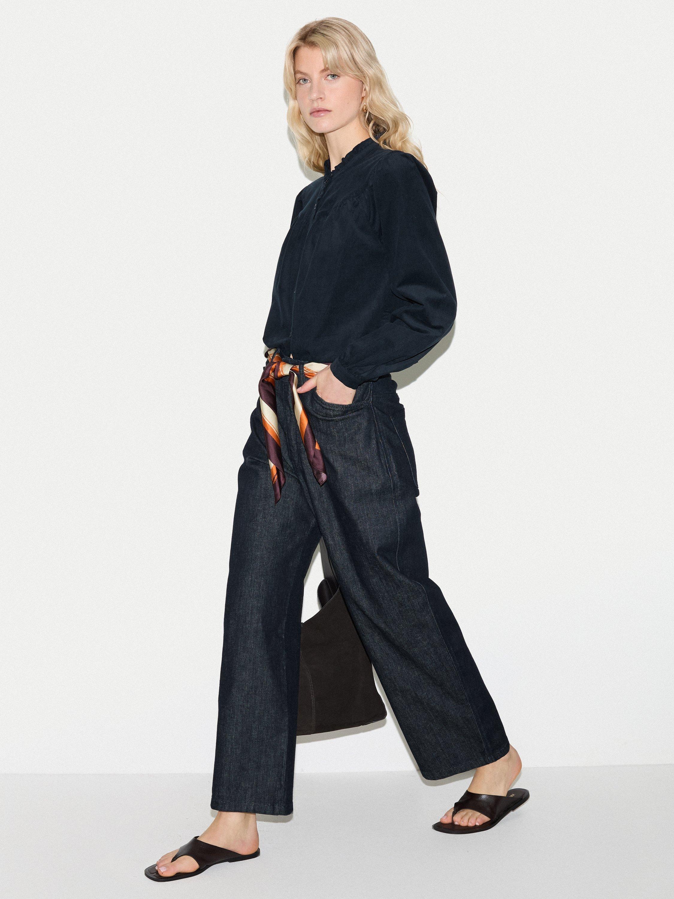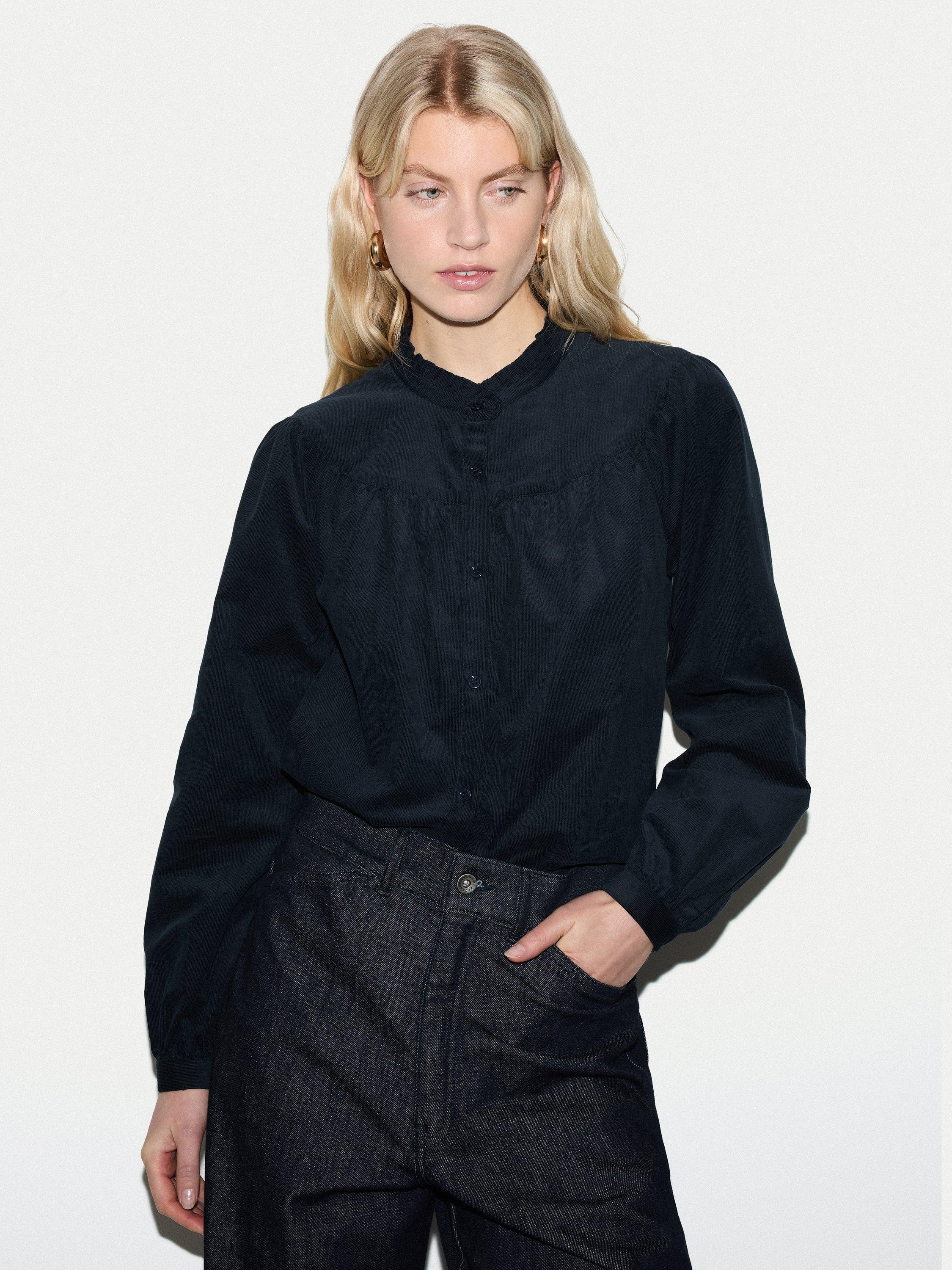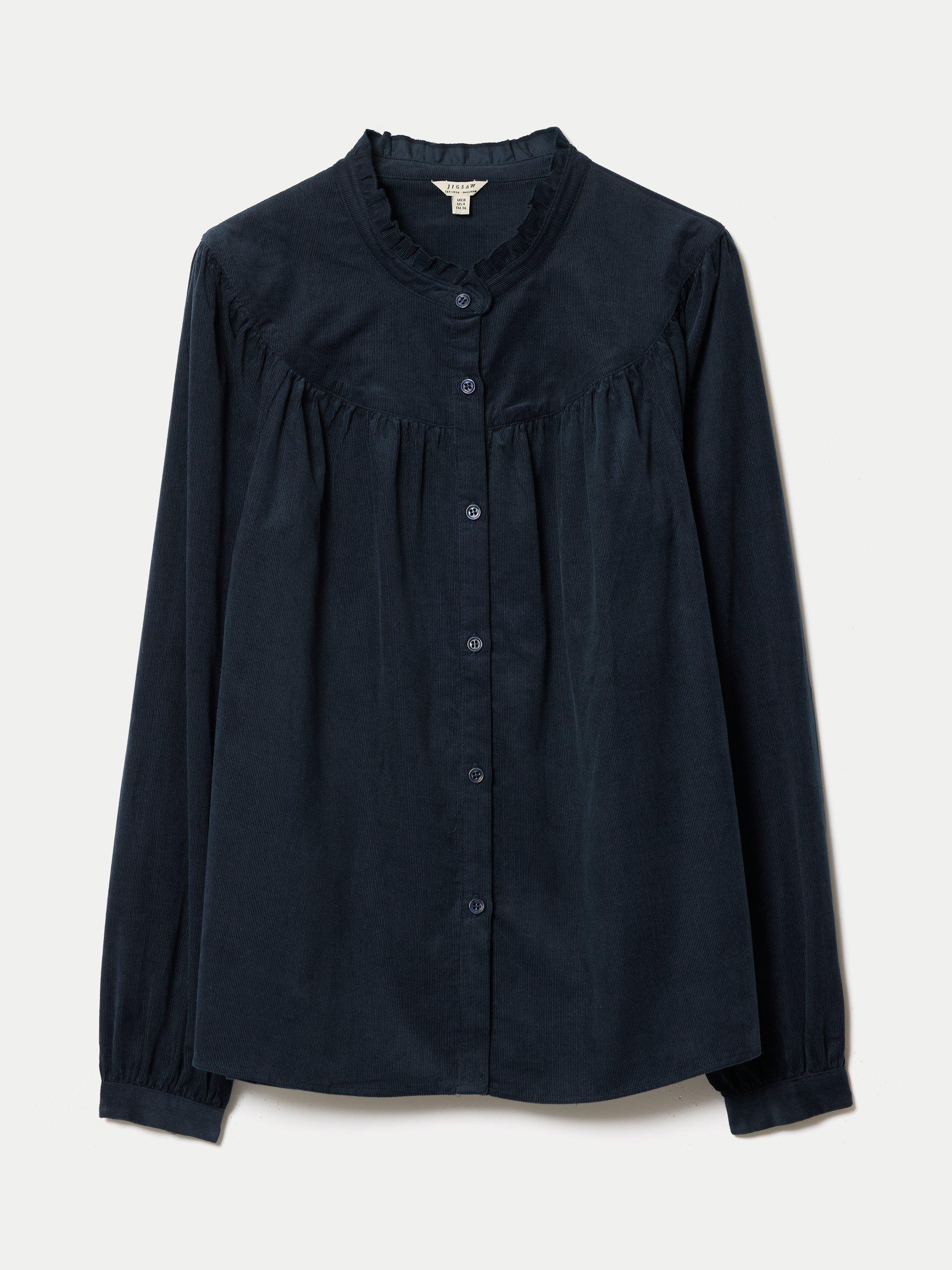Crafted from soft, fine baby corduroy, this shirt brings a touch of texture to your wardrobe. Designed with a delicate frill detail around the neck, adding a vintage feel to the classic silhouette. It’s a versatile piece that pairs just as well with tailored trousers as it does with your favourite denim.