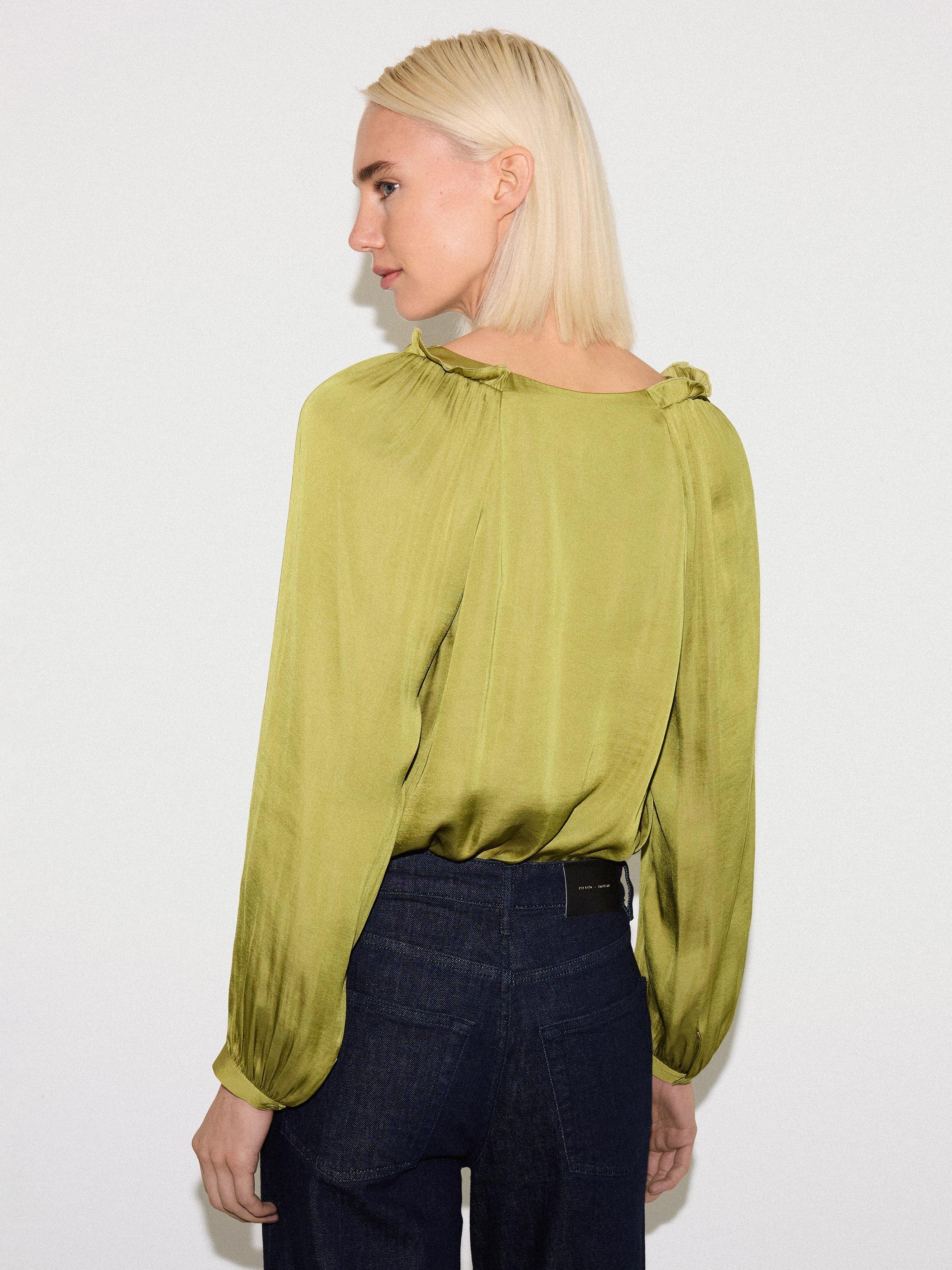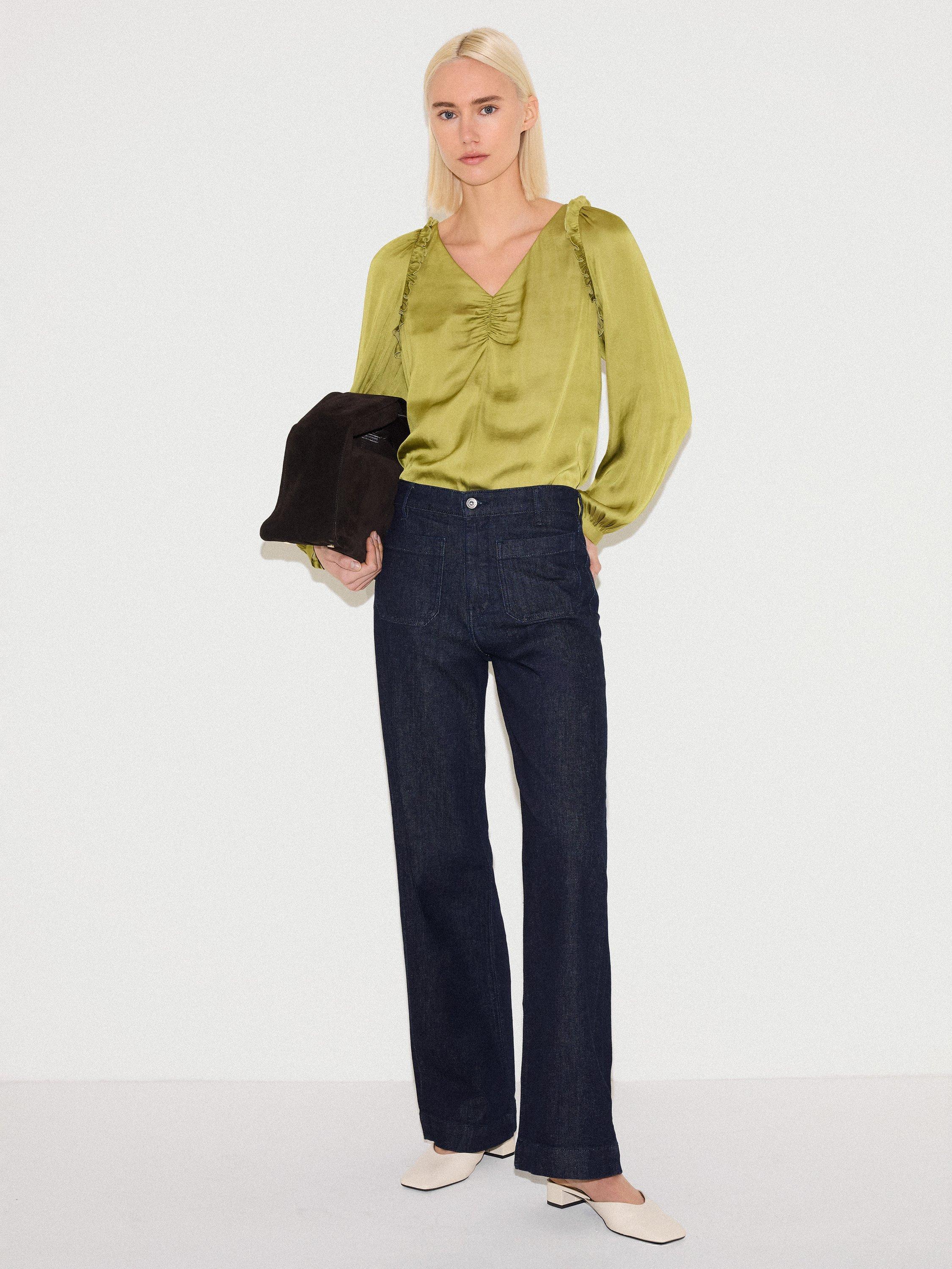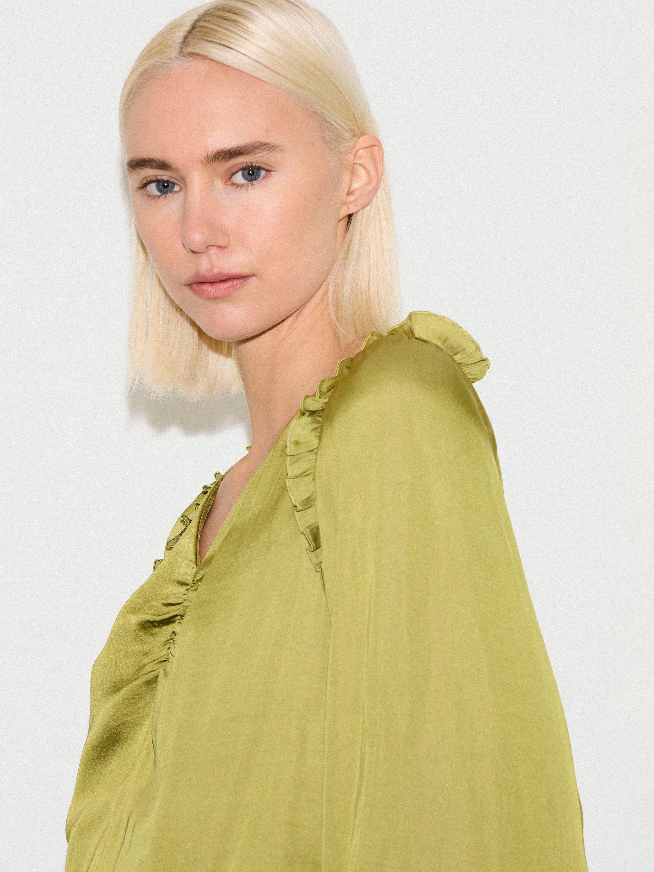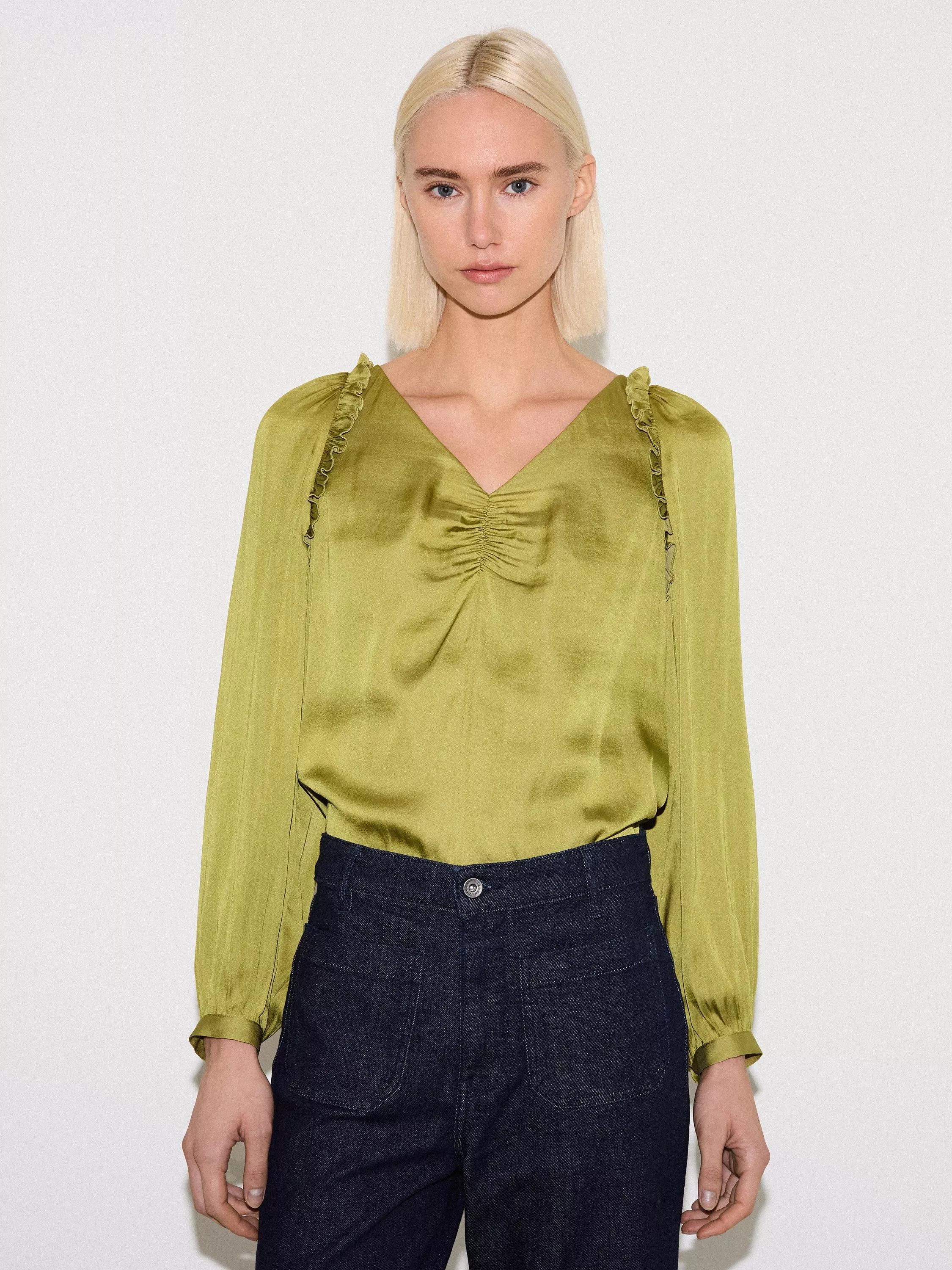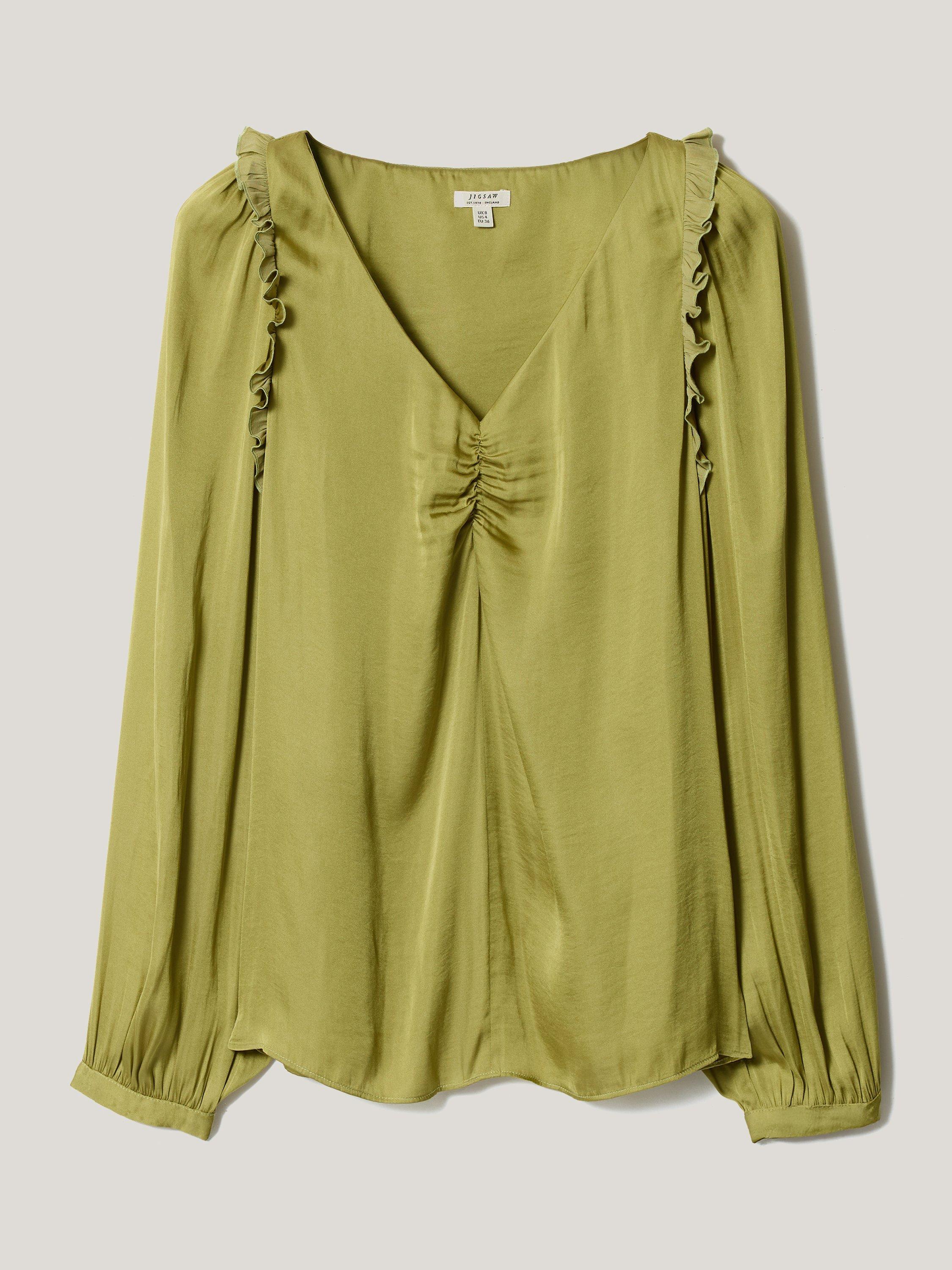 Crafted from satin, this frill top is a lesson in smart-casual dressing. The satin cloth has a smooth handfeel and beautiful drape, making it ideal for tucking in or wearing out. Featuring frill detailing on the shoulders that adds dimension, pair with tailored trousers or jeans depending on the occasion.
