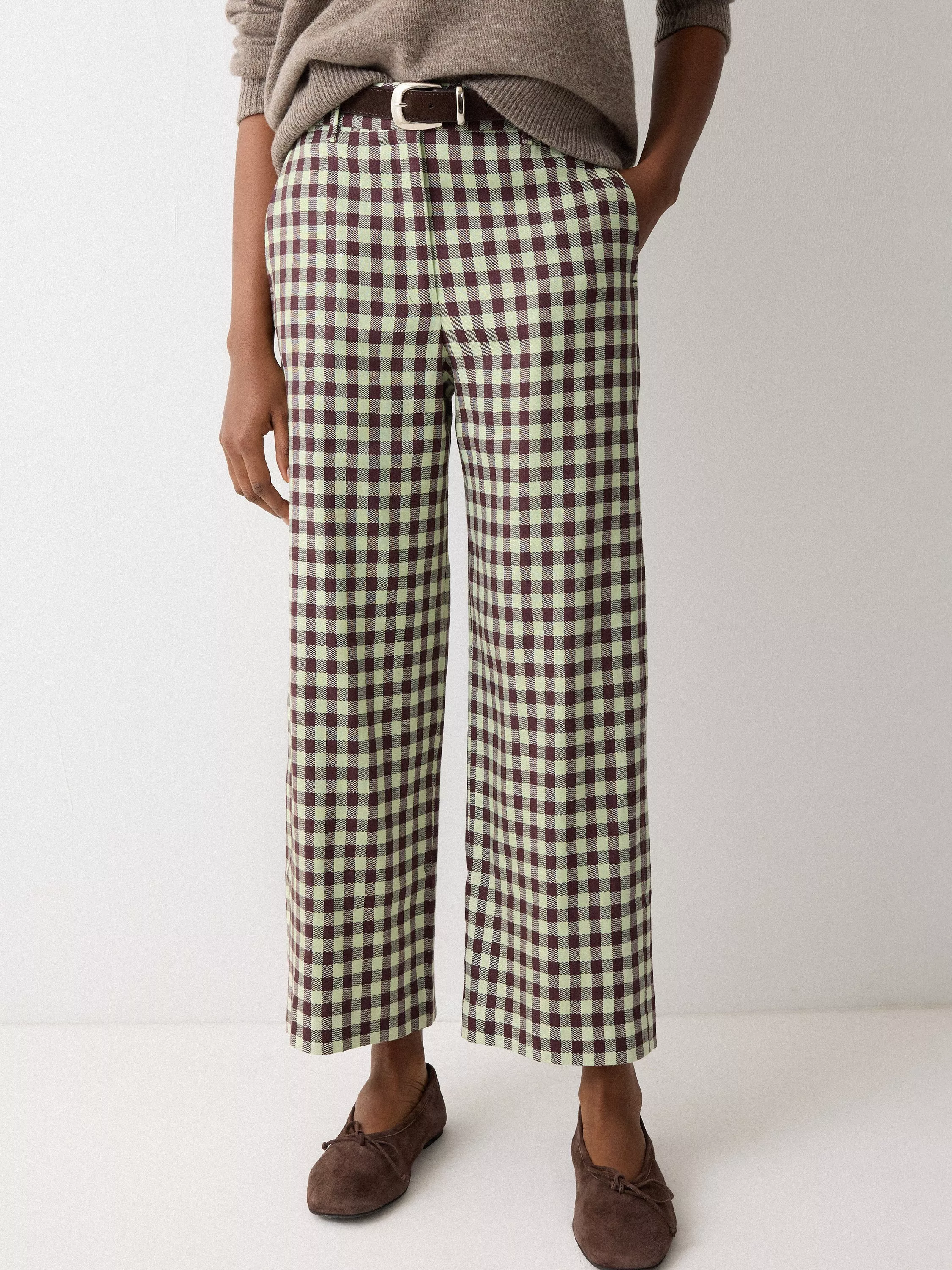 JigsawGingham Linen Blend Trousers, Green