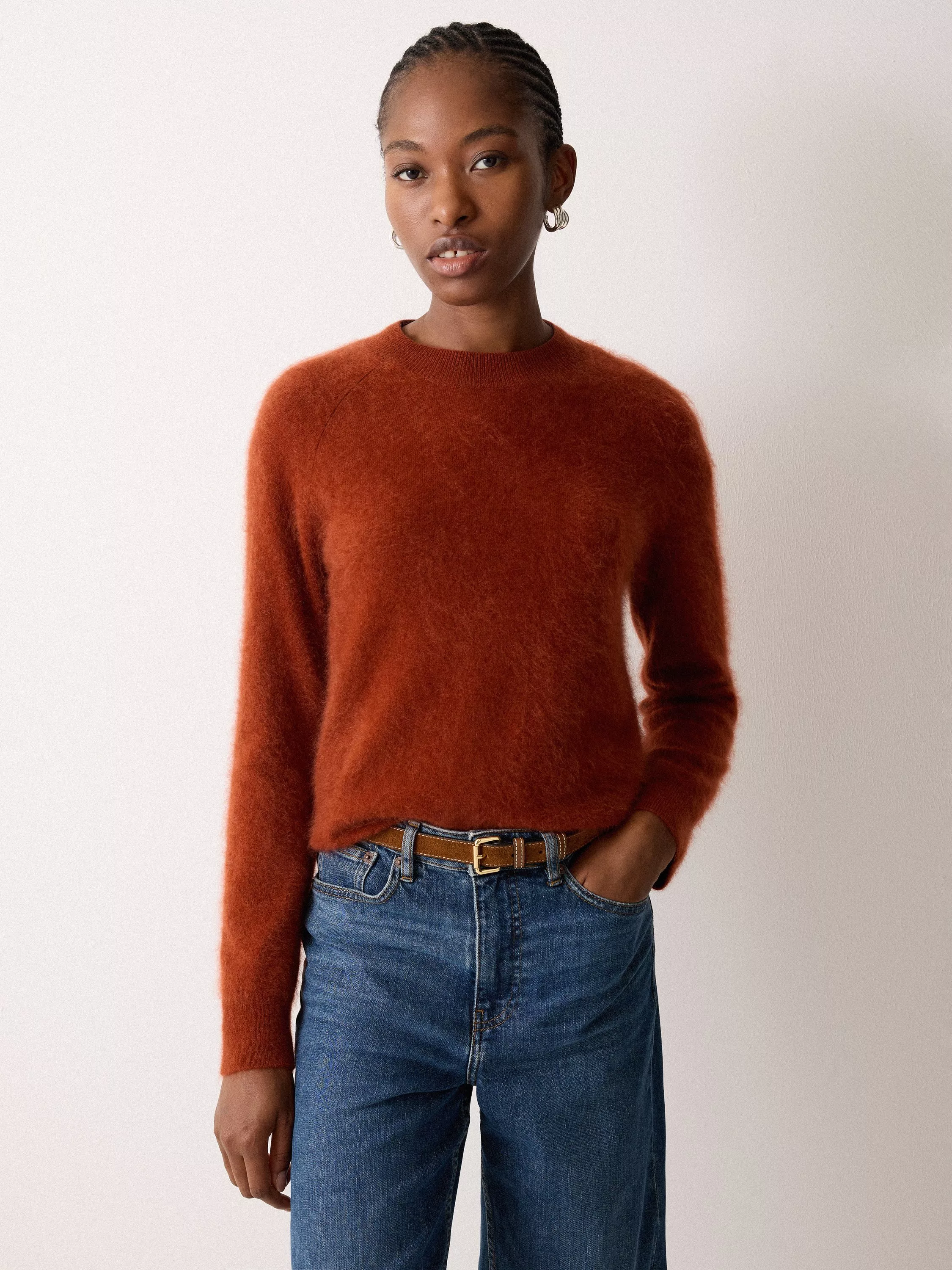 The Halo cashmere jumper has a supersoft, fluffy texture, created through a special wash. Jigsaw named this beautiful finish Halo because it has a heavenly aura, and you feel like you’re sinking into a cloud. Raglan sleeves offer more freedom for movement, making it a comfy knit for wearing day-to-day. The most cherished cashmere of all.
