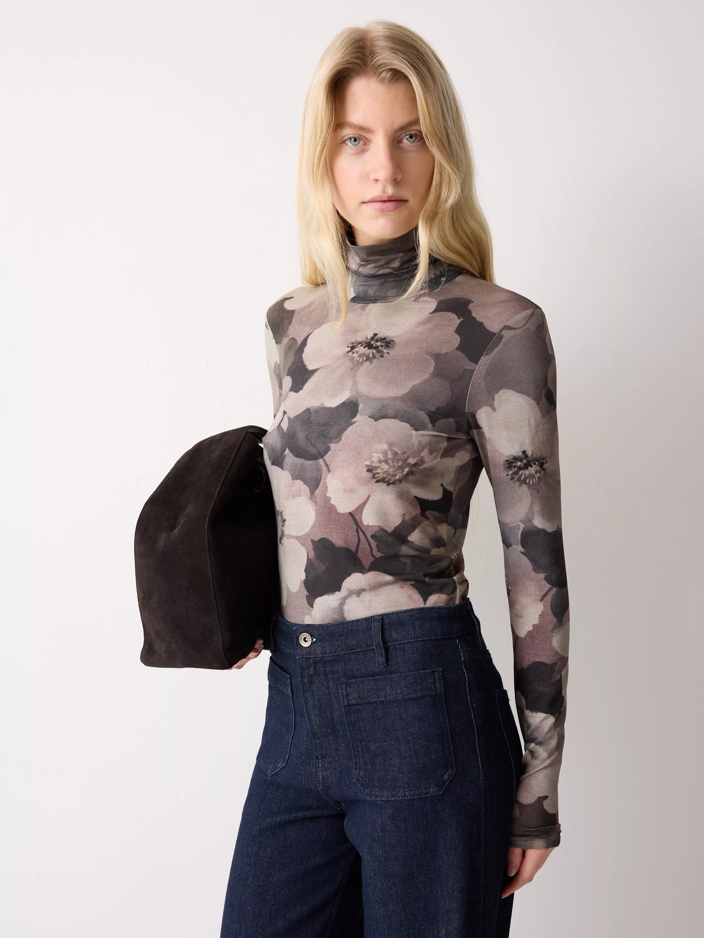 In a lightweight knit, this jumper is in an antique floral print with a high neck silhouette for added warmth and style.