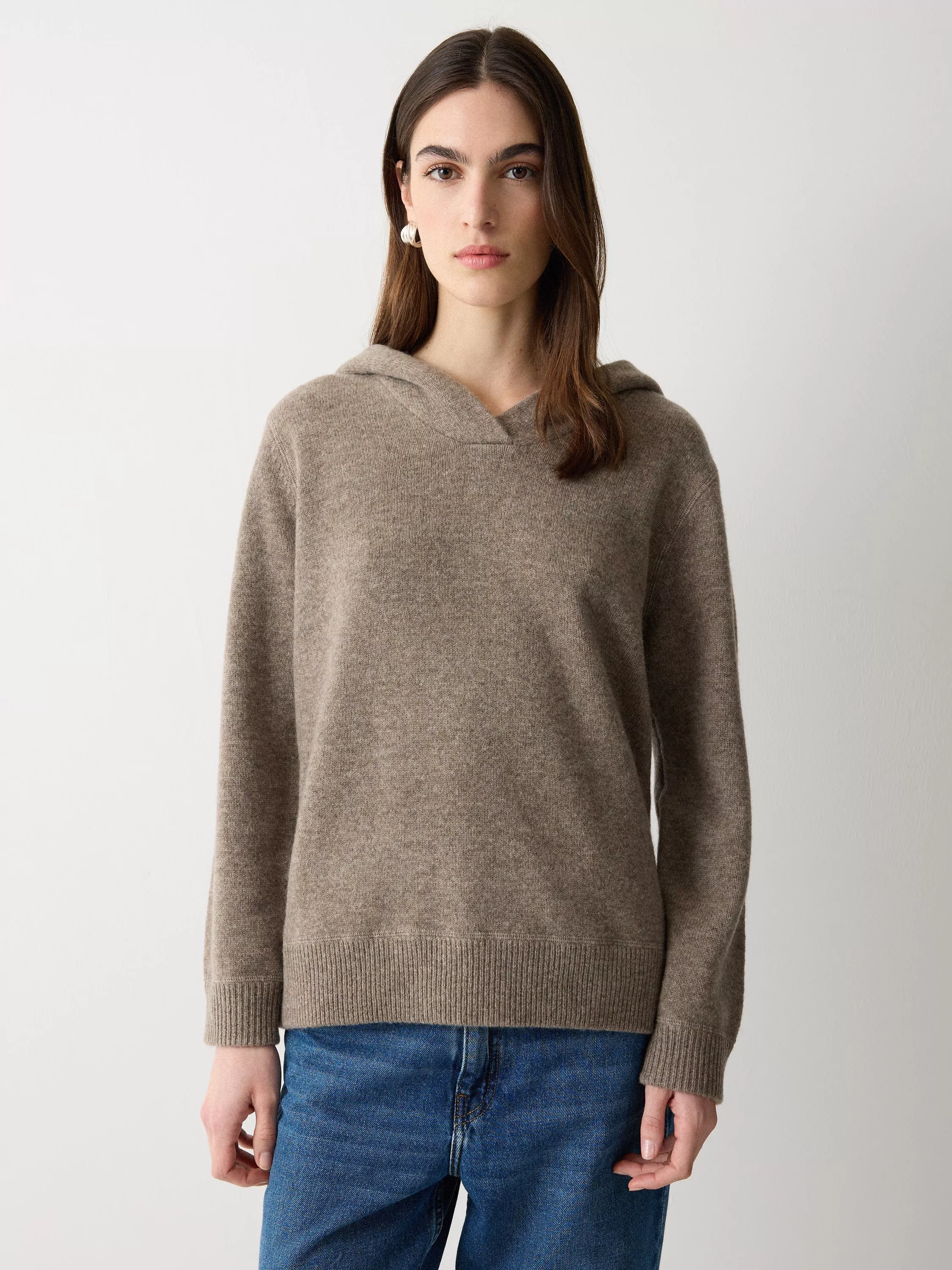 Wear luxurious comfort in the Wool Rich hooded jumper. With a pull-on style and a v-neck with ribbed hems, wear this on off-duty days.