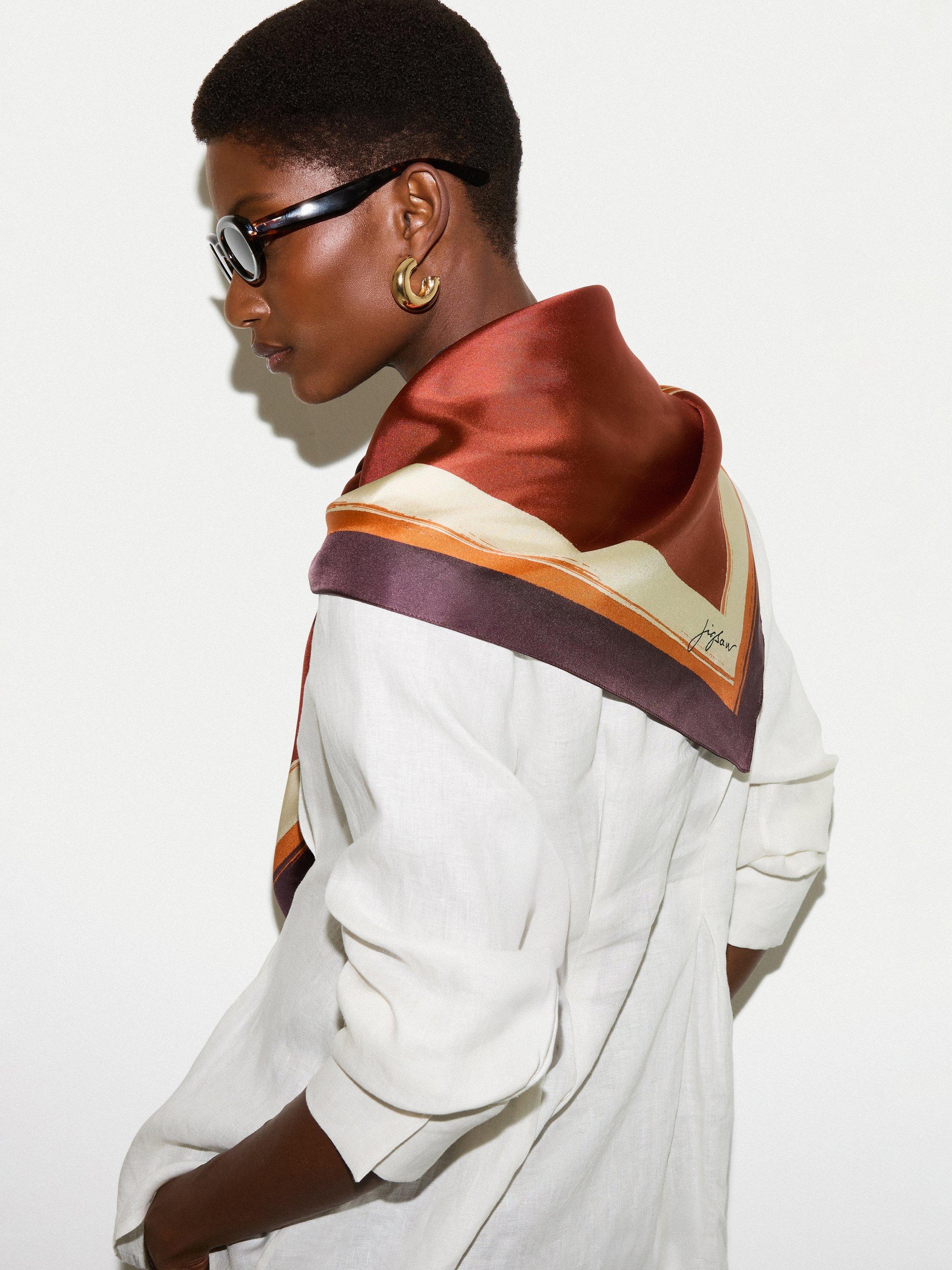 With an iris-inspired print designed in-house at Jigsaw, this scarf is crafted from premium silk twill for a soft, luxurious finish. Its versatile design transitions effortlessly from casual days to elegant evenings, adding refined colour to every look.