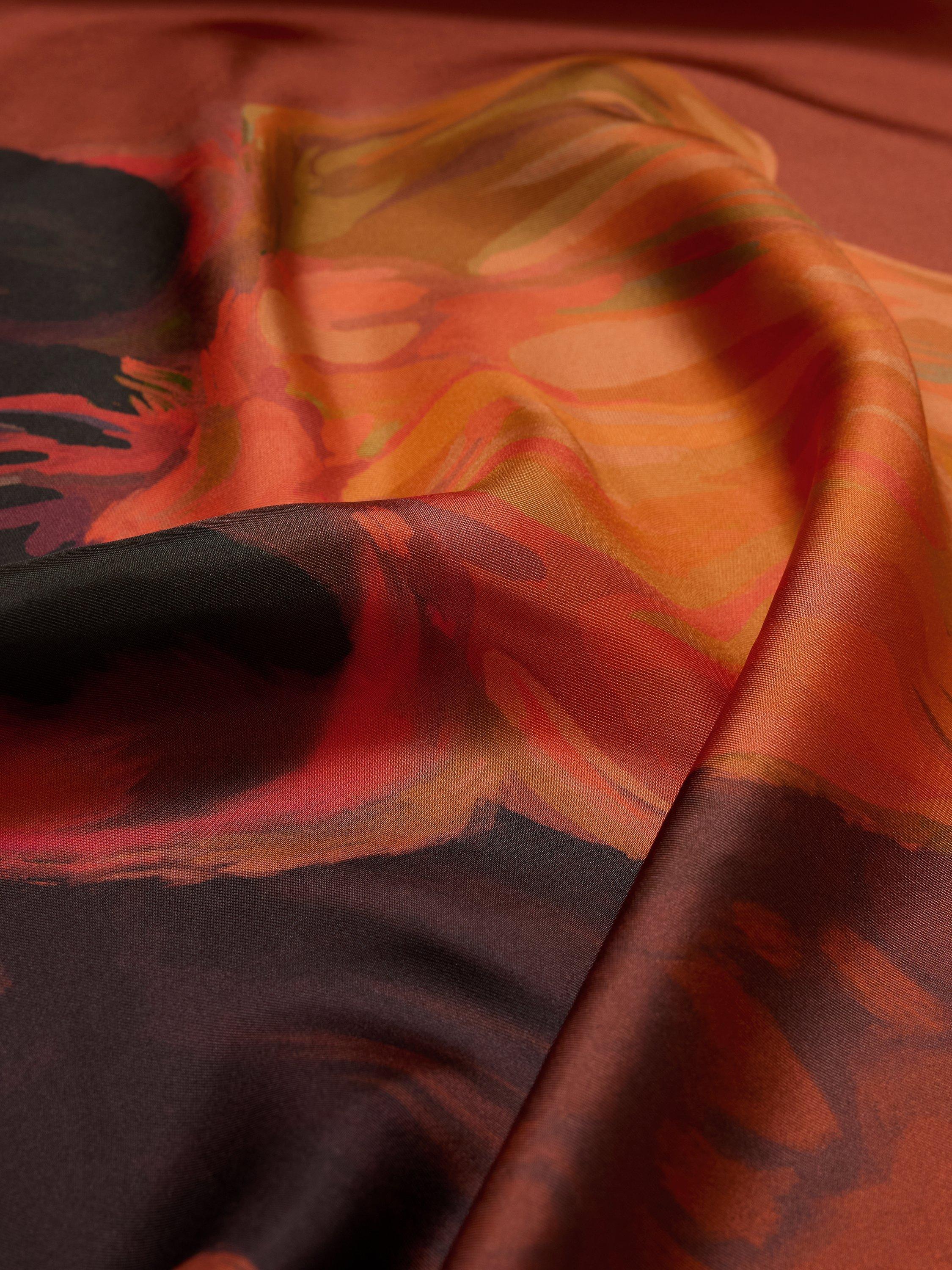 JigsawIris Print Pure Silk Scarf, Orange, One Size