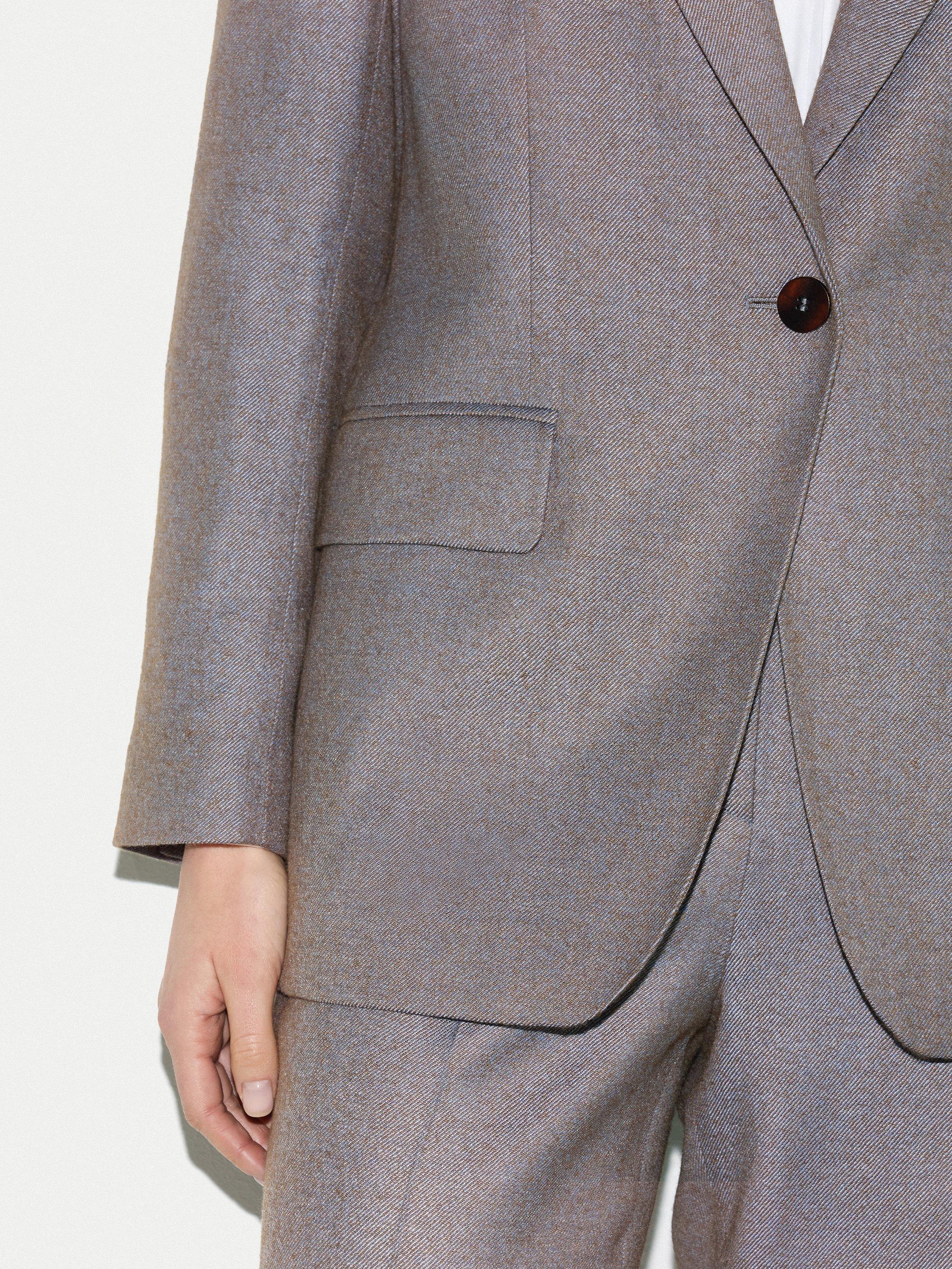 - 52% wool, 33% viscose, 15% polyester, Body lining: 100% viscose