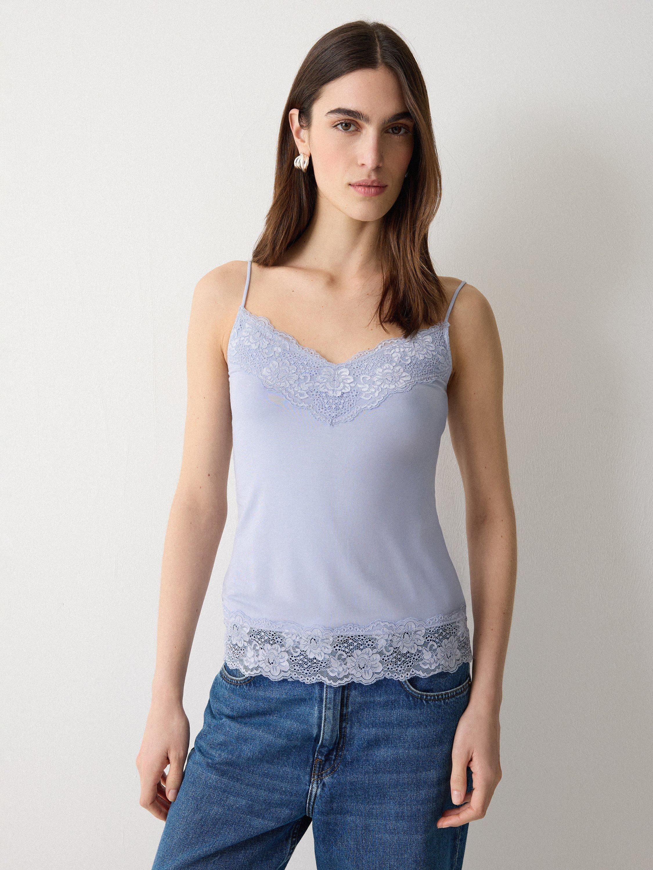 This modal lace vest is a bestselling underlayer. Cut from soft modal jersey with slim adjustable straps, the lace trim detail adds a subtle vintage-inspired twist.