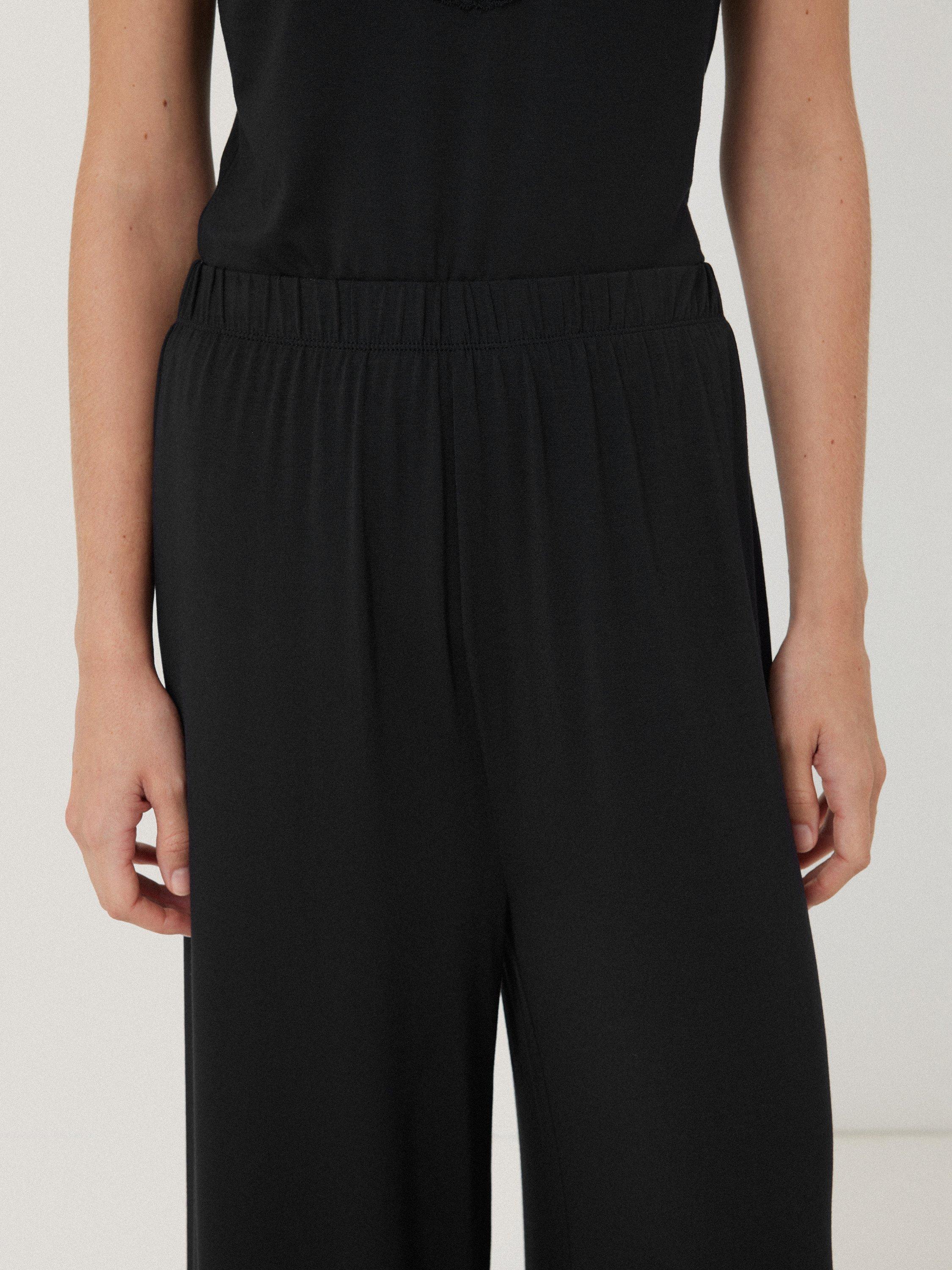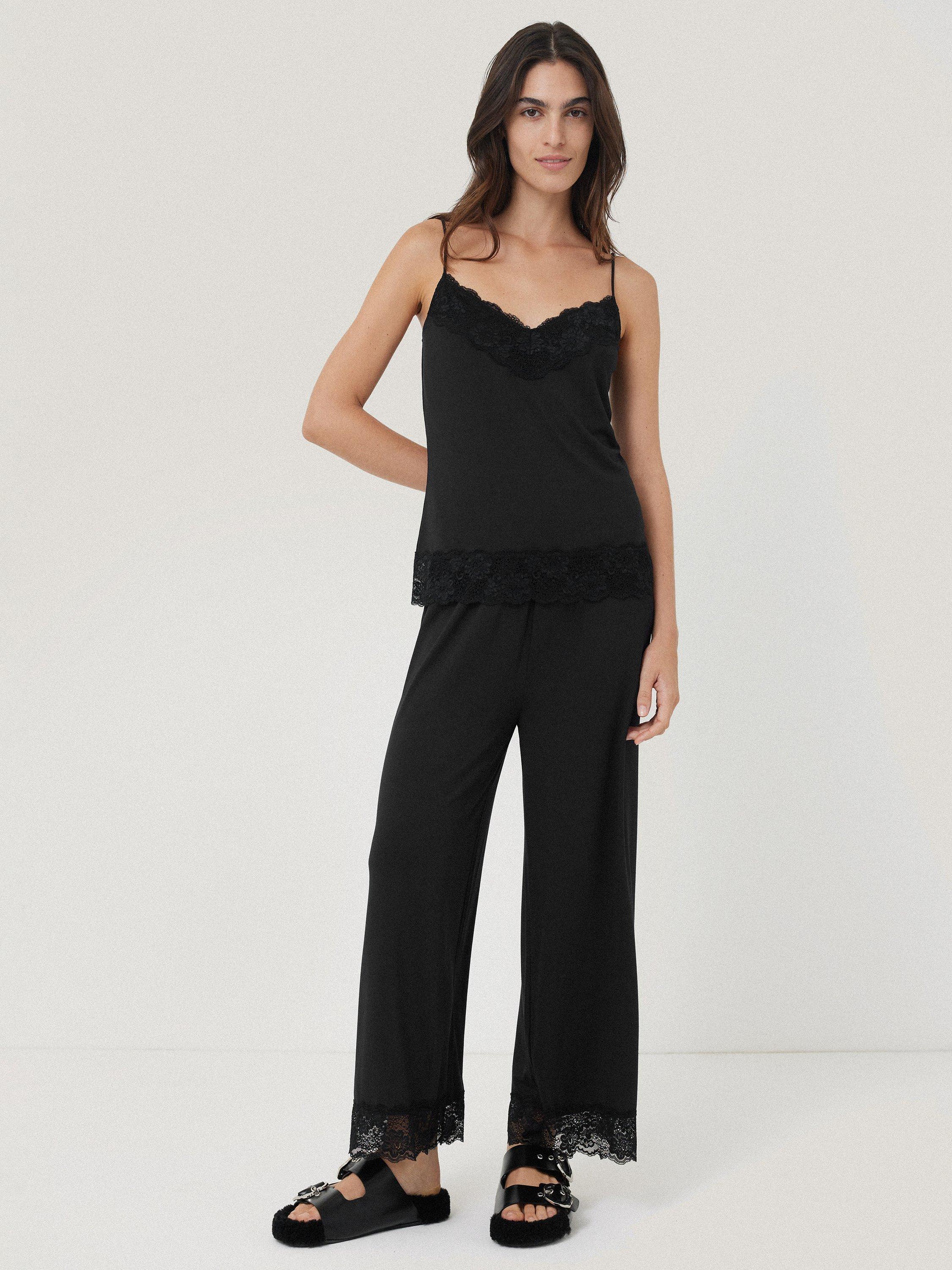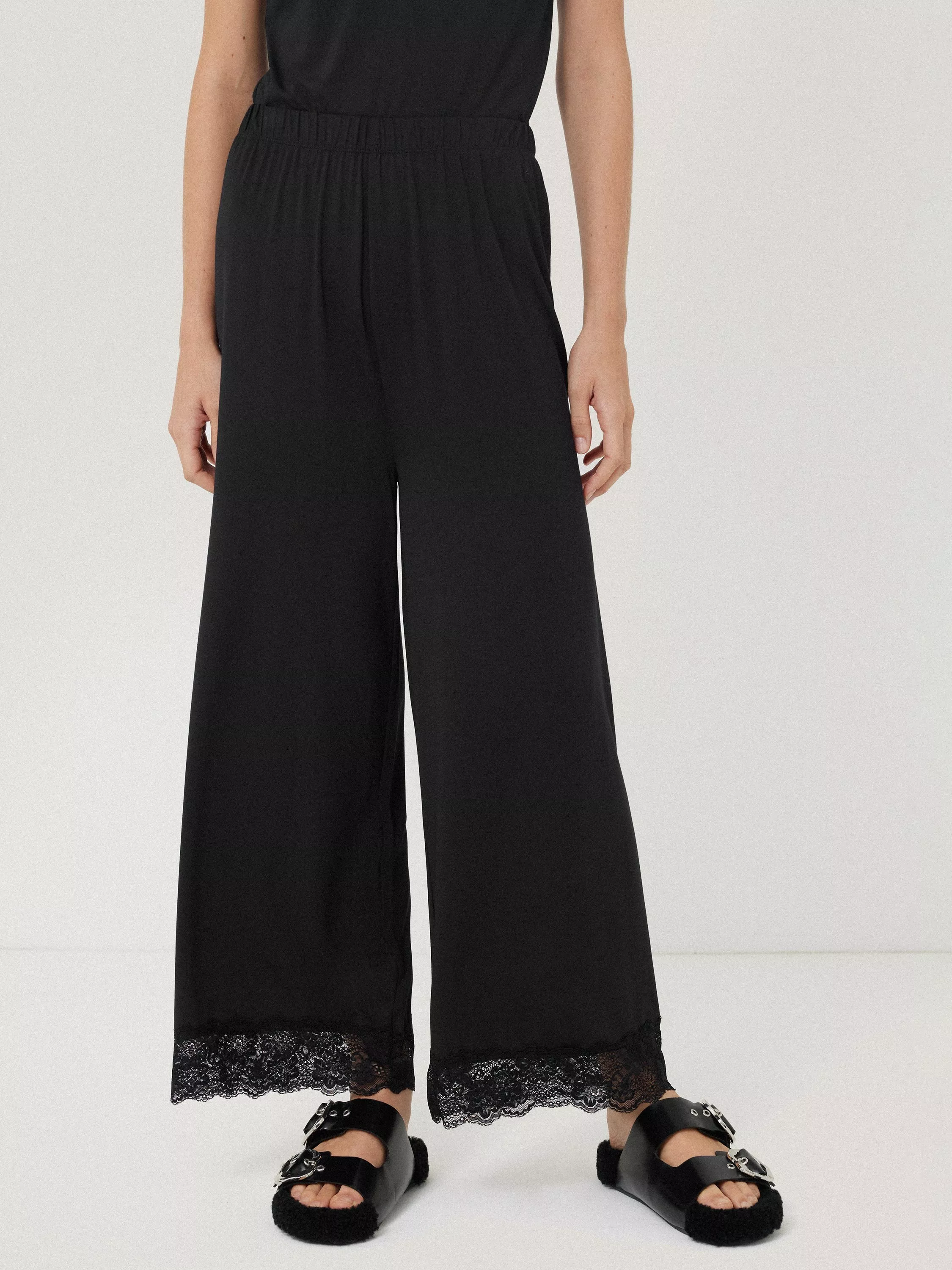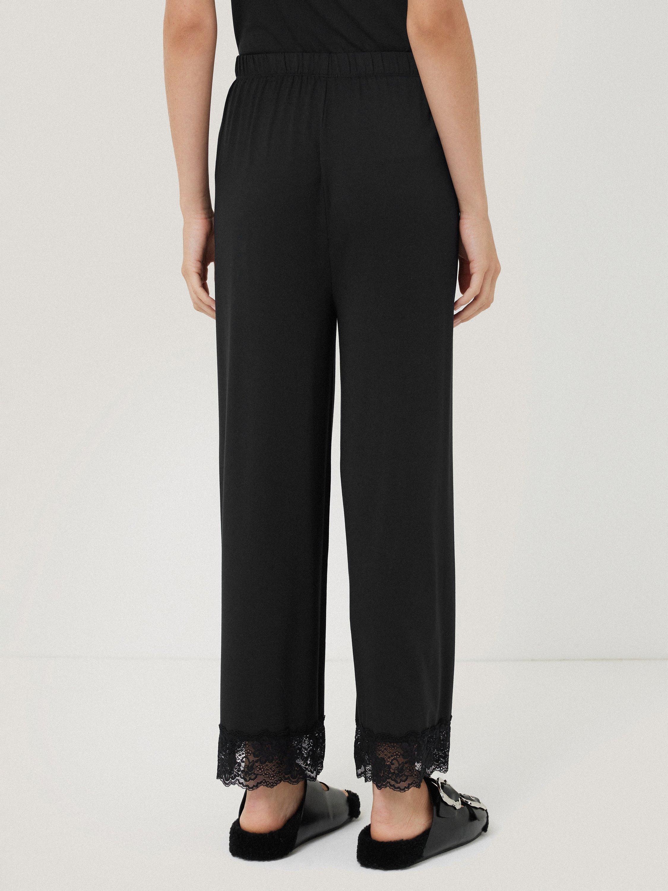 Lightweight modal blend trouser with lace trim.