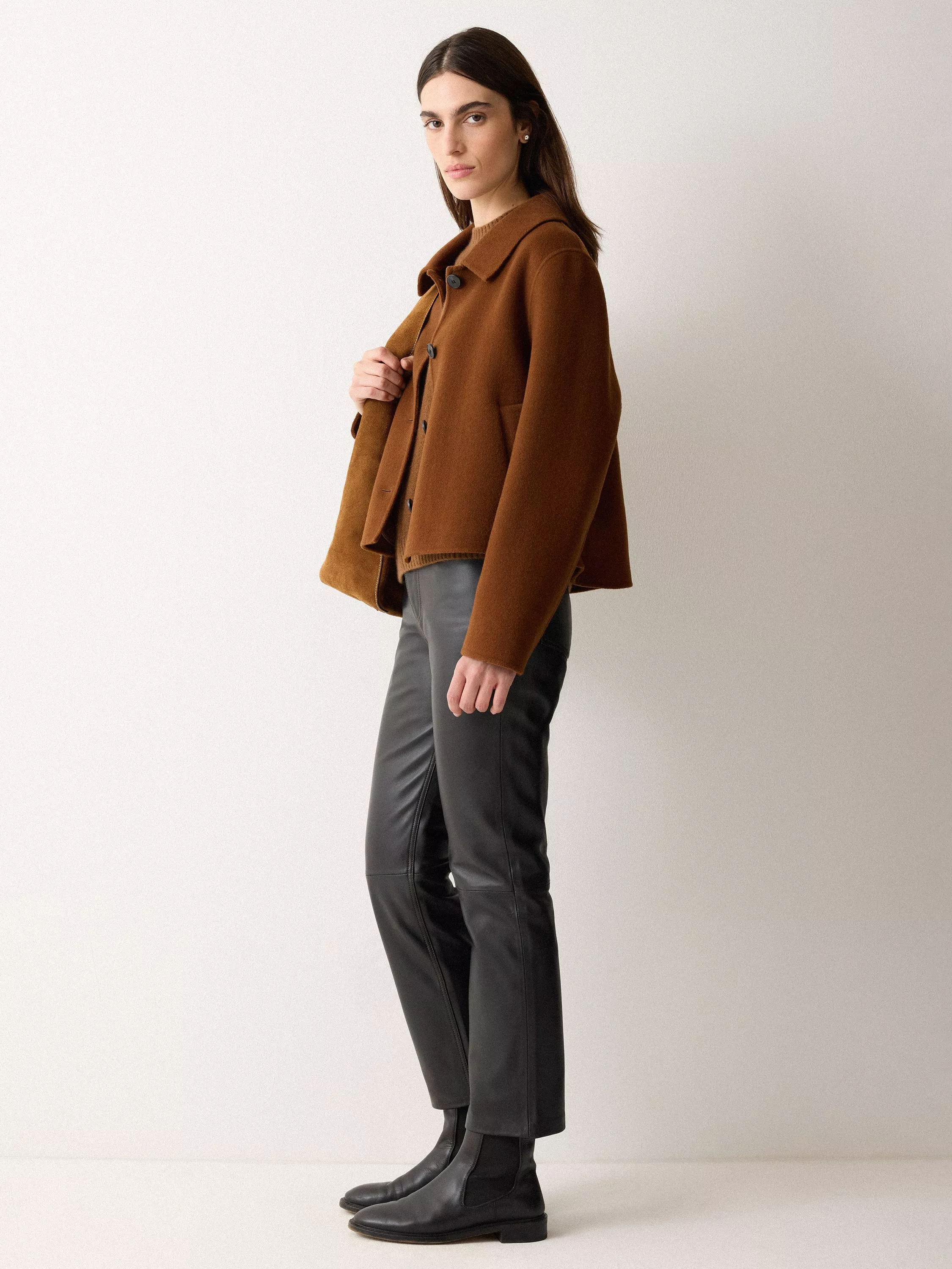 The Leather Lea Jean brings a modern edge to a classic style. Cut in a cropped, slim silhouette, this piece is crafted from butter-soft leather that flatters in all the right places. Finished with timeless denim-inspired details, these trousers move seamlessly from casual days to nights out.
