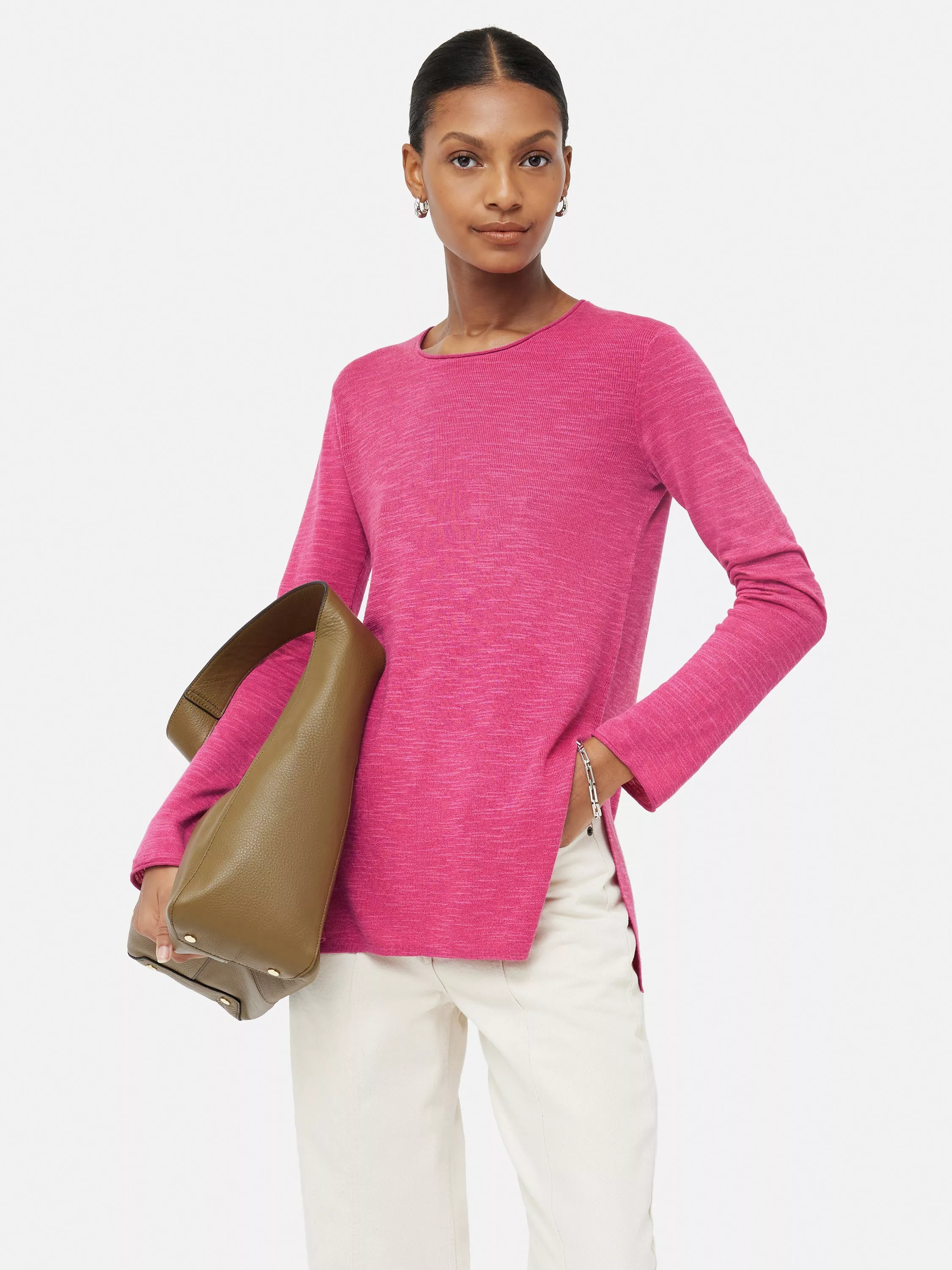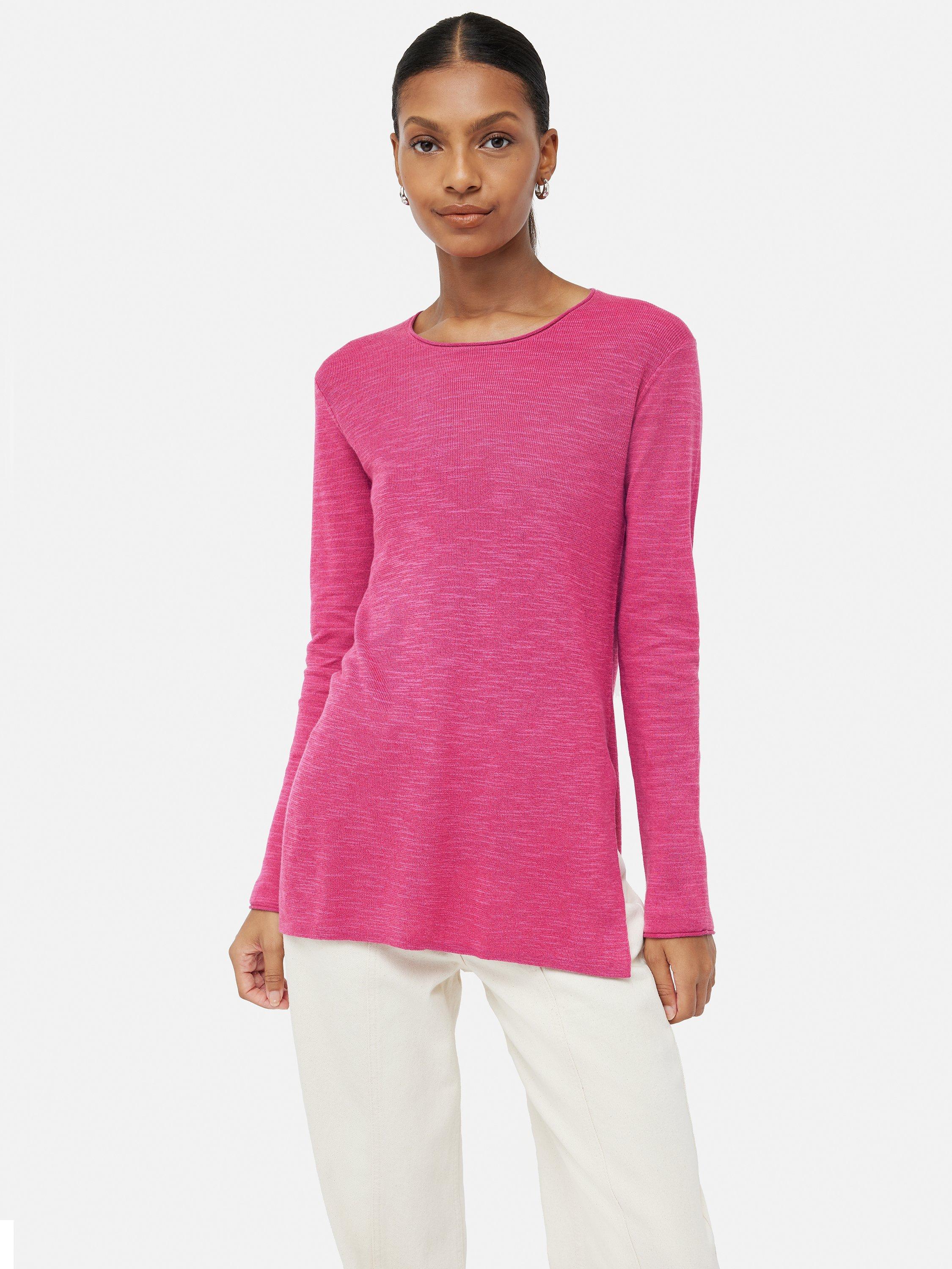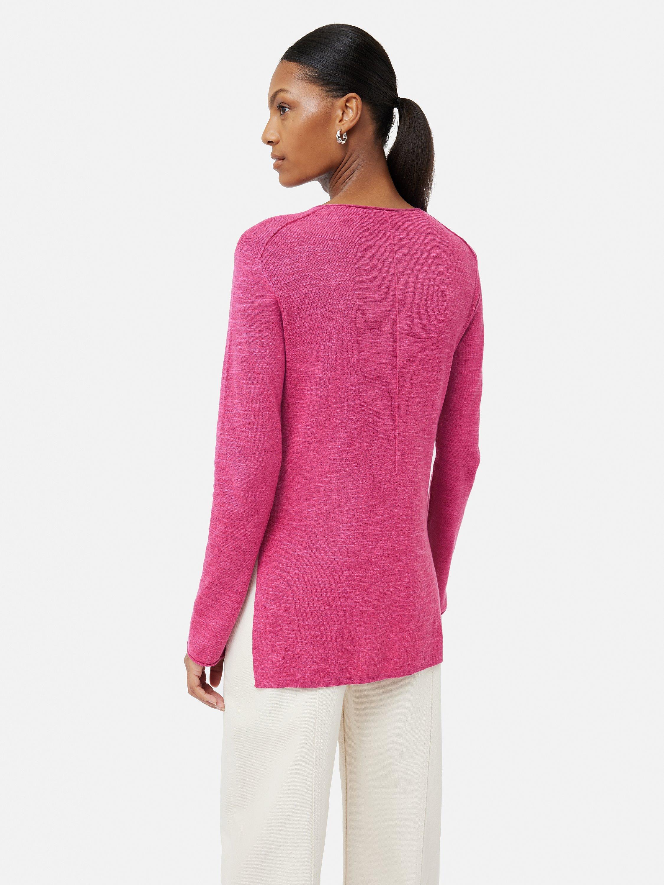 Nice and simple with a round neckline, this lightweight jumper from Jigsaw makes for lightweight wear in a smooth linen-cotton blend.