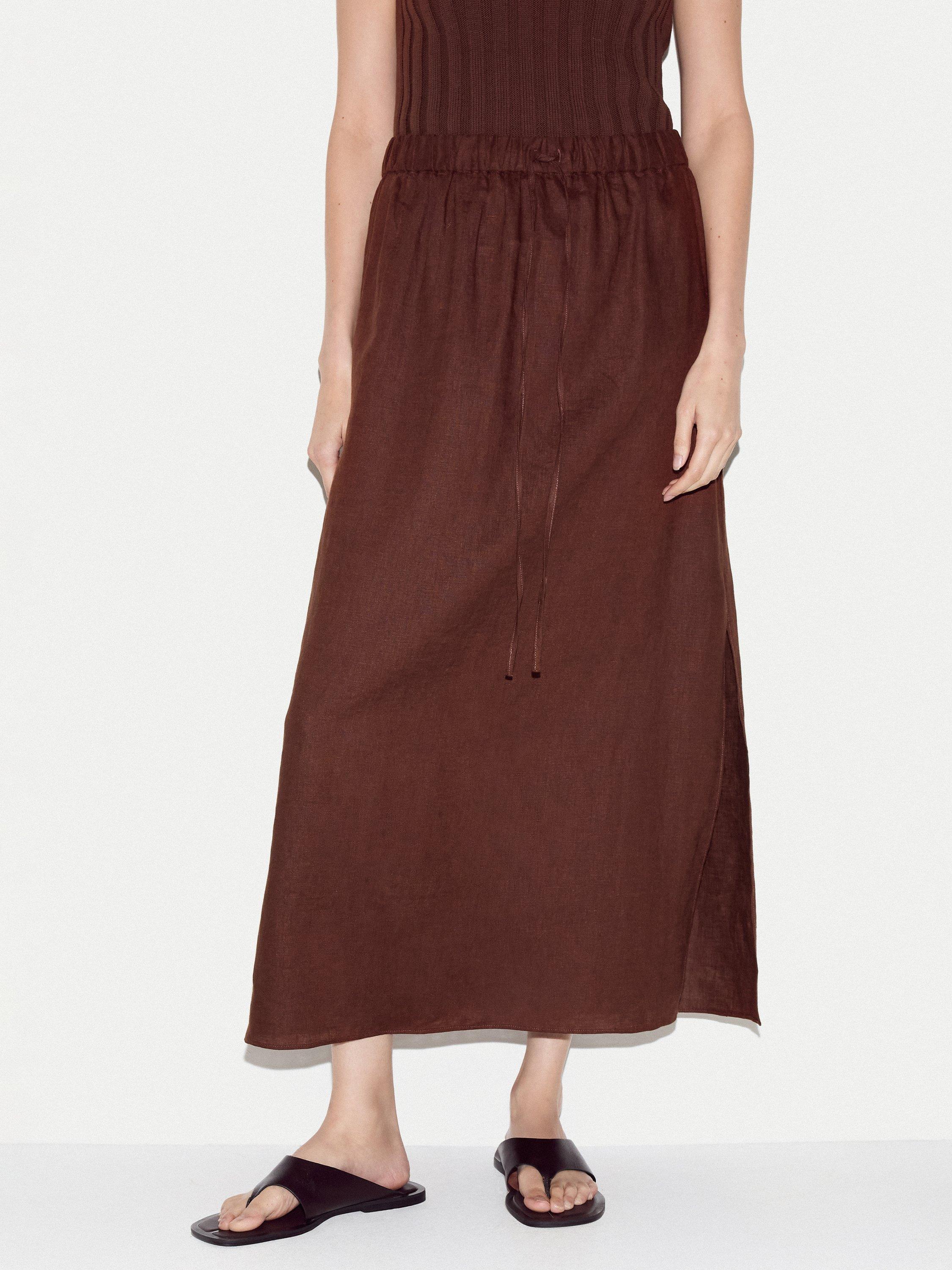 Cut from breathable linen, this maxi skirt features a relaxed drape and an adjustable drawstring waist for a personalised fit. The flowing silhouette brings easy polish to warm-weather days. Style with a simple tank or shirt for a refined finish.