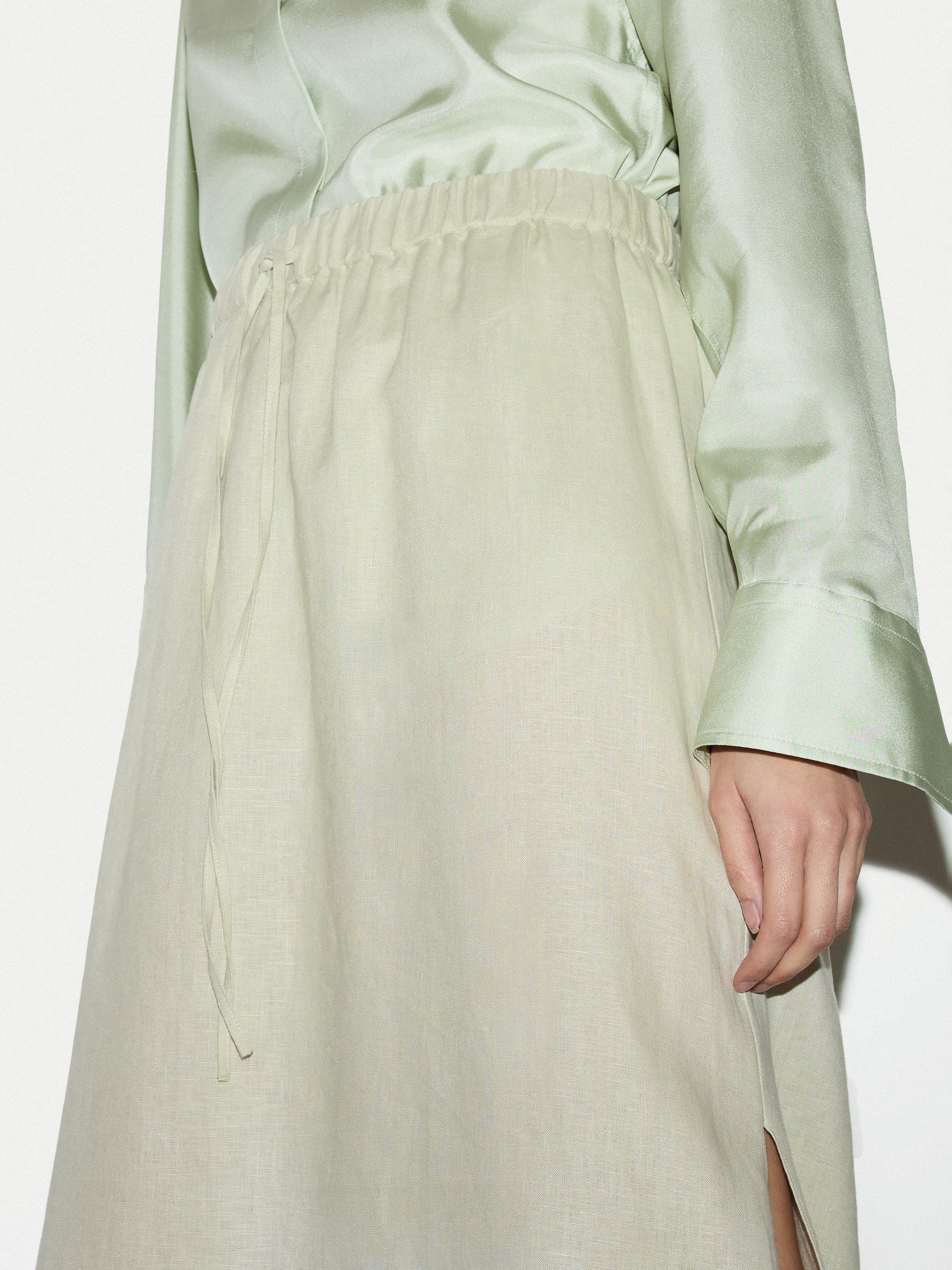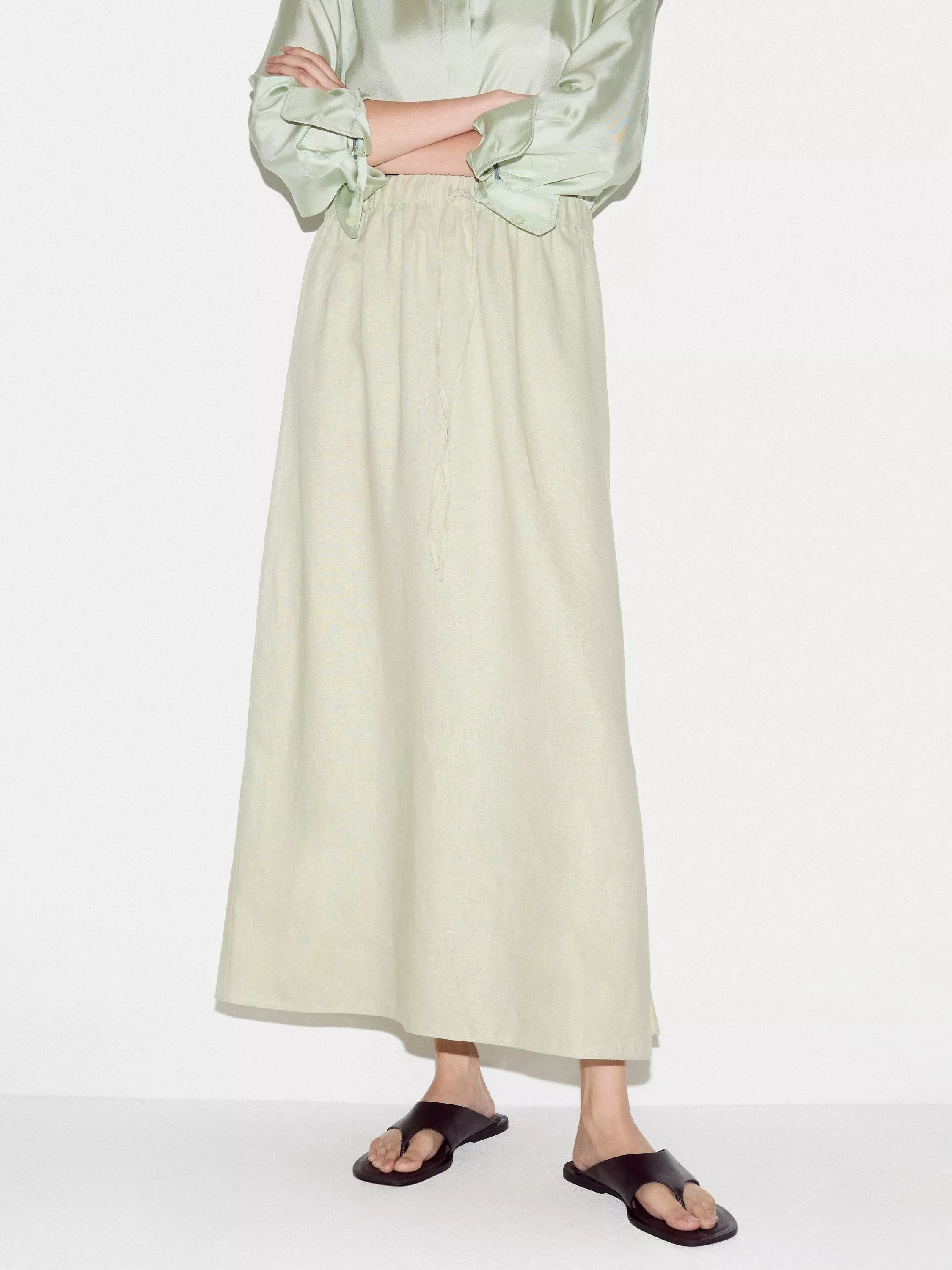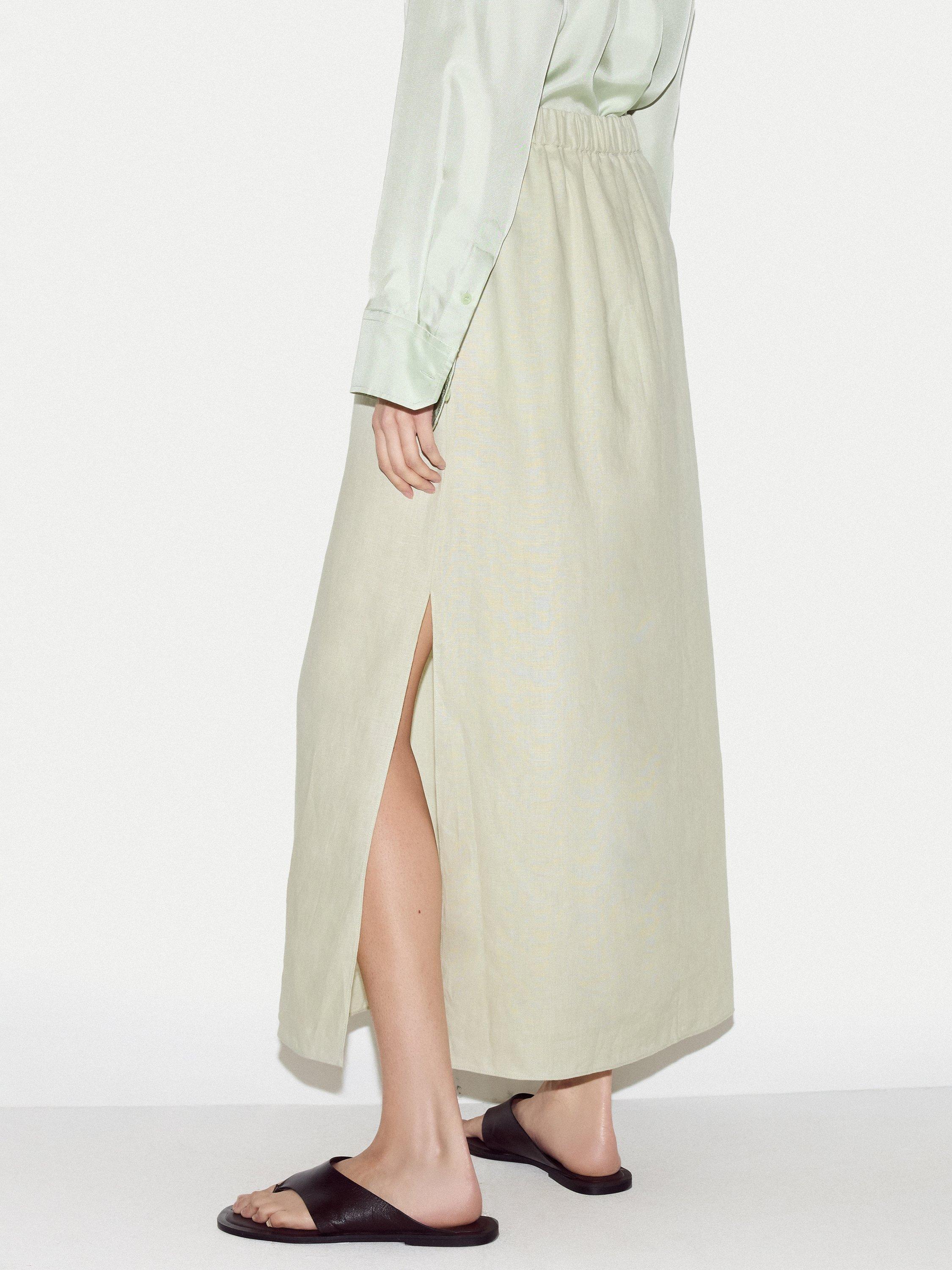 Cut from breathable linen, this maxi skirt features a relaxed drape and an adjustable drawstring waist for a personalised fit. The flowing silhouette brings easy polish to warm-weather days. Style with a simple tank or shirt for a refined finish.