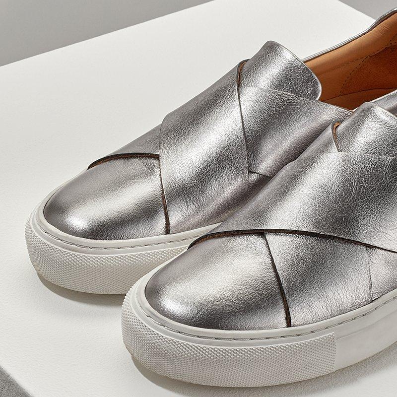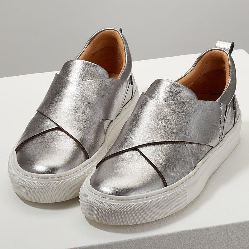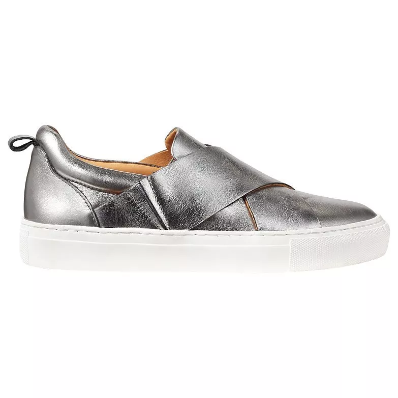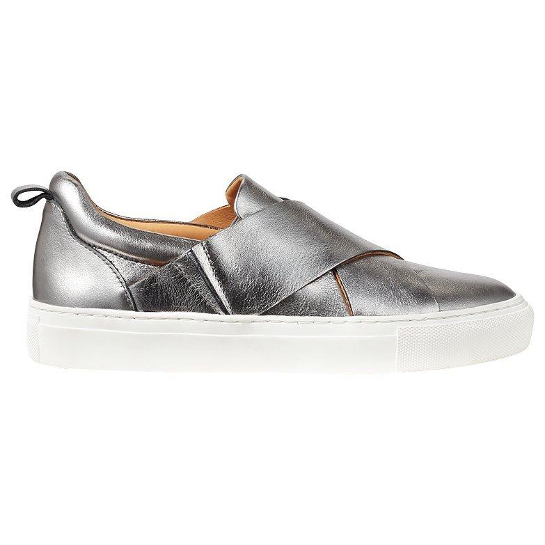 Bring a sleek, sports luxe feel to your assortment with these Olivia trainers from Jigsaw. Featuring a slip on design with elasticated tabs for easy entry, two crossed straps over the foot and a thick flat sole.