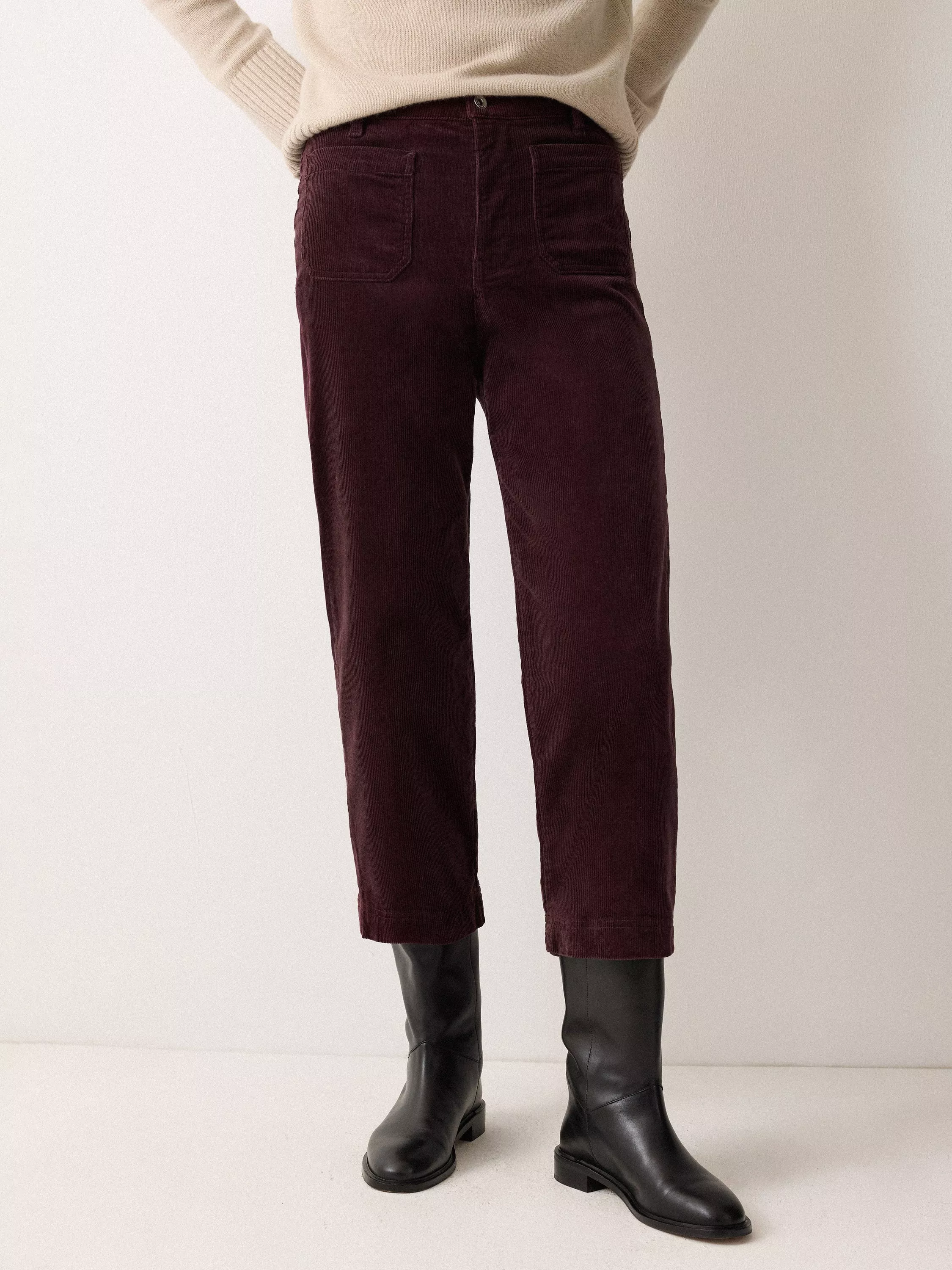 Embodying 70s-inspired design, these jeans have been cut from cotton corduroy for a flattering high-rise waist and a cropped, wide leg silhouette with patch pocket detail.