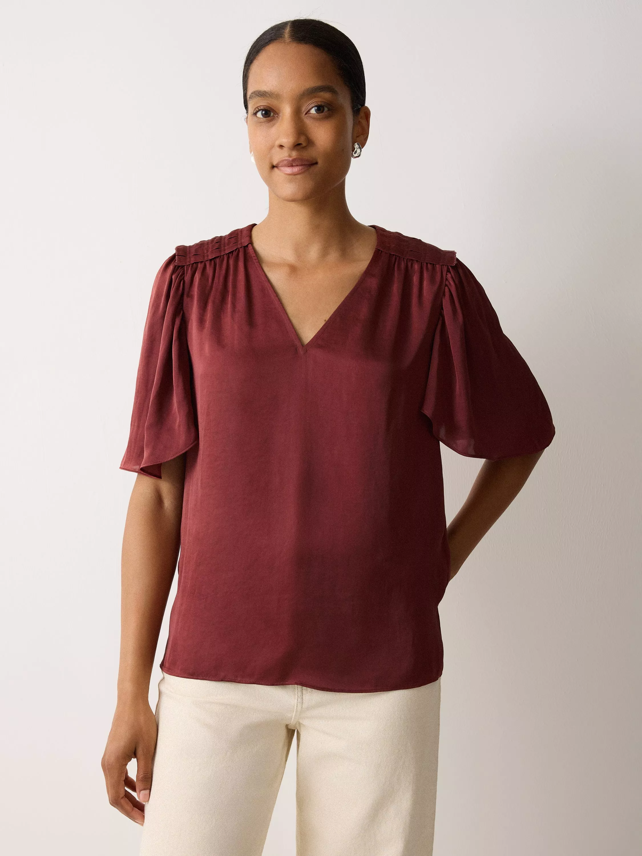 Jigsaw’s blouse energises your day with a sharp v-neck and elbow-length sleeves, crafted in soft satin. Designed for ease and impact, its smart simplicity invites creativity in styling, while offering comfort that keeps you engaged from morning meetings to evening plans.