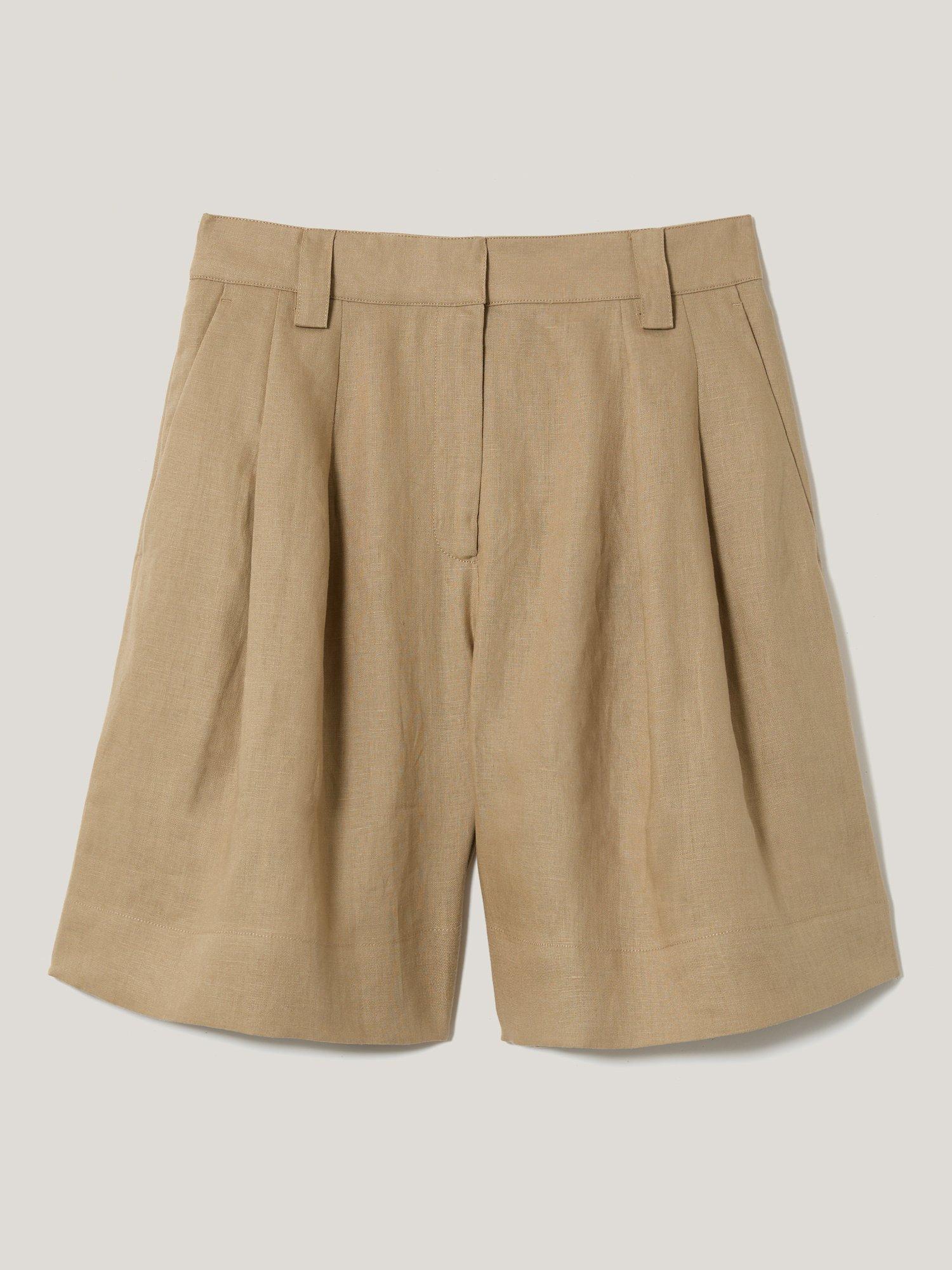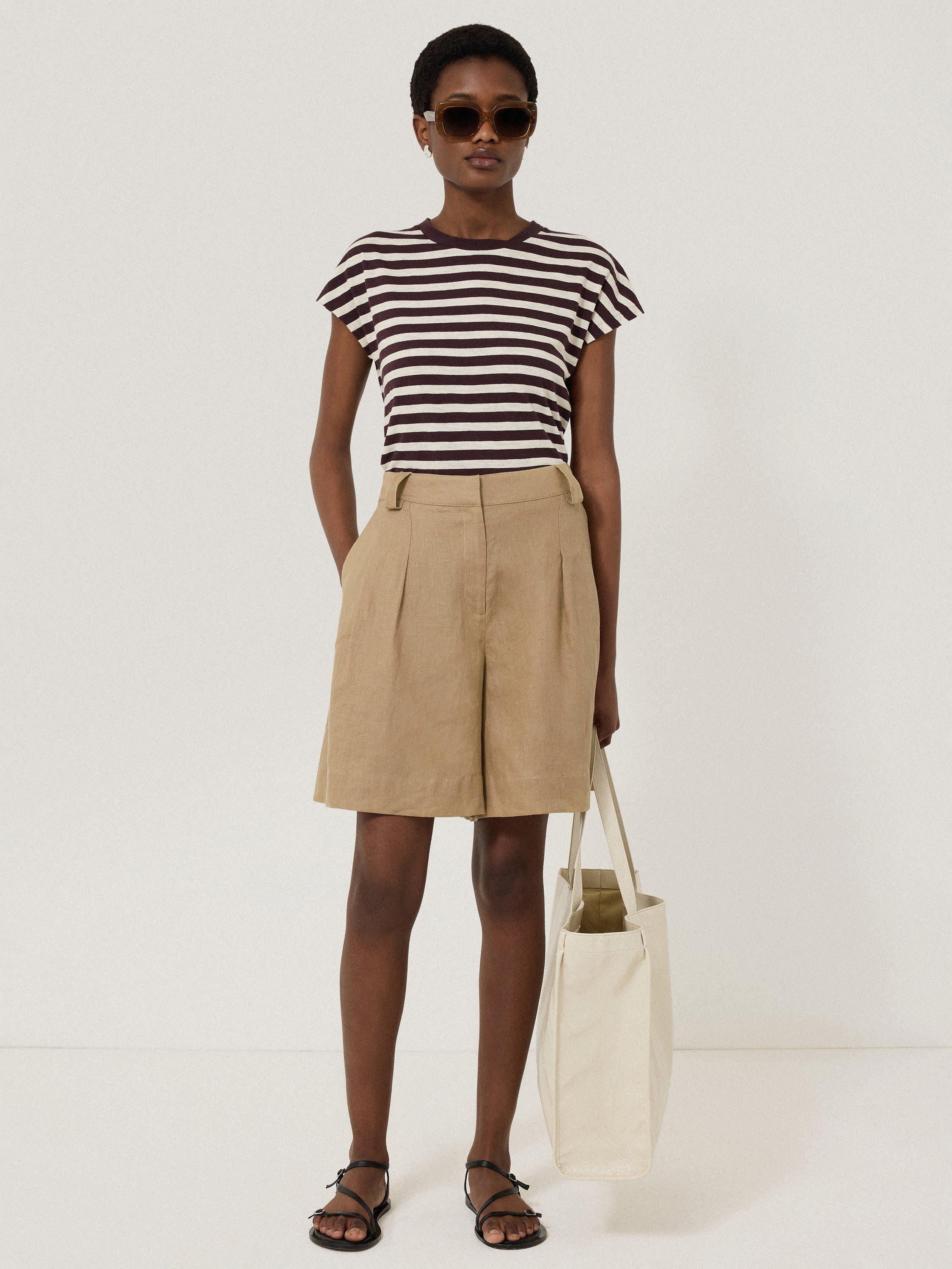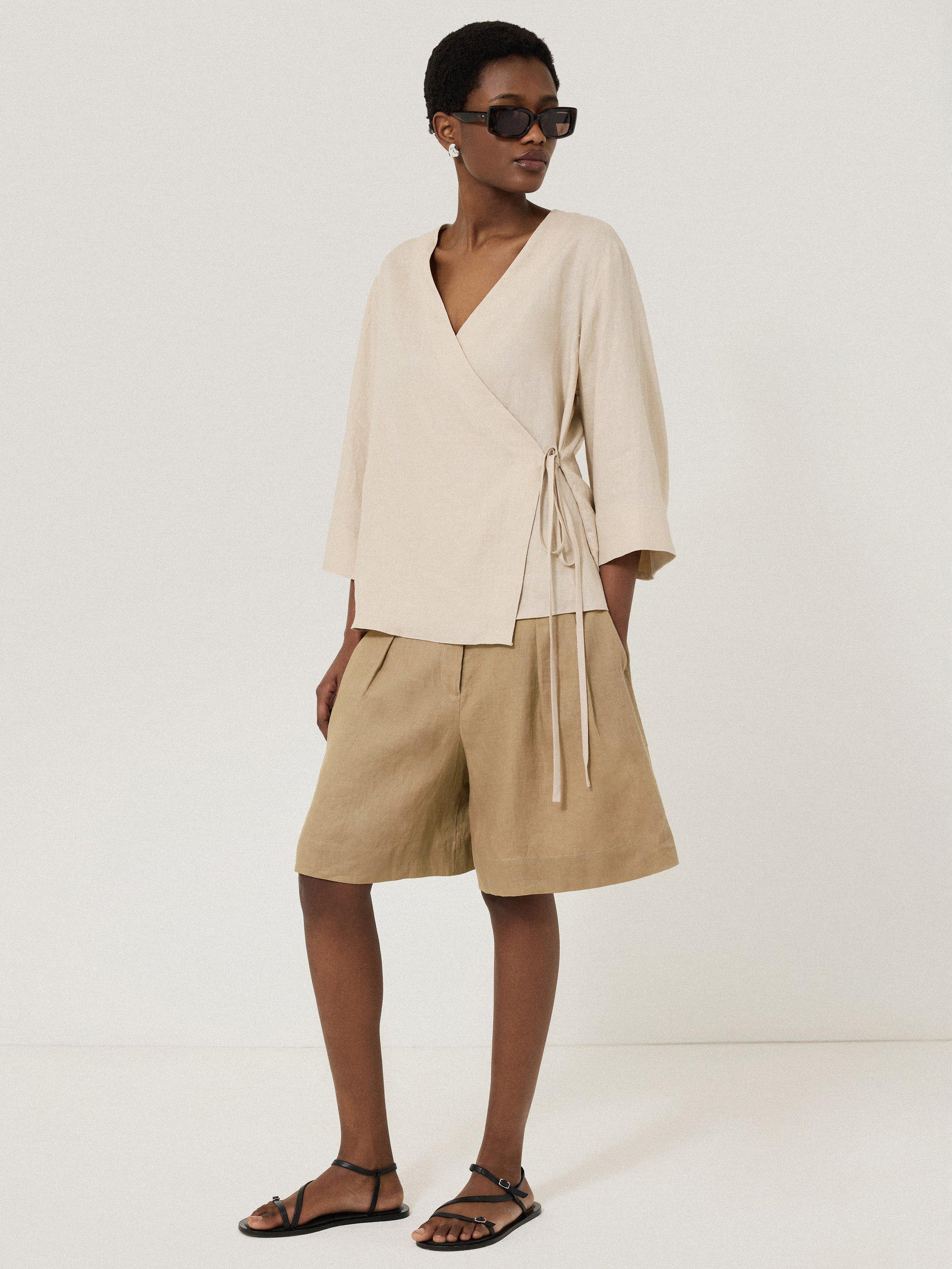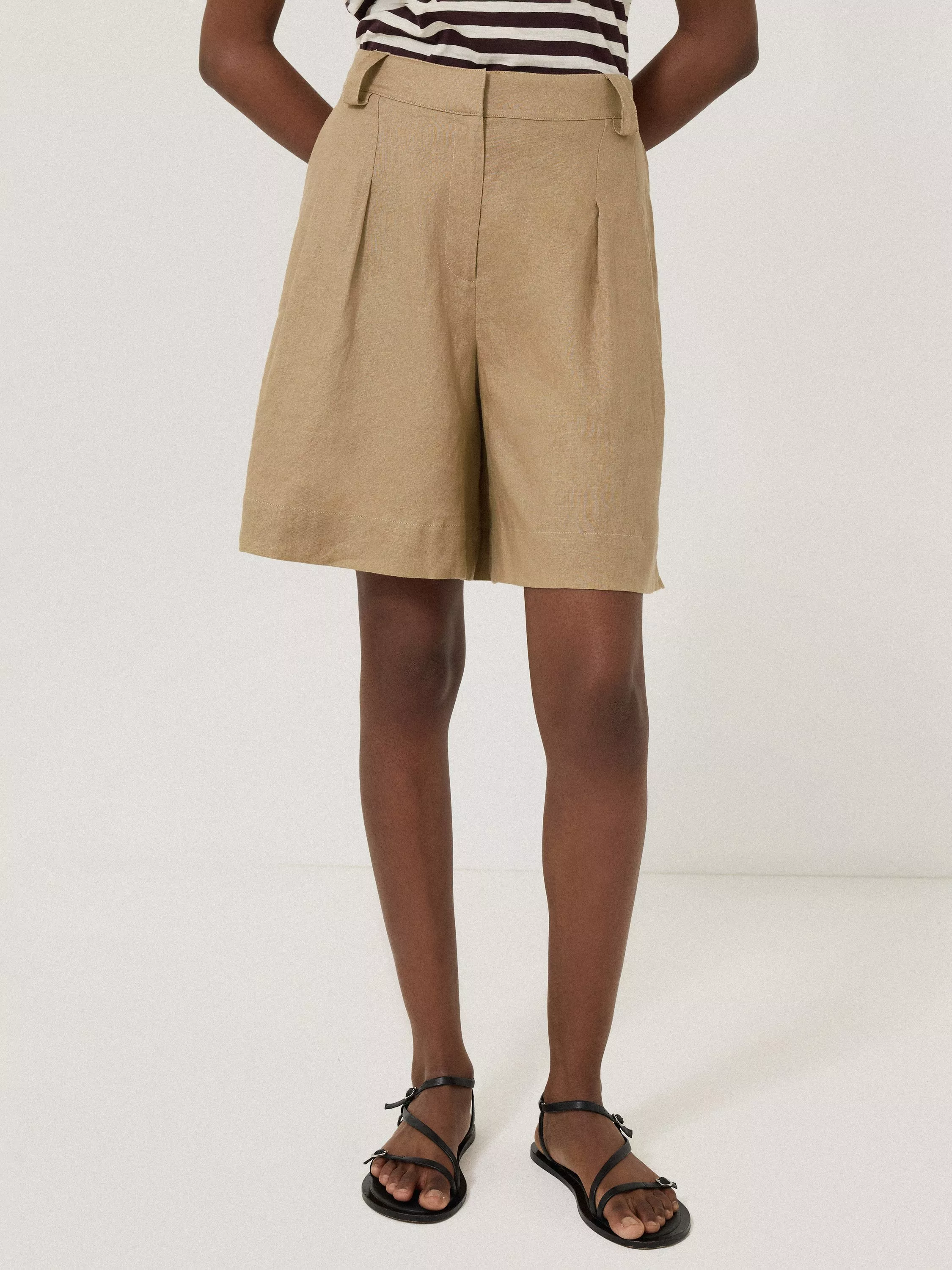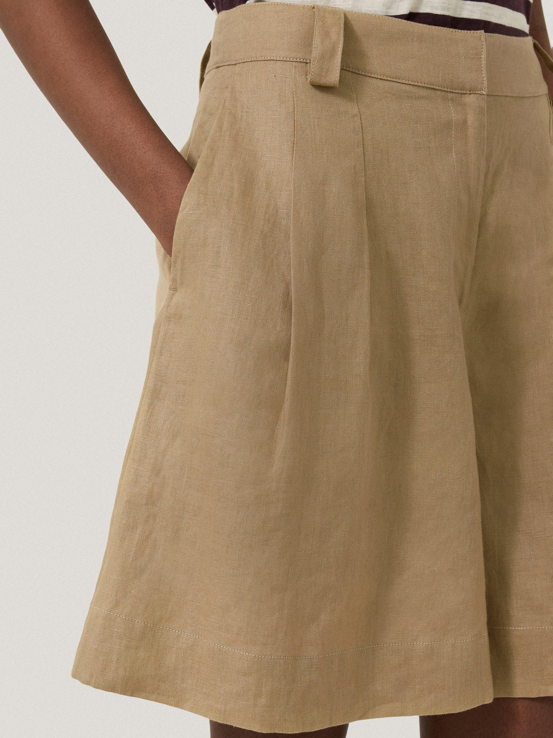 Add these linen Bermuda shorts to your warm weather repertoire for endless versatility. Our linens only gets better over time, becoming softer the more they are washed. Detailed with tie fastenings and a patch pocket at the back.