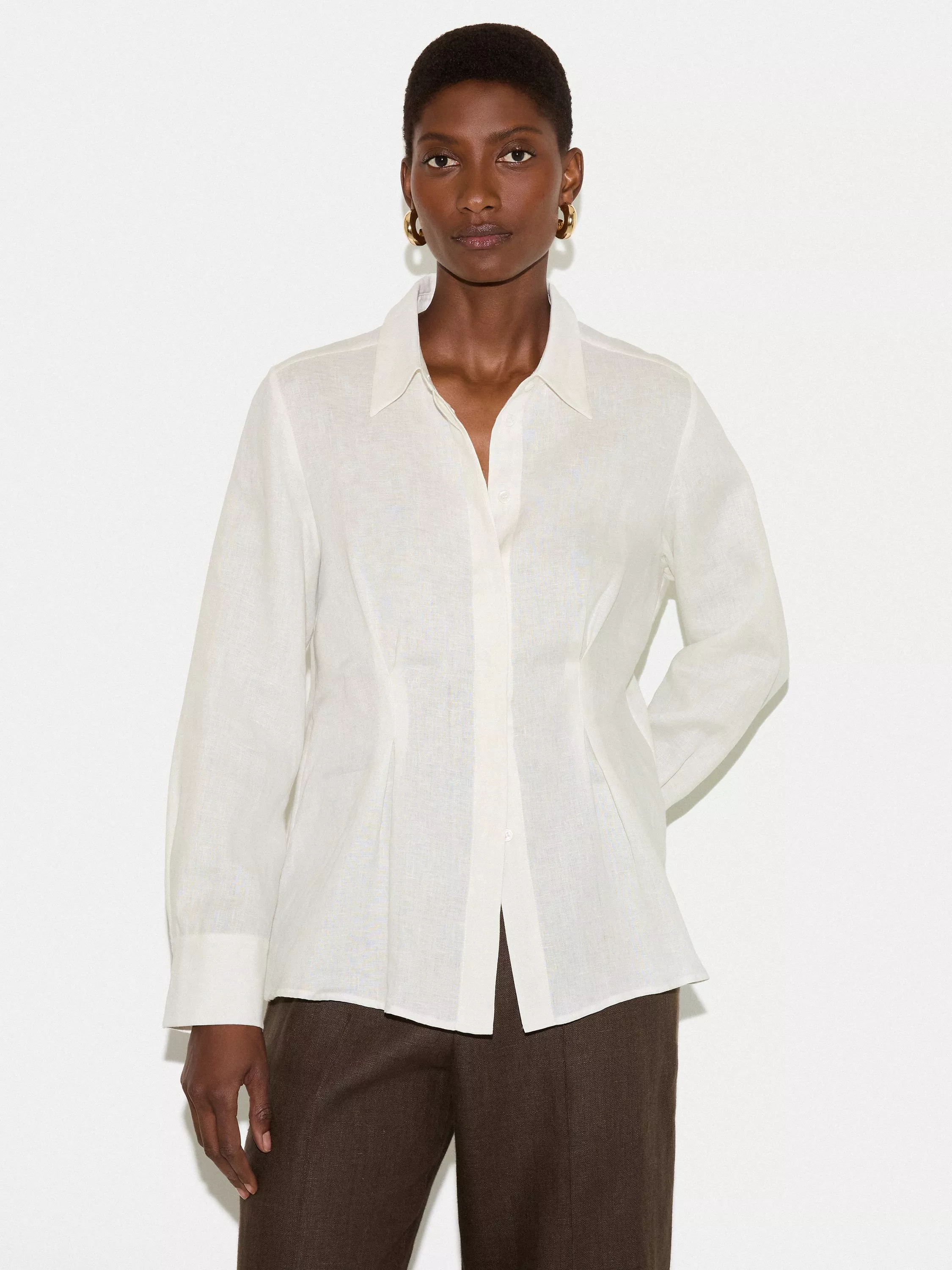 Crafted from breathable linen, this shirt offers an elevated take on a laid back summer essential. Jigsaw designed it with a distinctive pleated waist detail that creates a flattering, defined silhouette. Transition seamlessly from a casual weekday lunch to a more dressed-up evening.