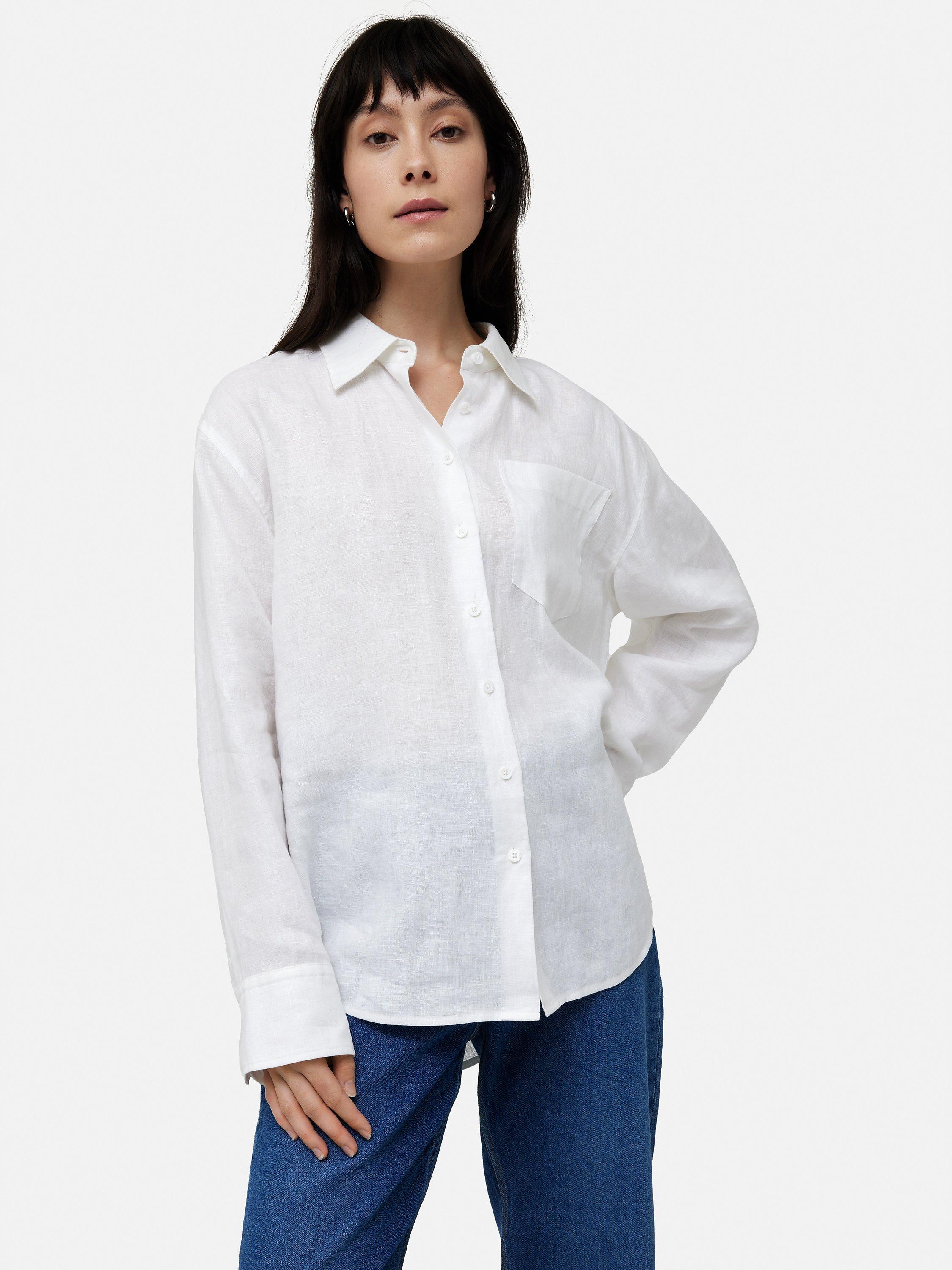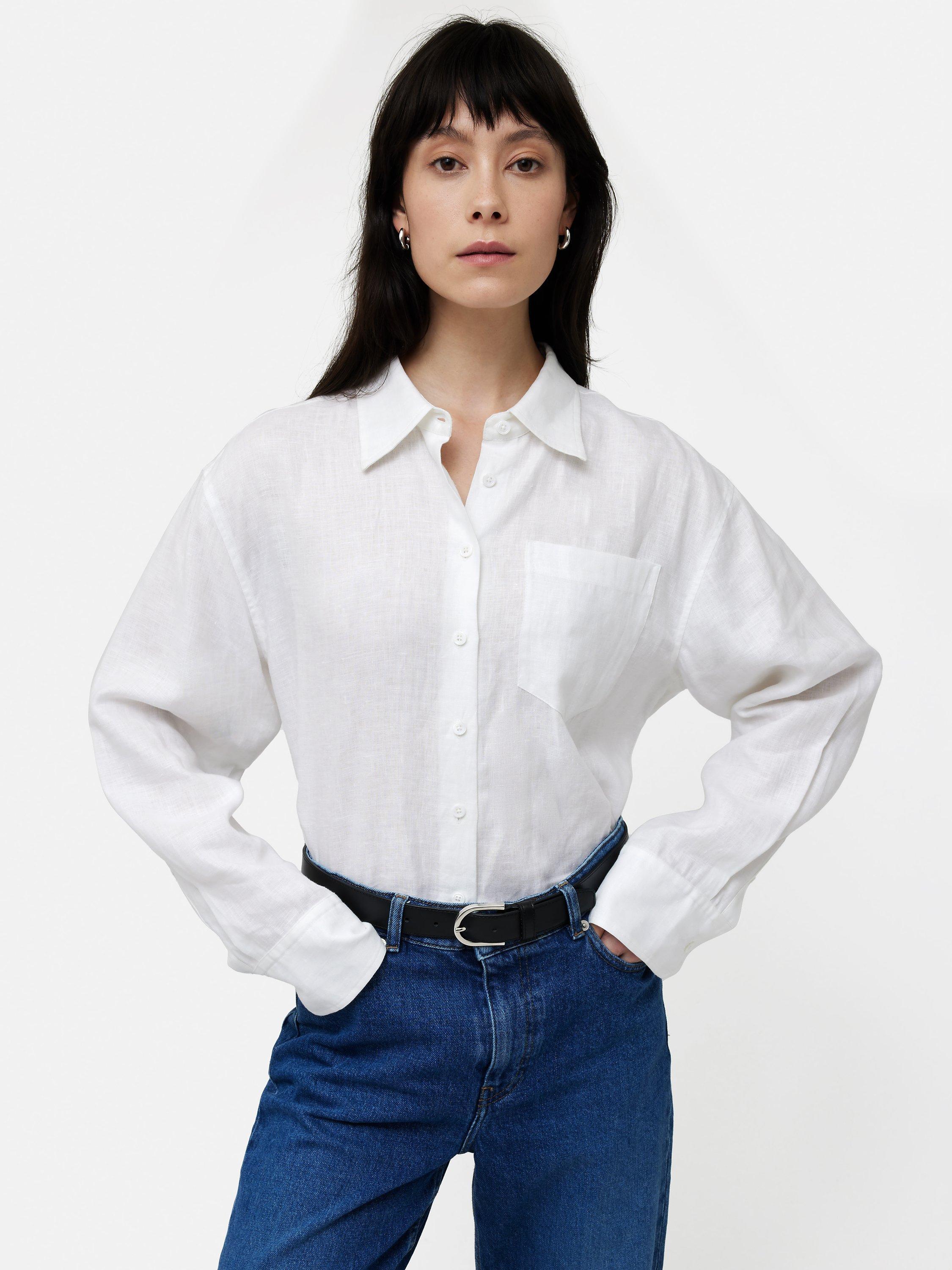 With a neat collared neck and long sleeves, the linen fabric offers cool and breathable comfort in warmer months and is an everyday wardrobe essential.