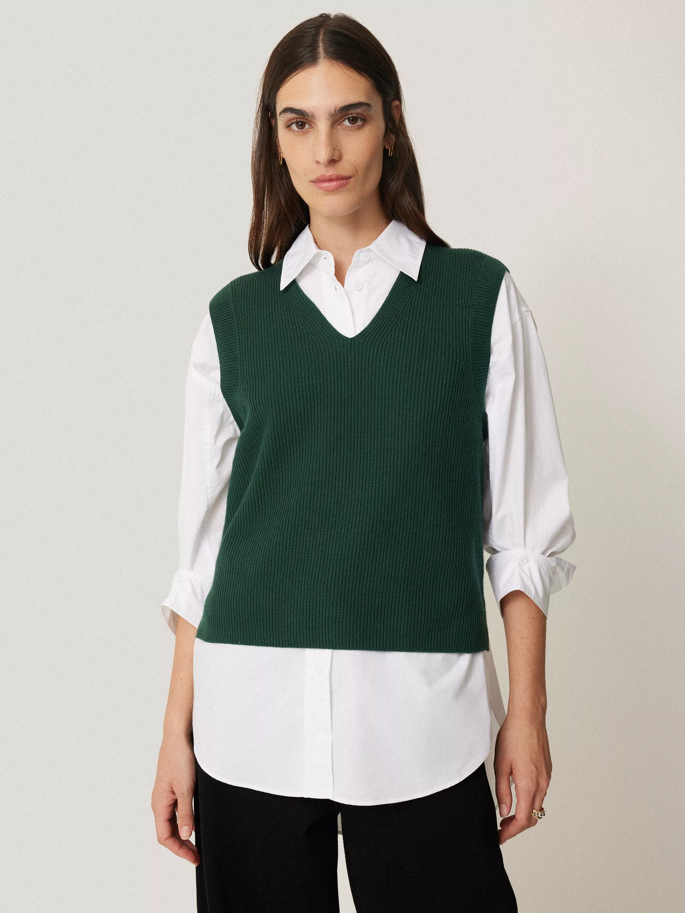 Occasionally, your wardrobe needs a fresh interpretation of a beloved classic. Hence, Jigsaw have reimagined the best-selling cotton blend tank to feature a graceful v neckline. This variation maintains its versatility, ensuring it retains its innate superpower to effortlessly pair with any ensemble in your wardrobe.