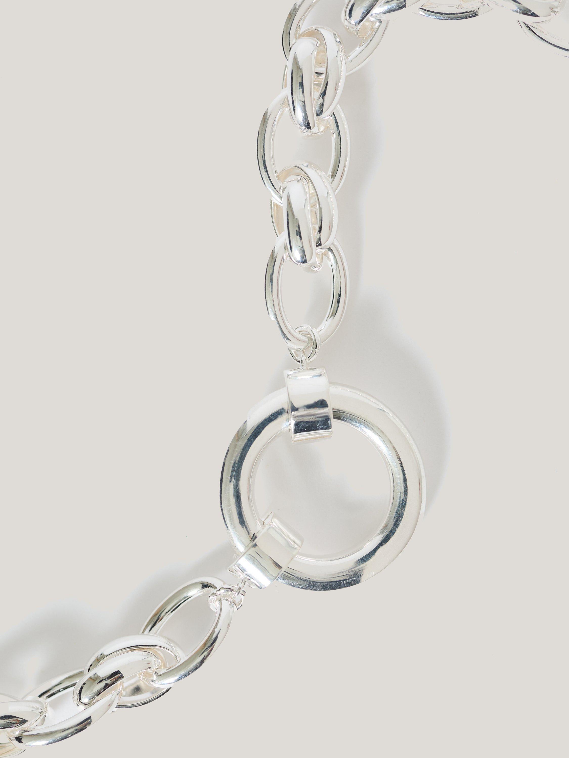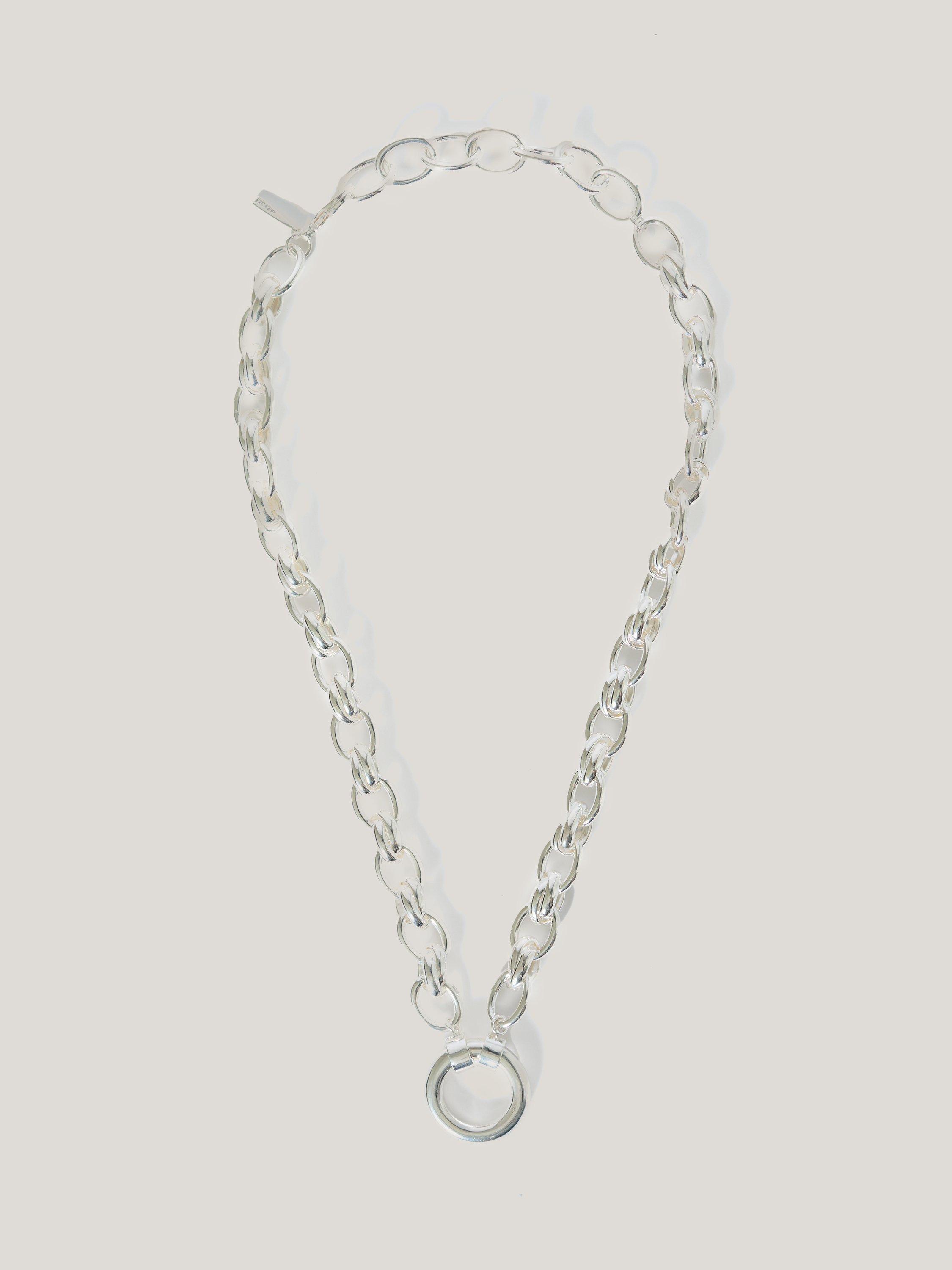 Opt for chunky chains to lend a vintage-inspired touch to your jewellery accessorising. This Round Link Chain necklace features a slender oval chain interspersed with textural double hoops and a central round hoop pendant which you can use to attach charms.