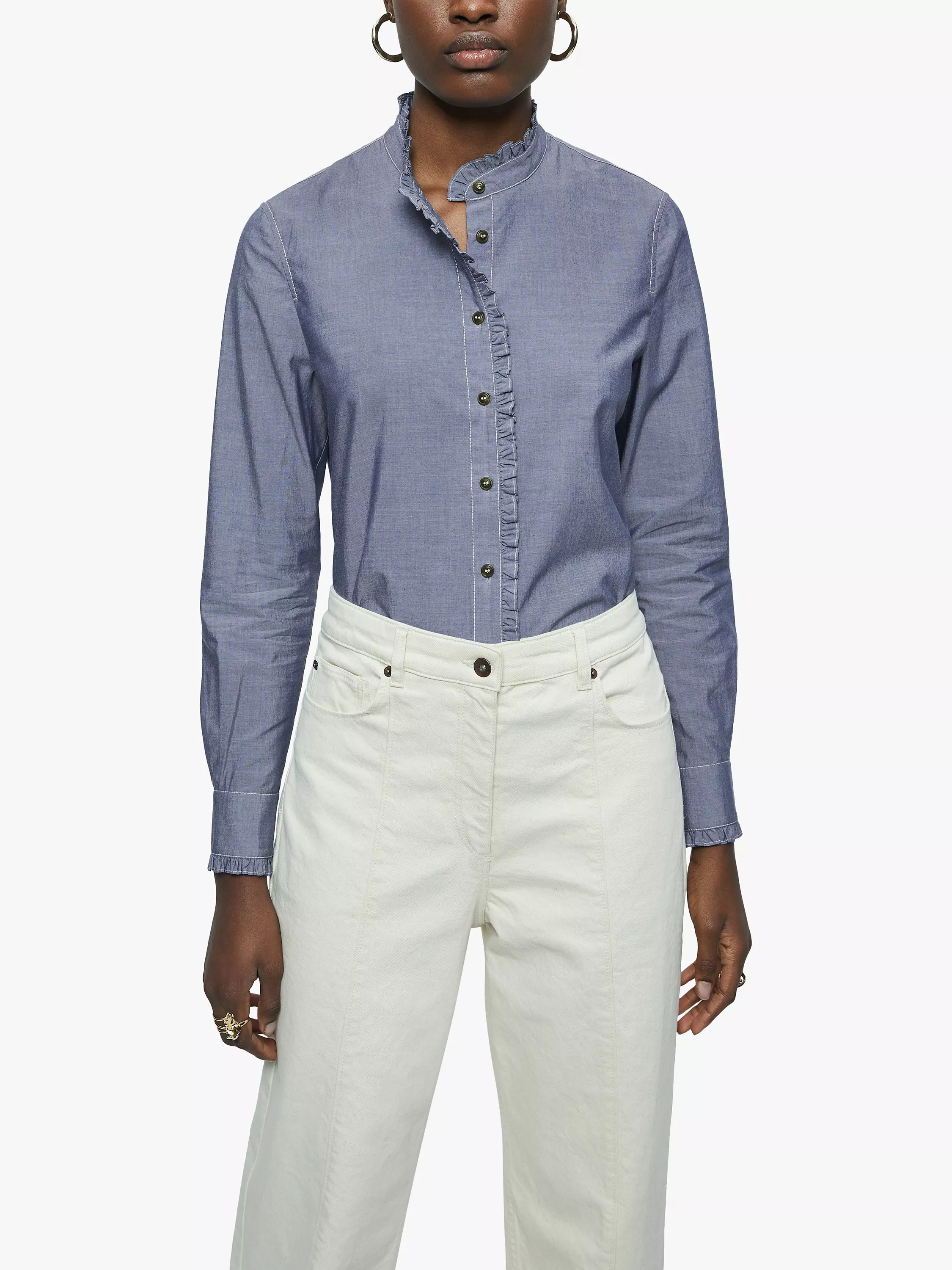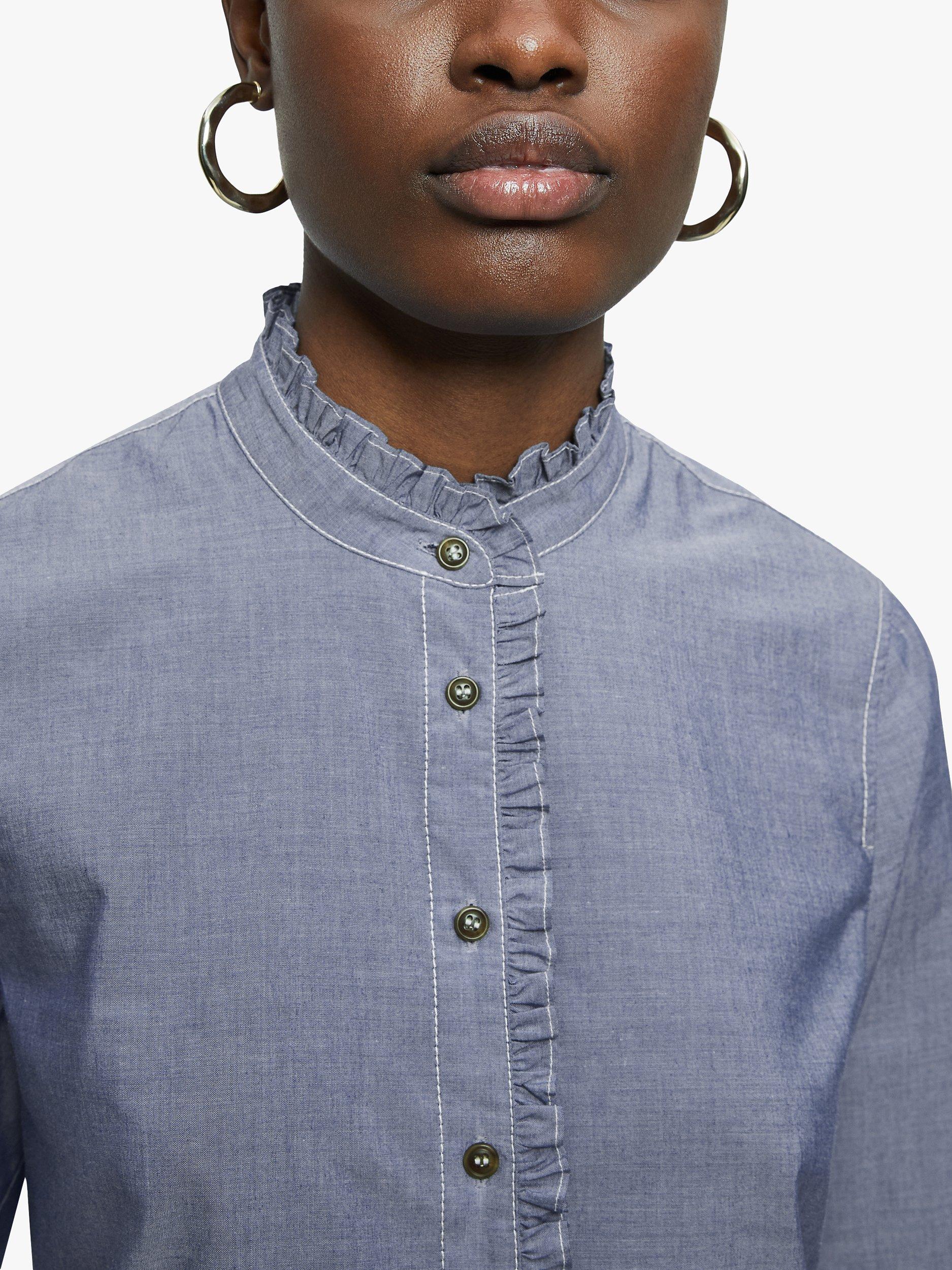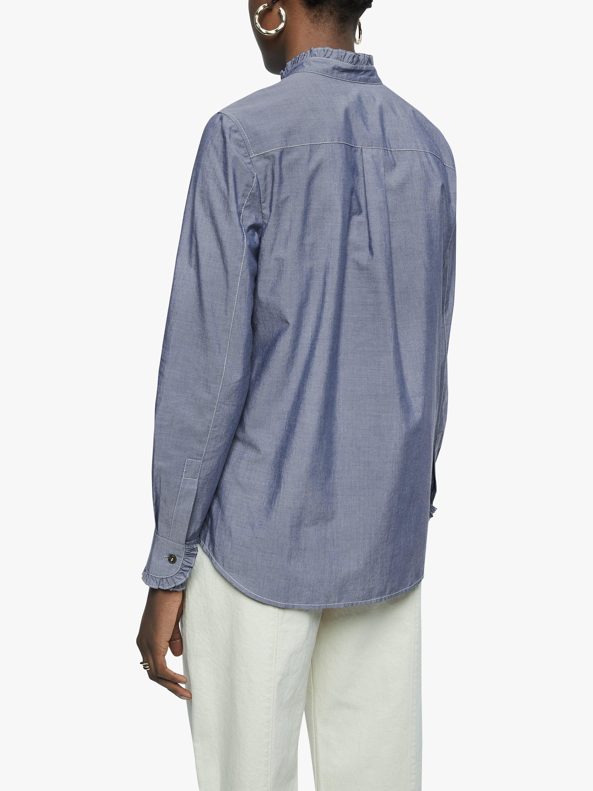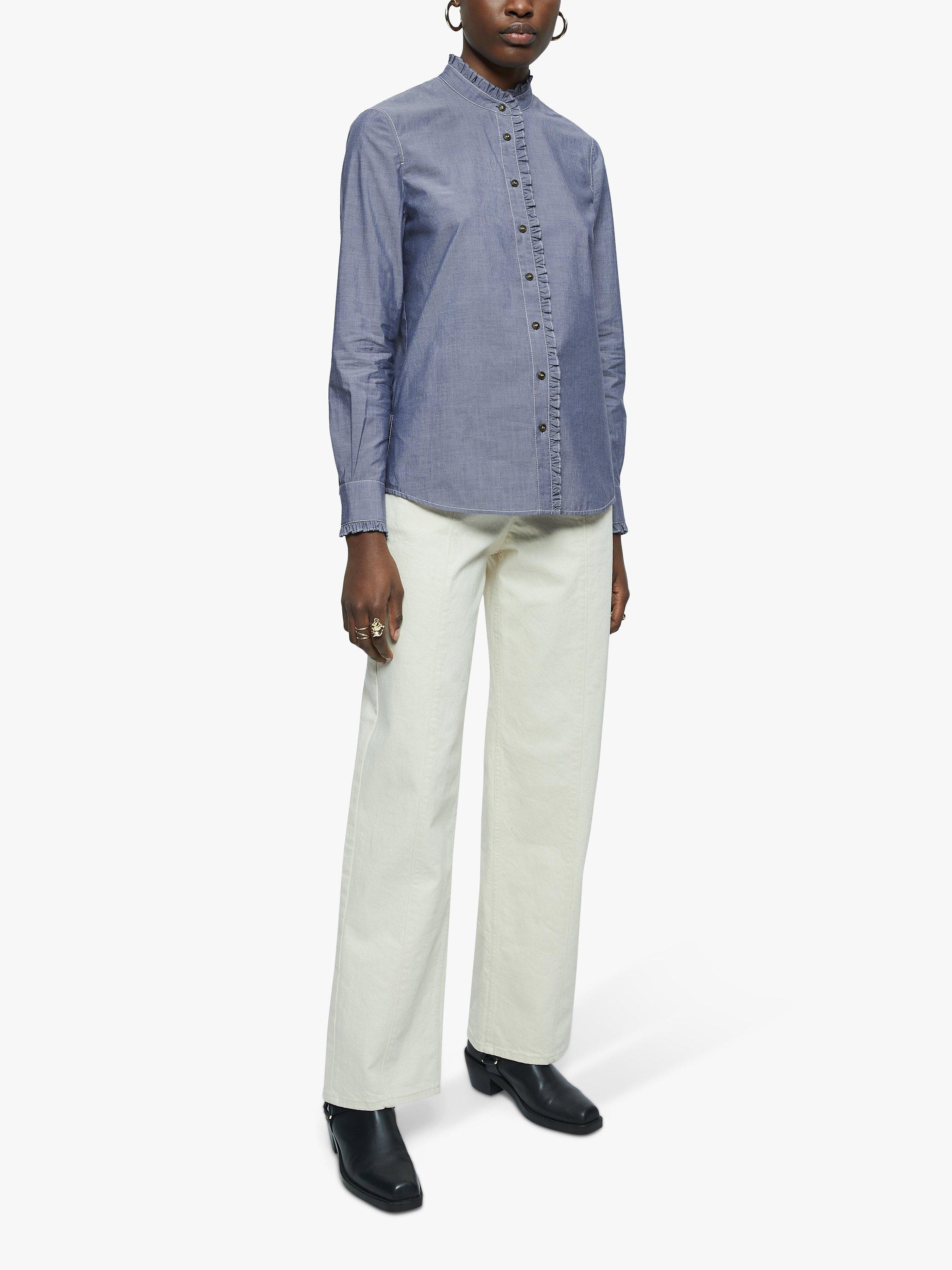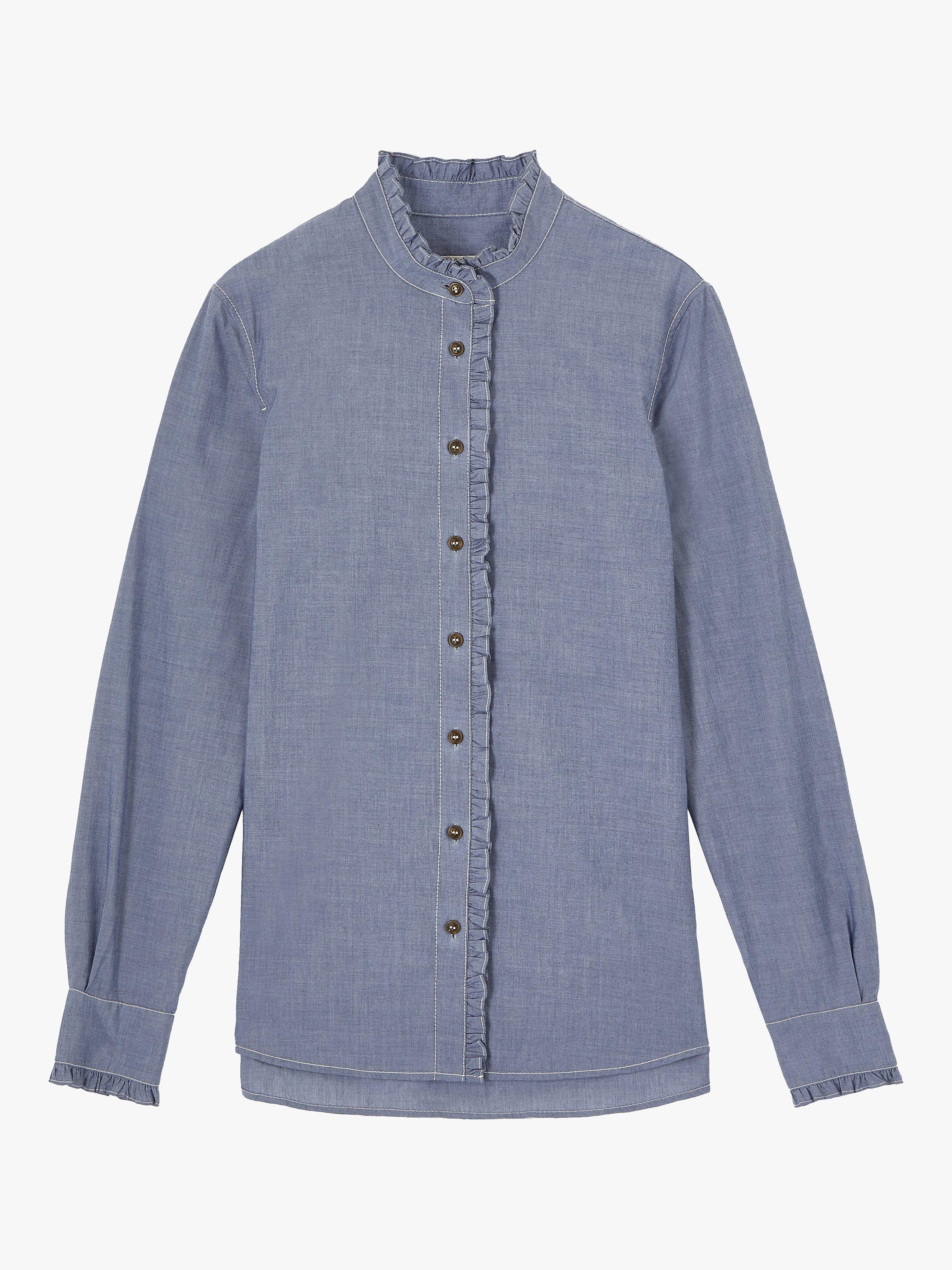 JigsawRuffle Trim Denim Shirt, Blue