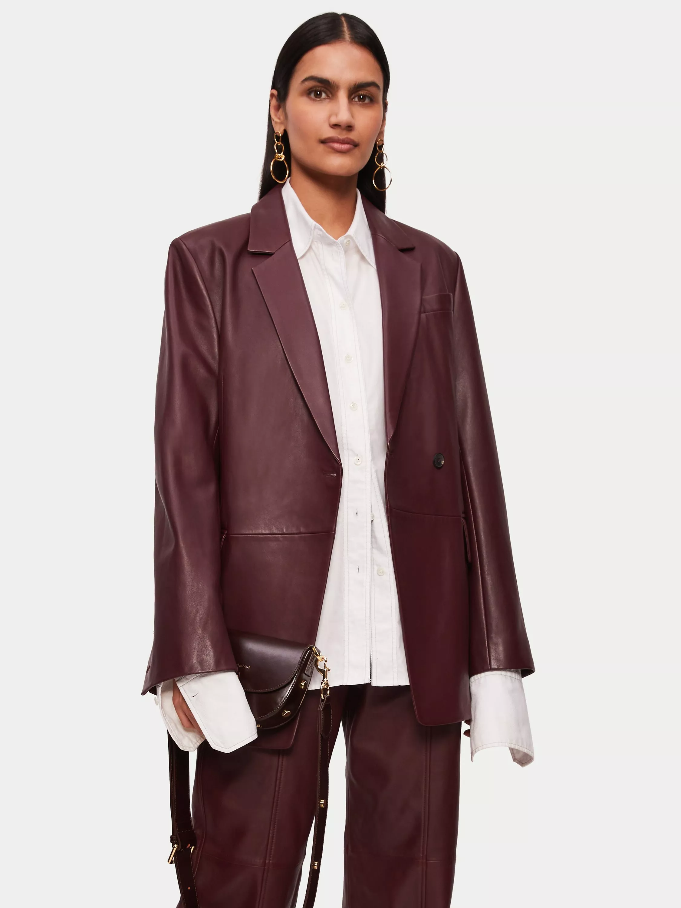 An elegant layering piece for smart events, this blazer by Jigsaw sits at the hips for practical coverage.