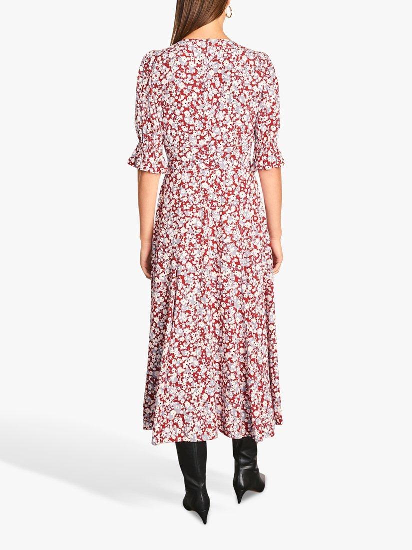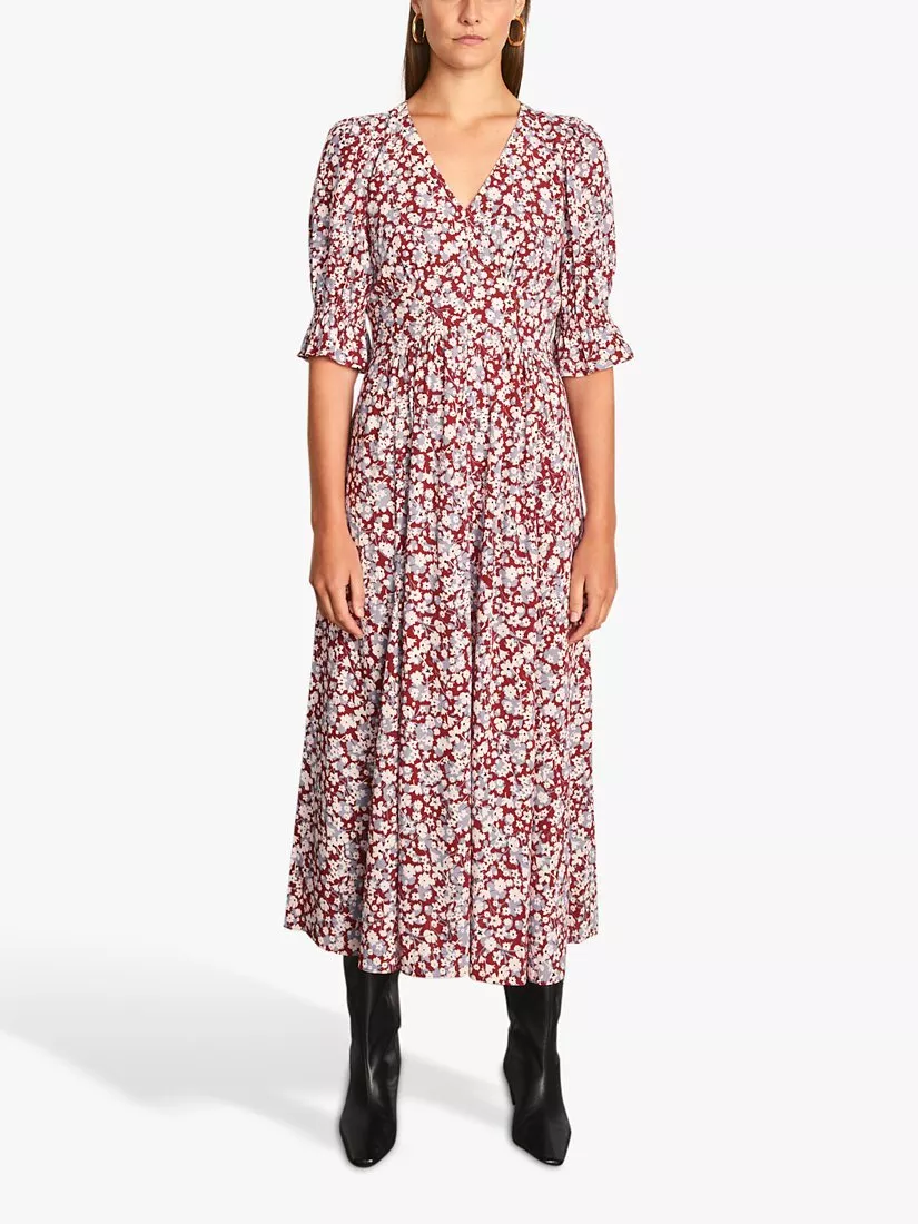 Repping vintage style with its tea shape silhouette, this midi dress from Jigsaw boasts a floral flourish for added appeal.