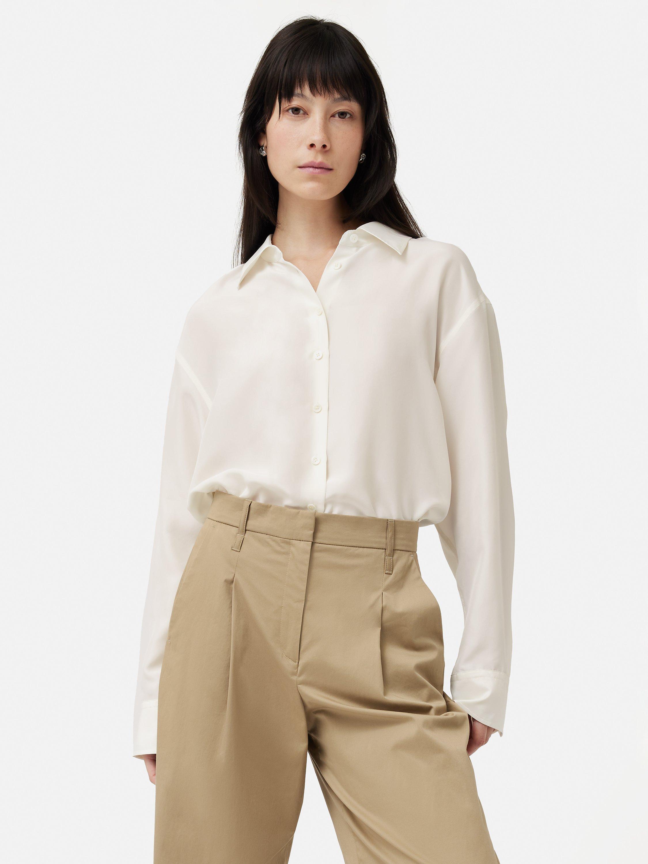 Structured with a collar and long sleeves, it is made from pure silk for a luxurious look and is an easy daytime option.