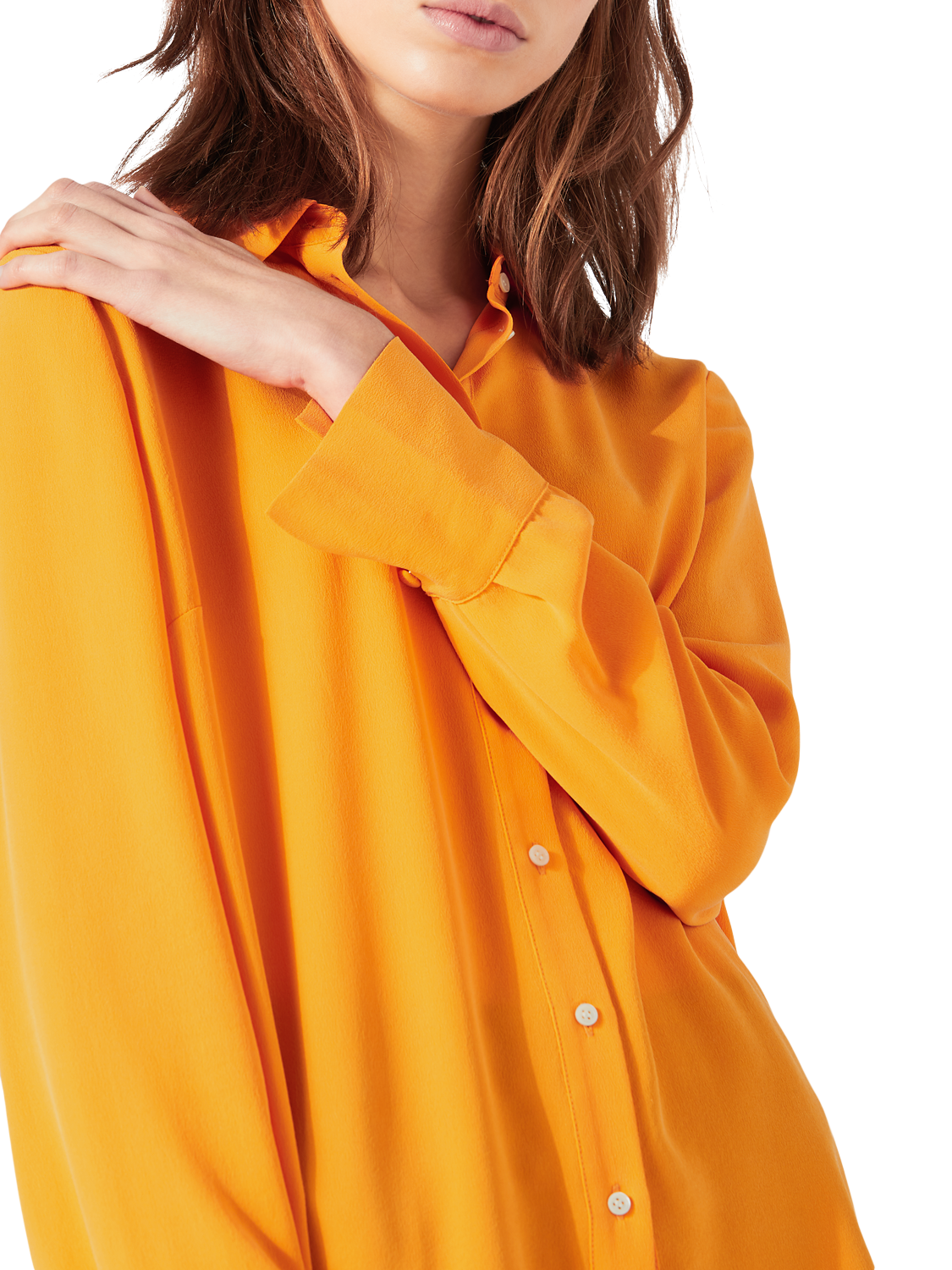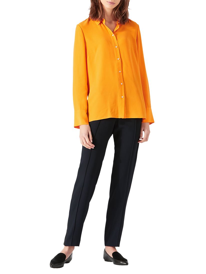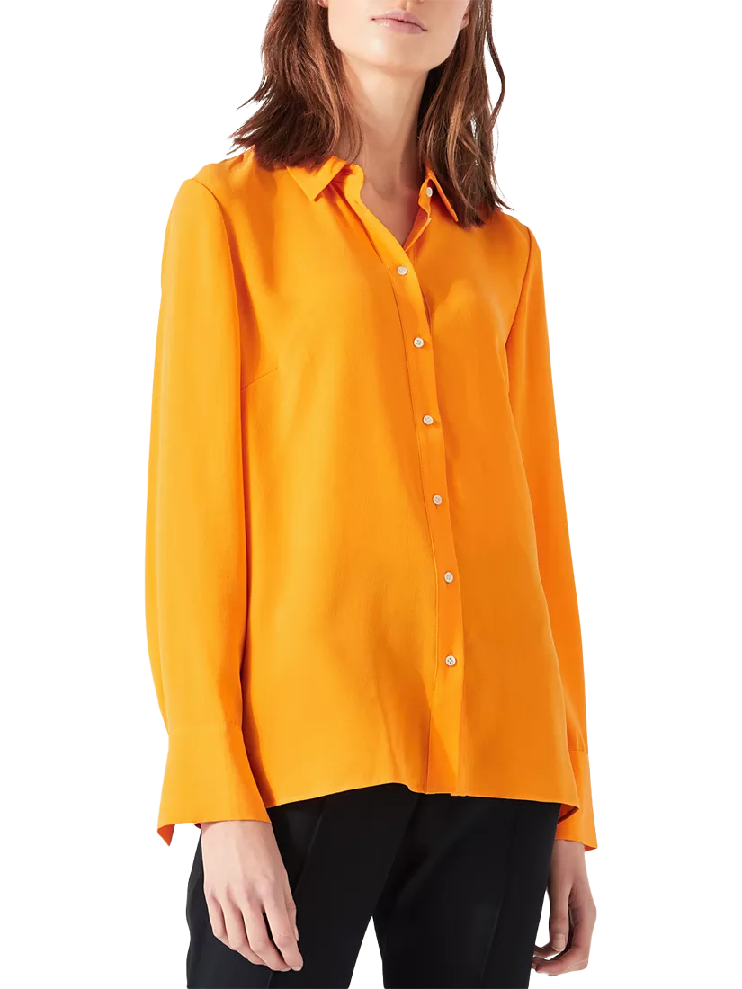 Crafted from pure silk for a smooth and lightweight feel, this piece features a neat pointed collar, button through fastenings and long sleeves. With a relaxed shape through the body, it can be worn for both smart or casual occasions.