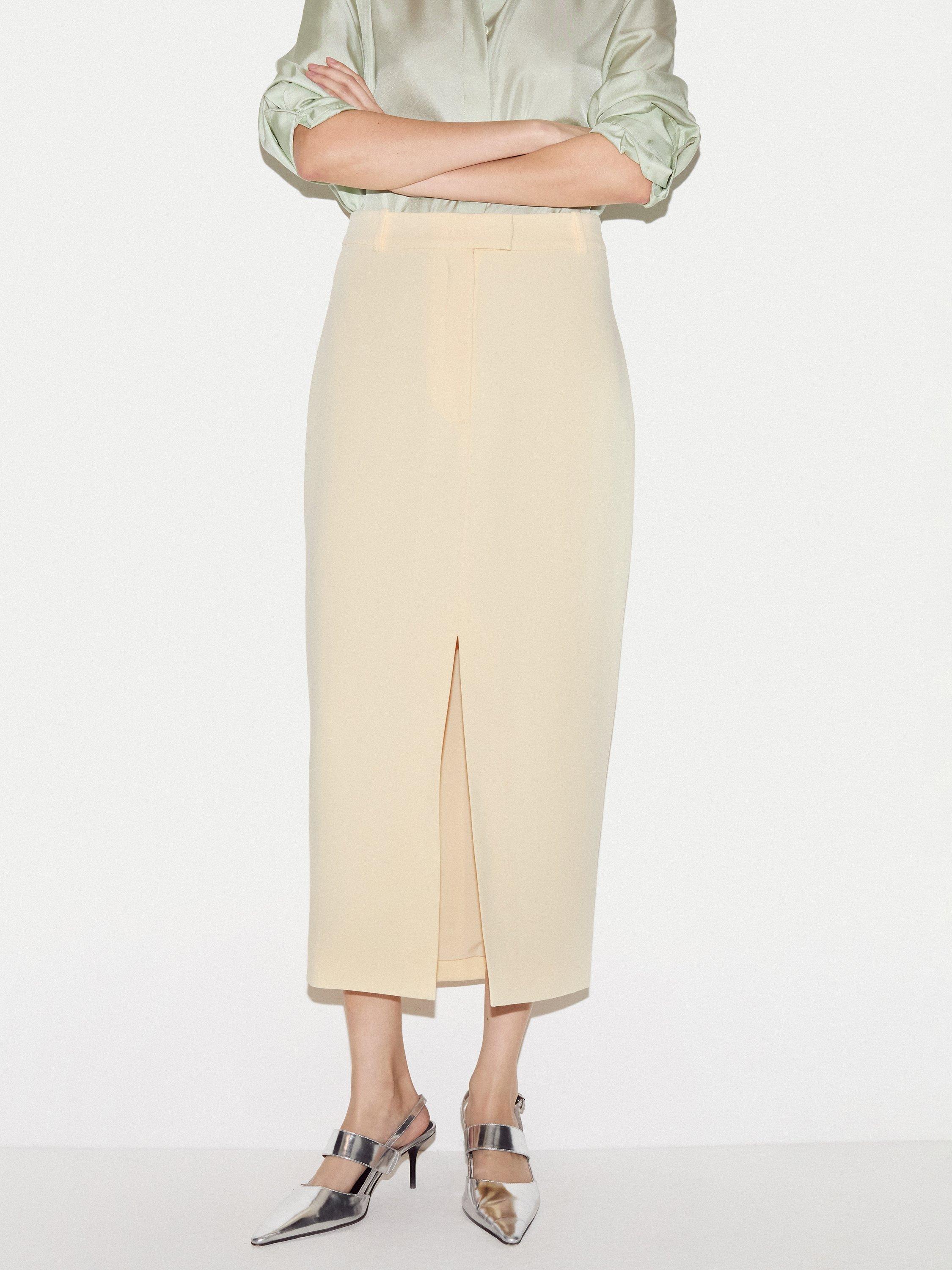 Designed with clean lines and precise tailoring, this skirt offers a sharp, modern silhouette for your working wardrobe. Jigsaw have added a subtle split front detail that provides ease of movement while keeping a polished shape. Pair with a soft blouse or crisp shirt, depending on the occasion.
