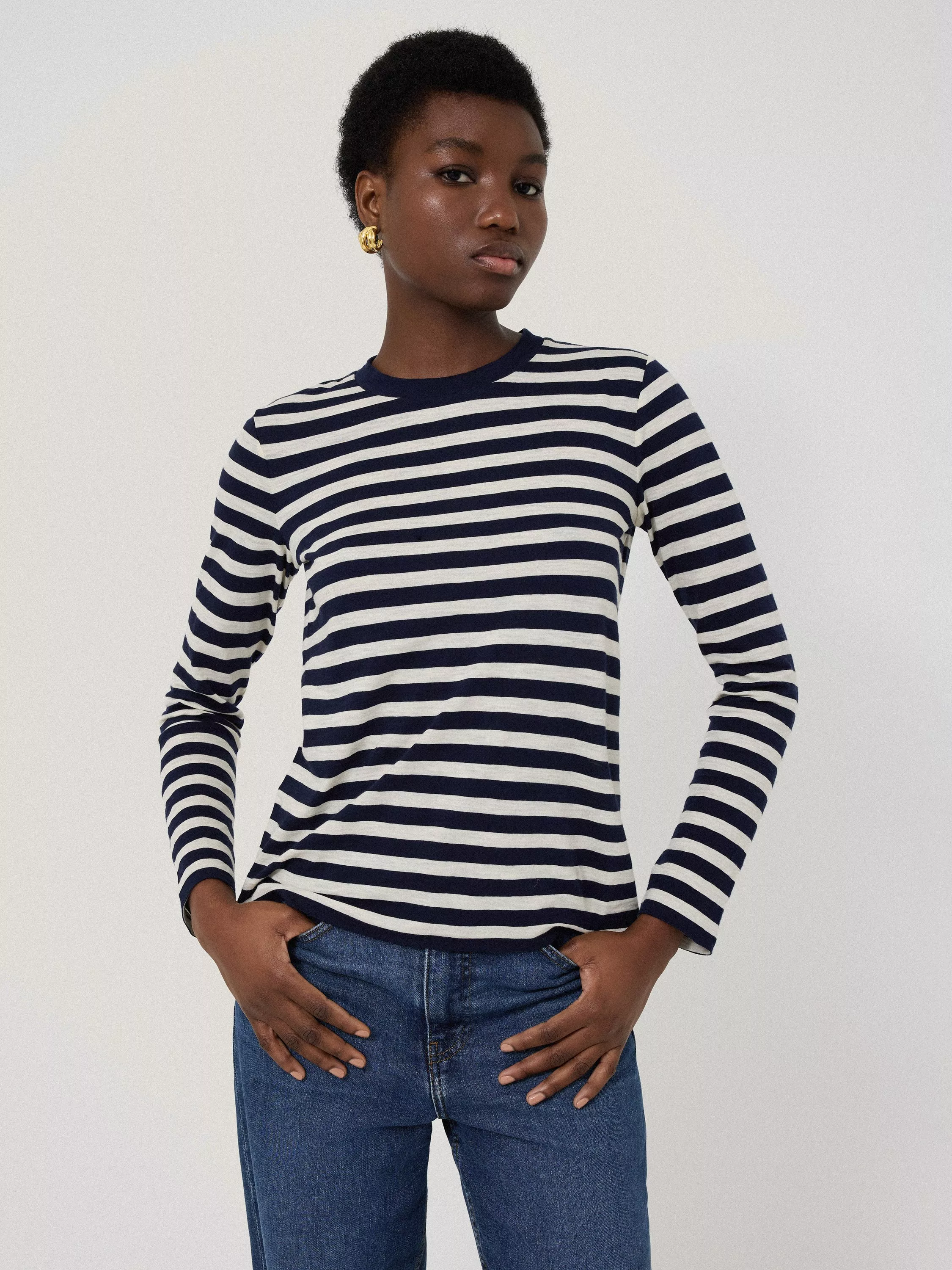 Designed in signature slub jersey, this long-sleeved striped top is the perfect layering addition for all seasons. The timeless Breton print is finished with a clean crew neckline, to style on its own or under a jumper or jacket.