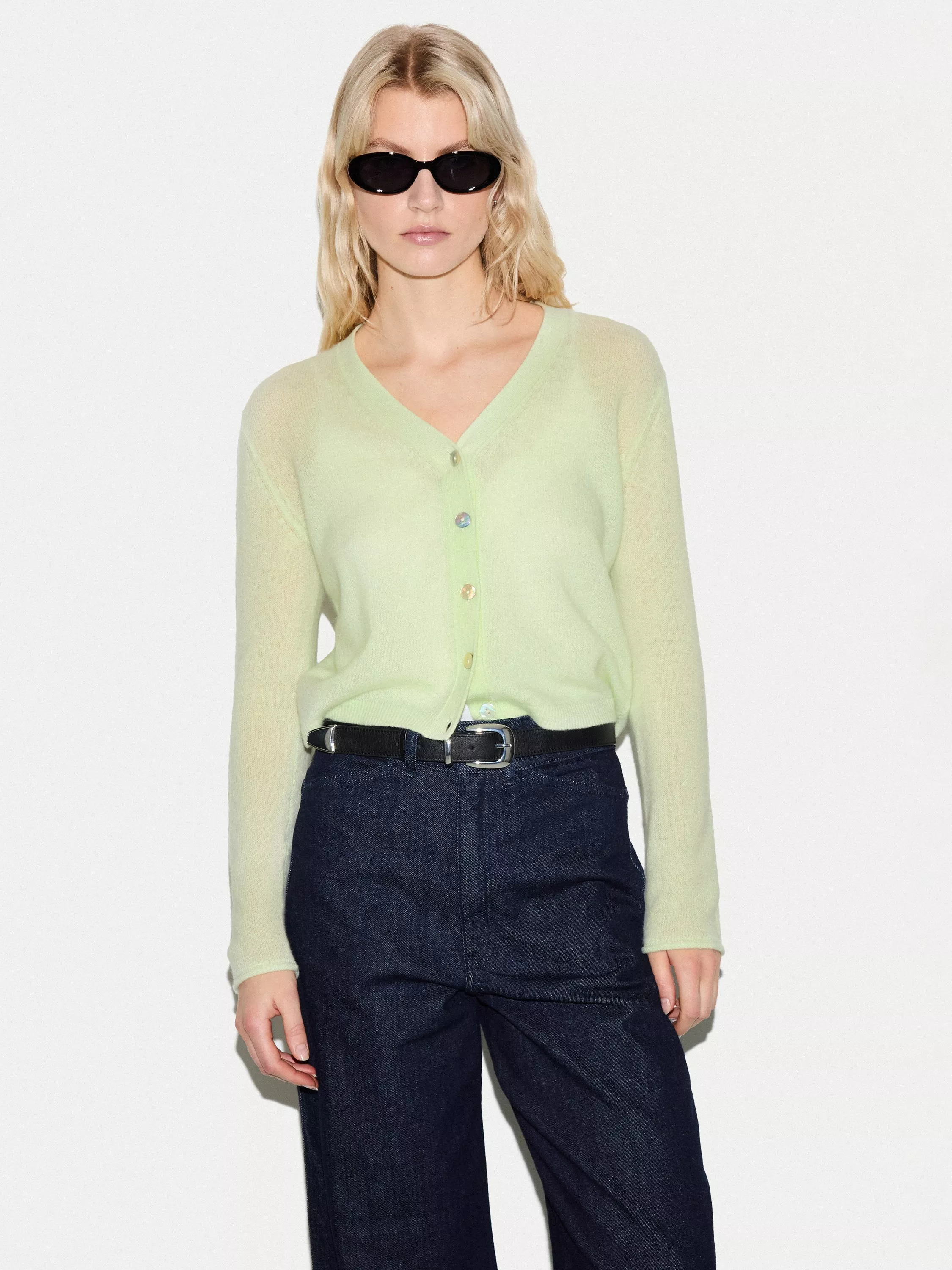 Crafted from a luxurious merino cashmere blend, this classic cardigan is given a preppy update with a higher V-neck silhouette for the new season. The simple design allows for versatile layering from winter through to spring.