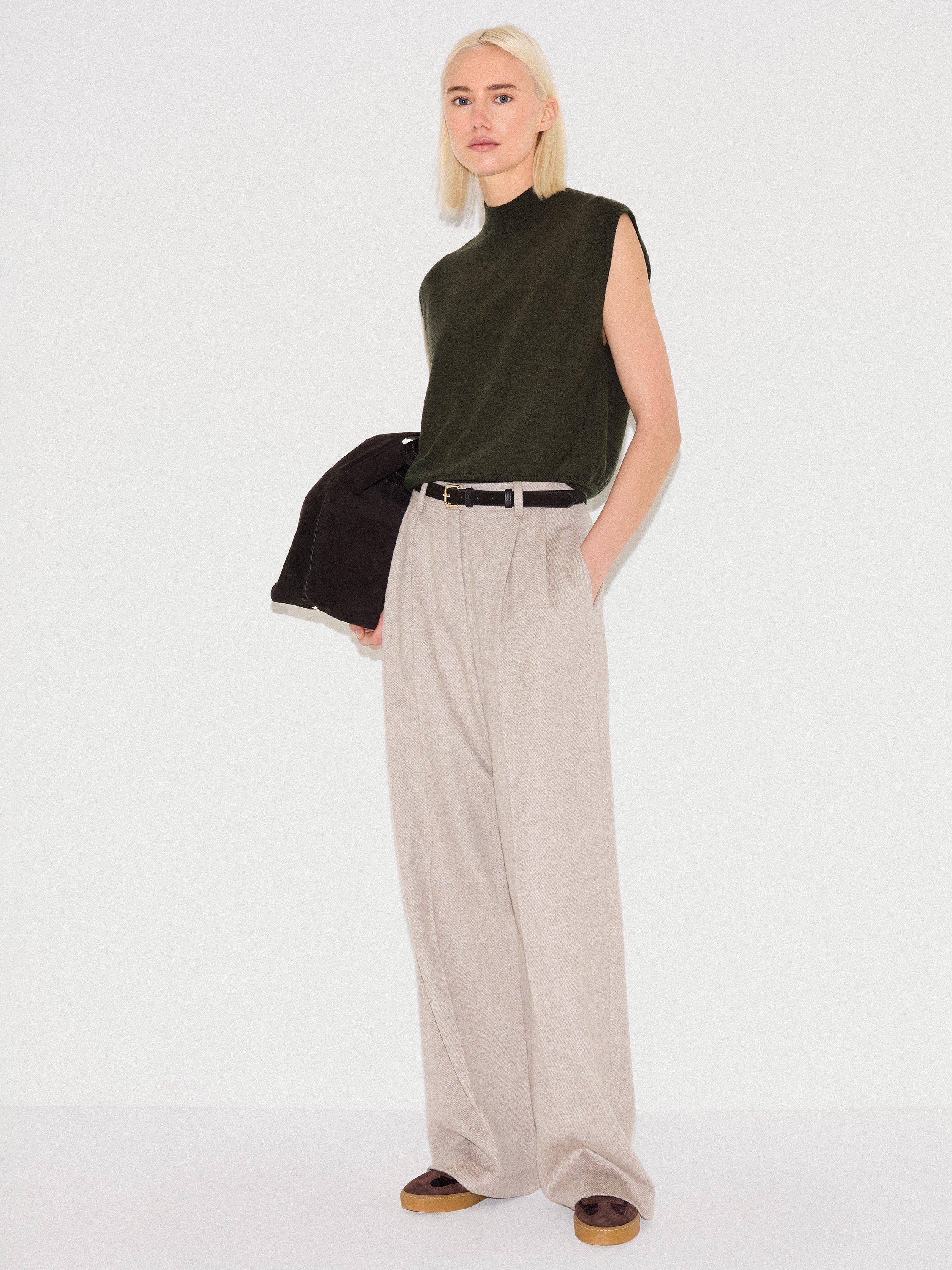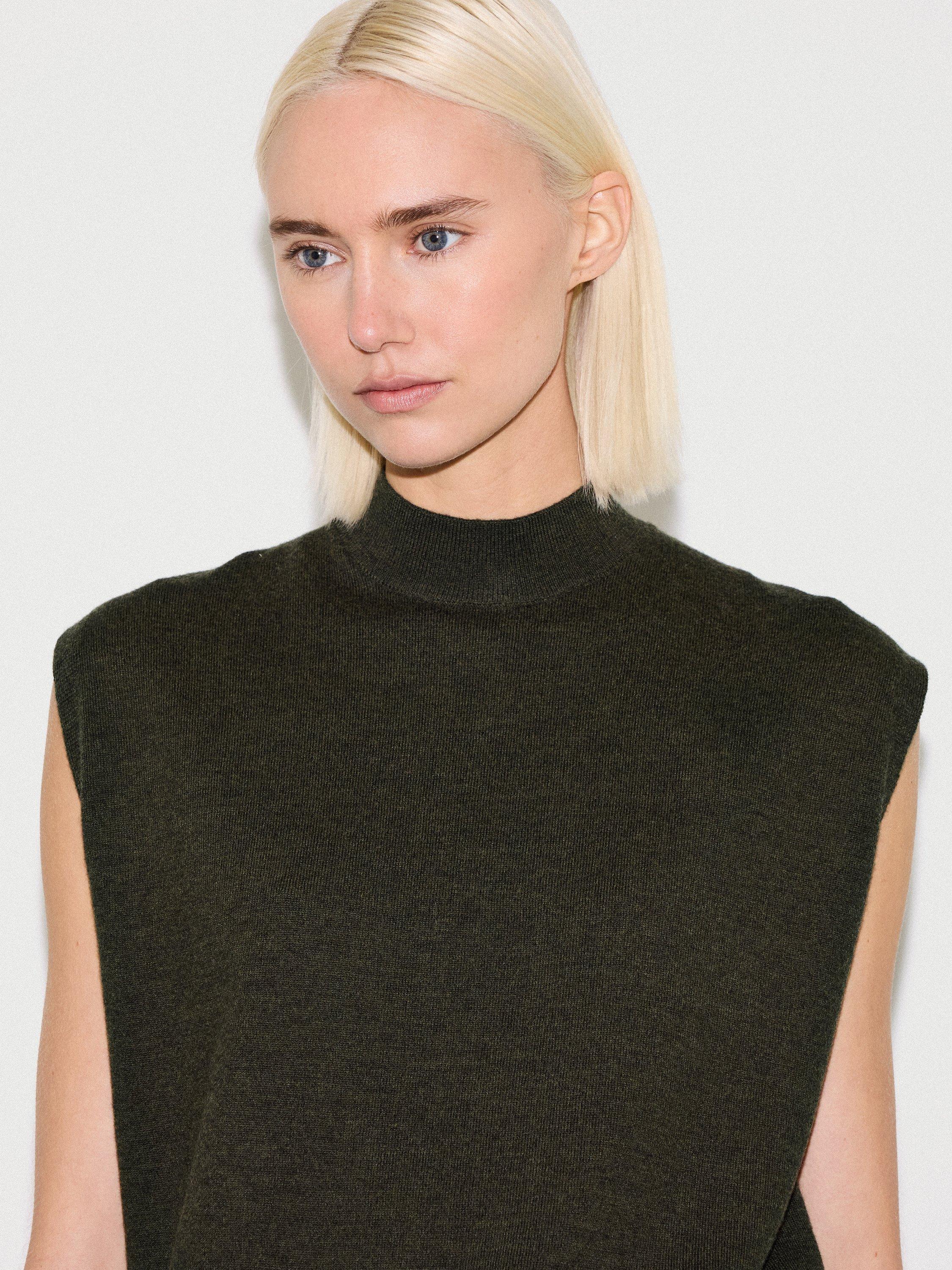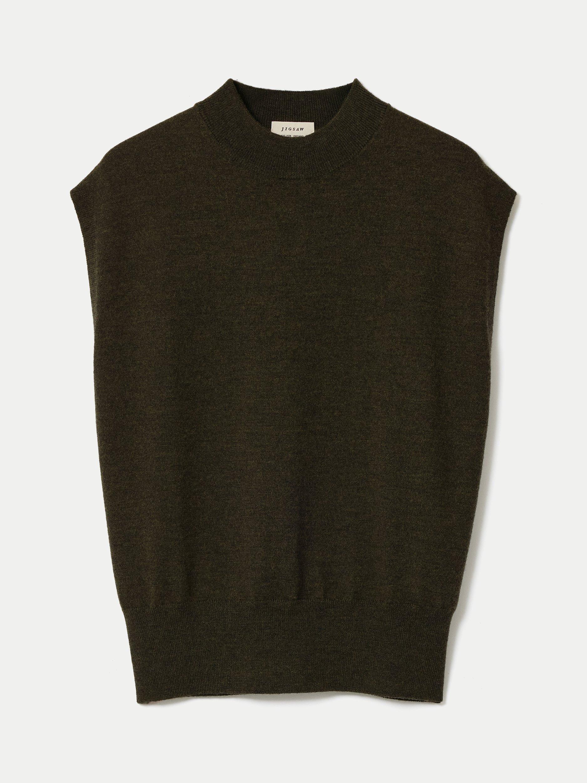 A sleeveless wool blend tank top from Jigsaw. The funnel neck offers comfort and smart style, perfect for your day.
