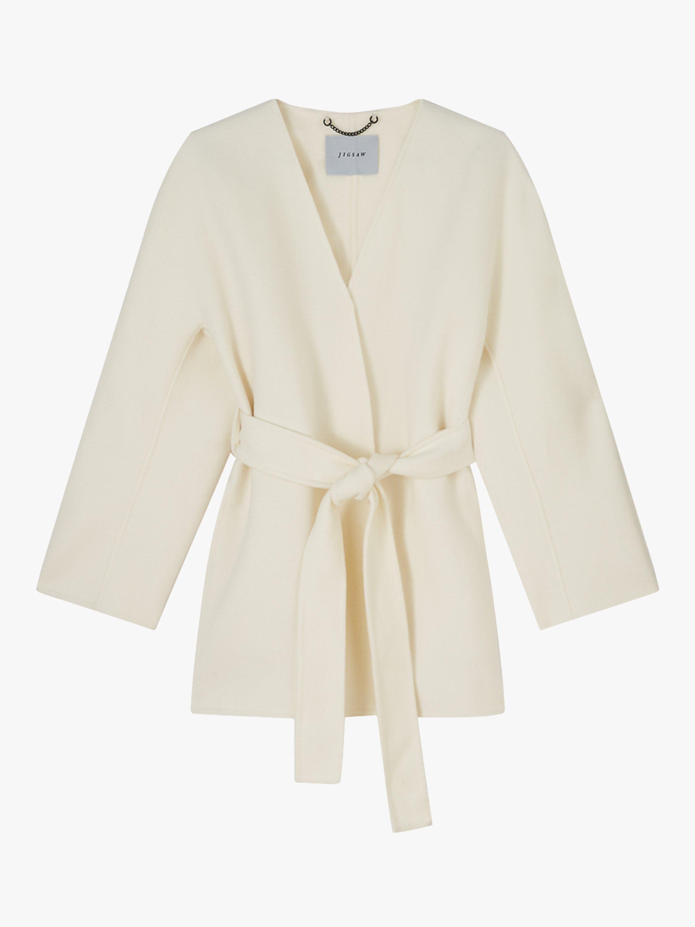 When it comes to timeless, minimalist design, Brighton born label Jigsaw knows a thing or two. Whipped up from a warming wool blend in a contemporary wrap shape, the shorter length of this coat and relaxed fit around the arms and shoulders allows for movement while still keeping you cosy, while the bright ivory hue associates with warmer times. The perfect choice for transitioning through the British seasons.