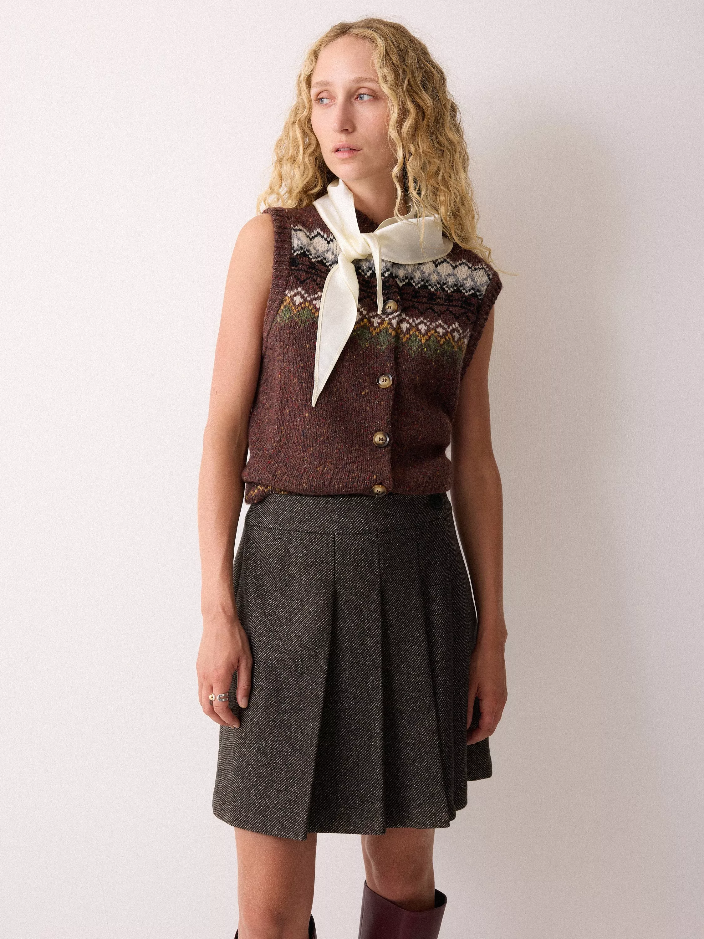 A mini-length skirt from Jigsaw. In a comfortably pleated A-line, it's crafted from a wool blend and equipped with a button fastening.