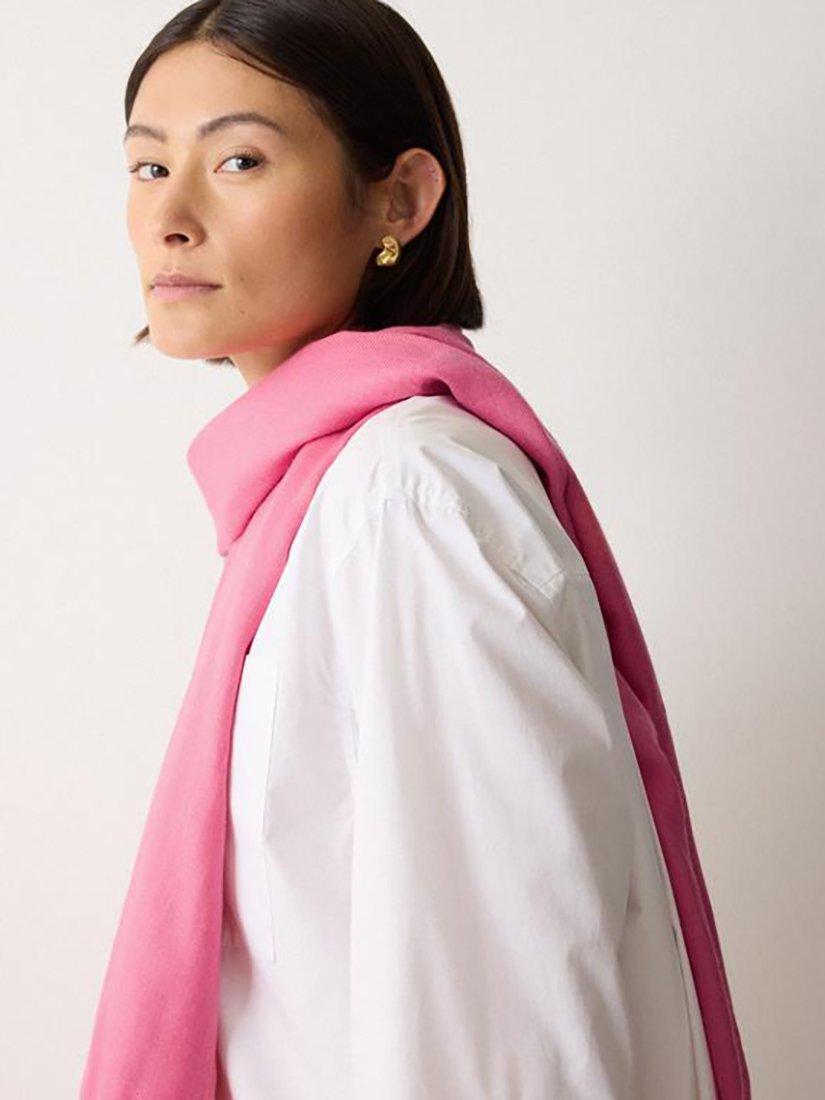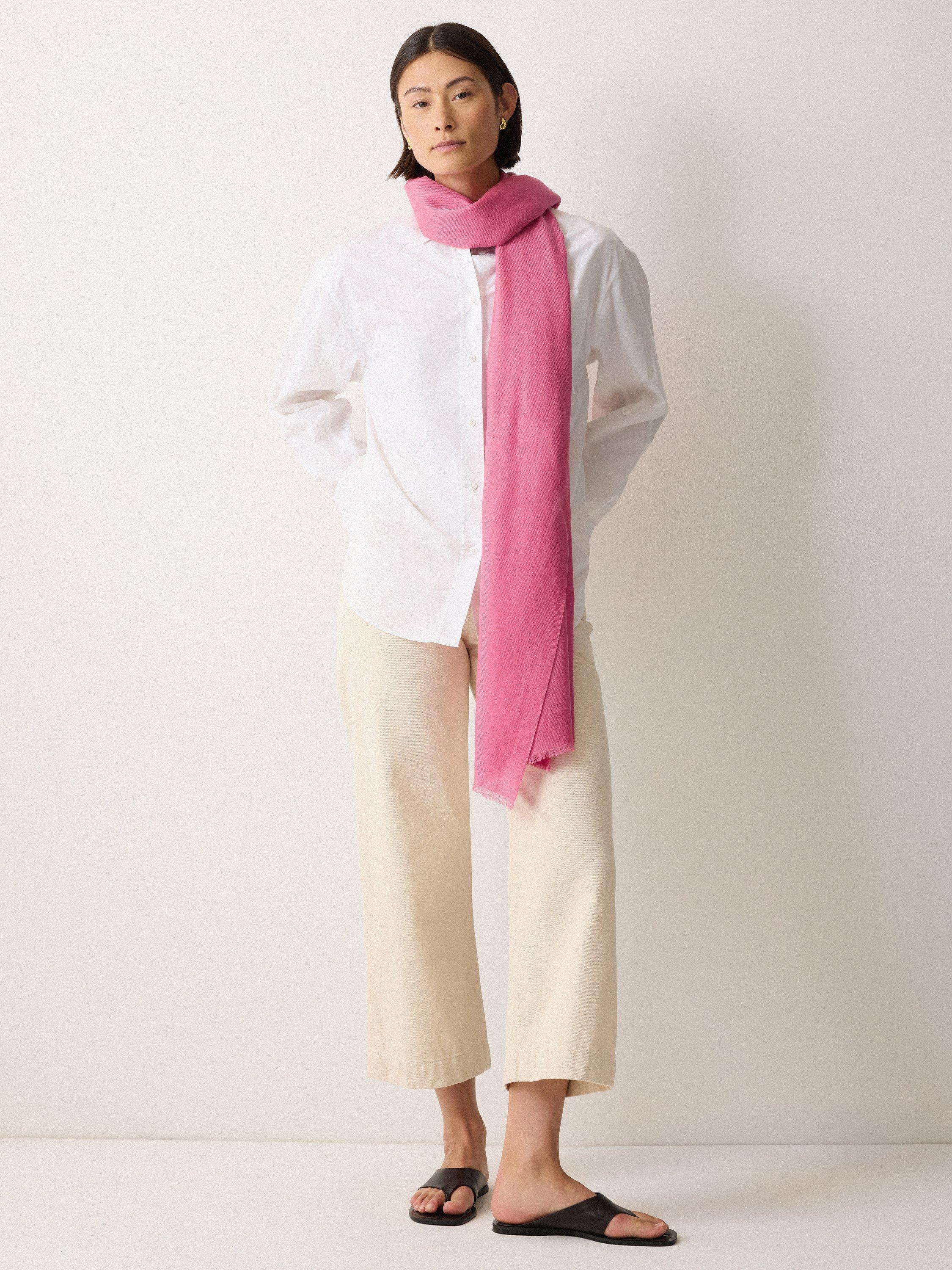 Crafted from a refined blend of lightweight wool and silk, this pashmina is the perfect accessory for draping over all your spring and summer looks.