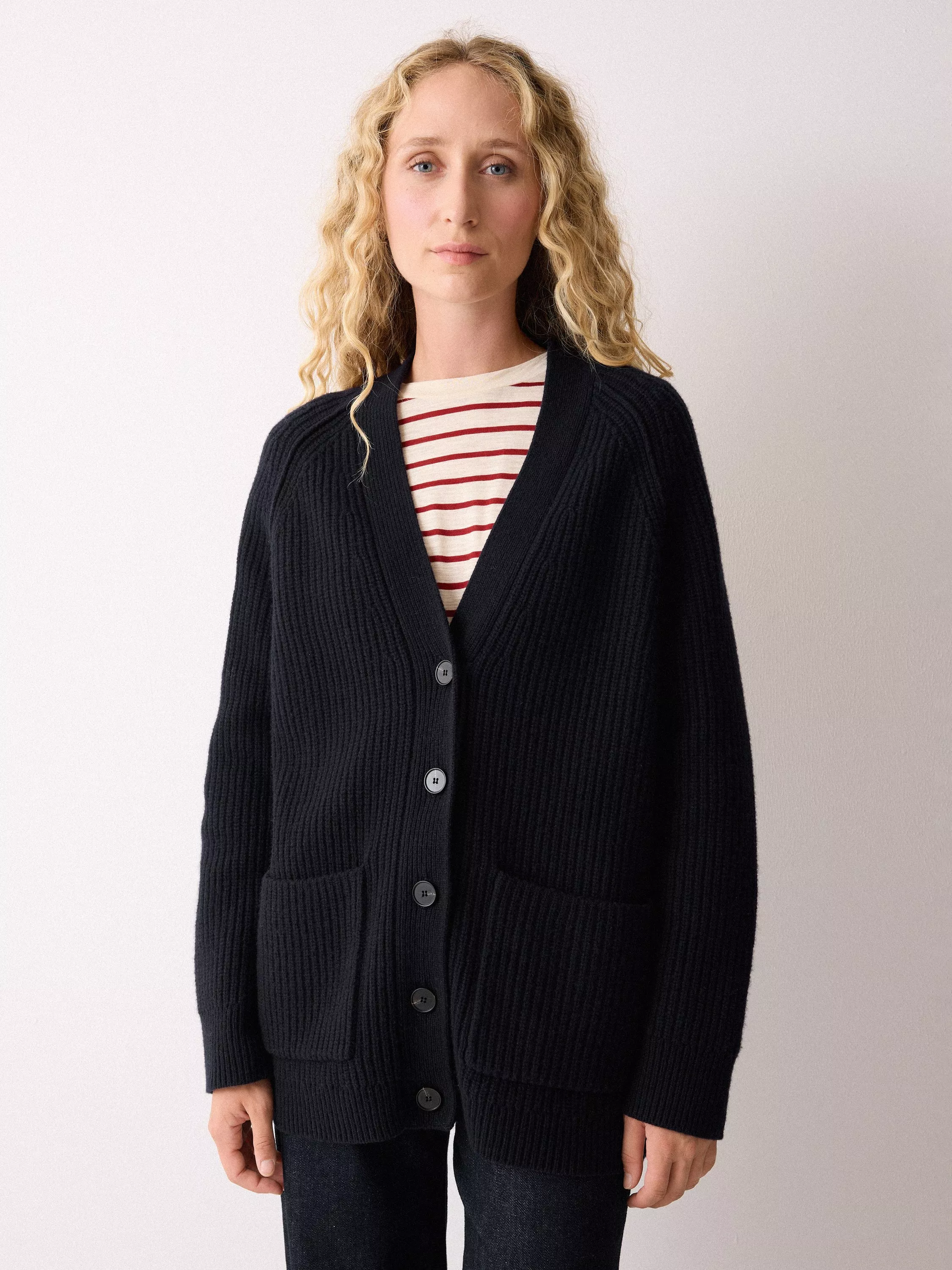 Sure to be a staple layering piece as the temperature cools, this cardigan by Jigsaw is warm and cosy in pure wool.