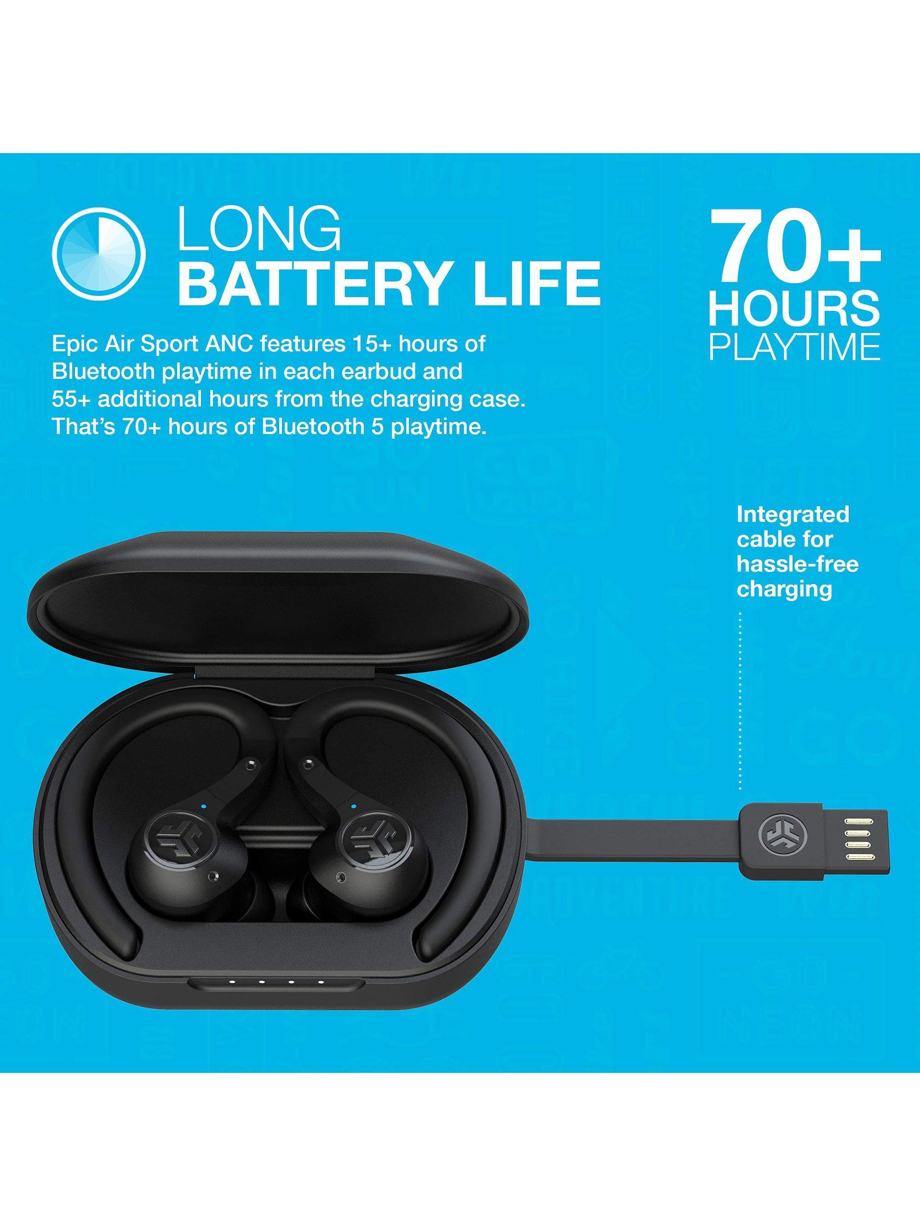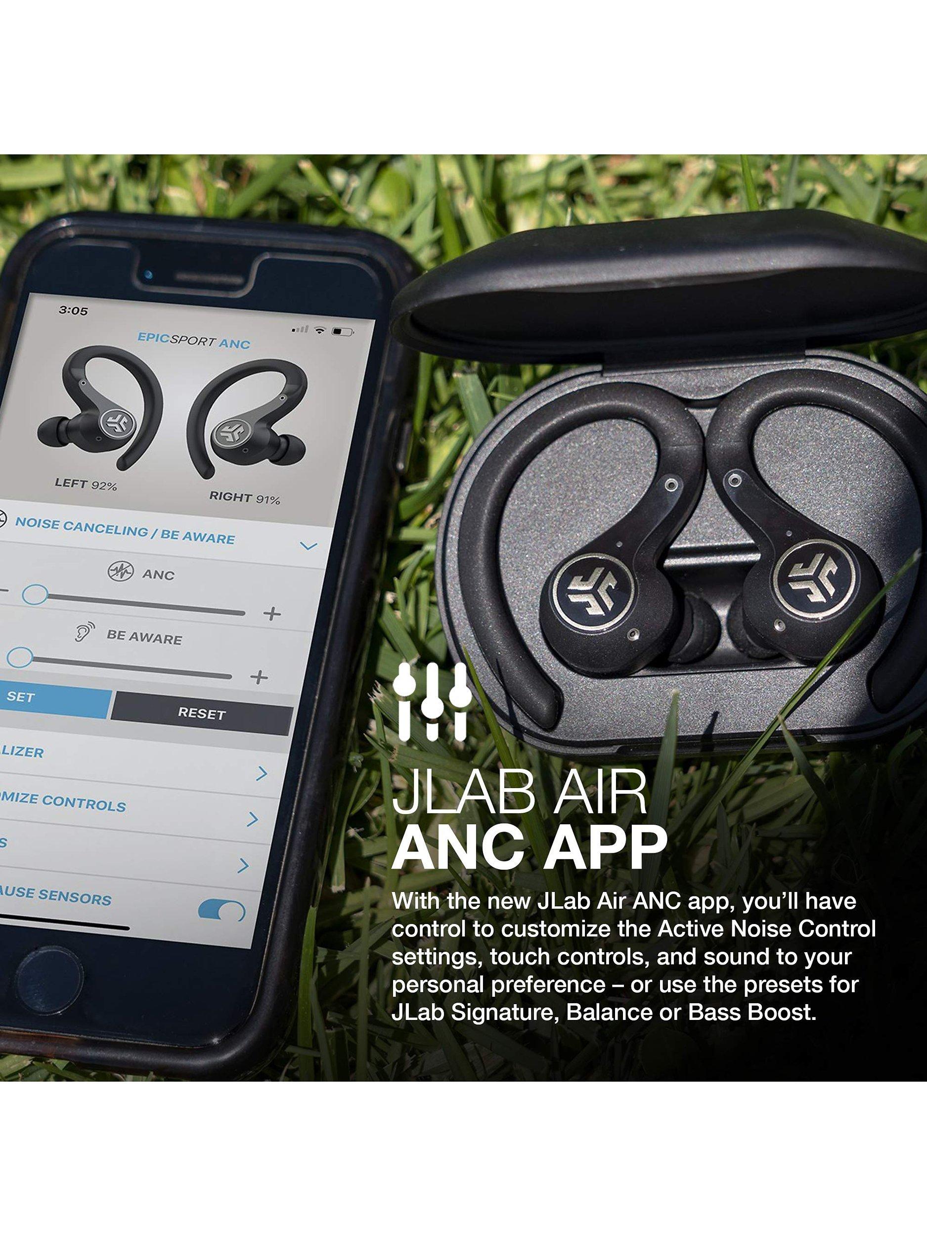 JLabEpic Air Sport ANC Noise Cancelling True Wireless Bluetooth Sweat & Weather-Resistant In-Ear Headphones with Mic/Remote, Black