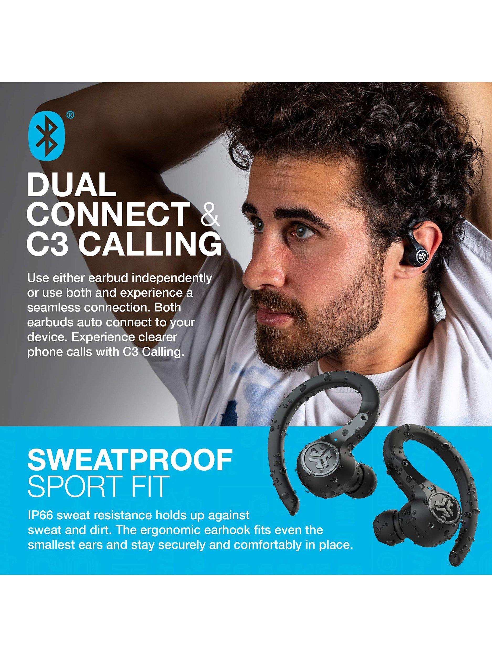JLab's earhook design and multiple ear tips give a wide range of customisable fit options for security and comfort. IP66 rated sweat-proof, they're designed for the most demanding workout, inside or out. And you can rinse them off under the tap afterwards.
