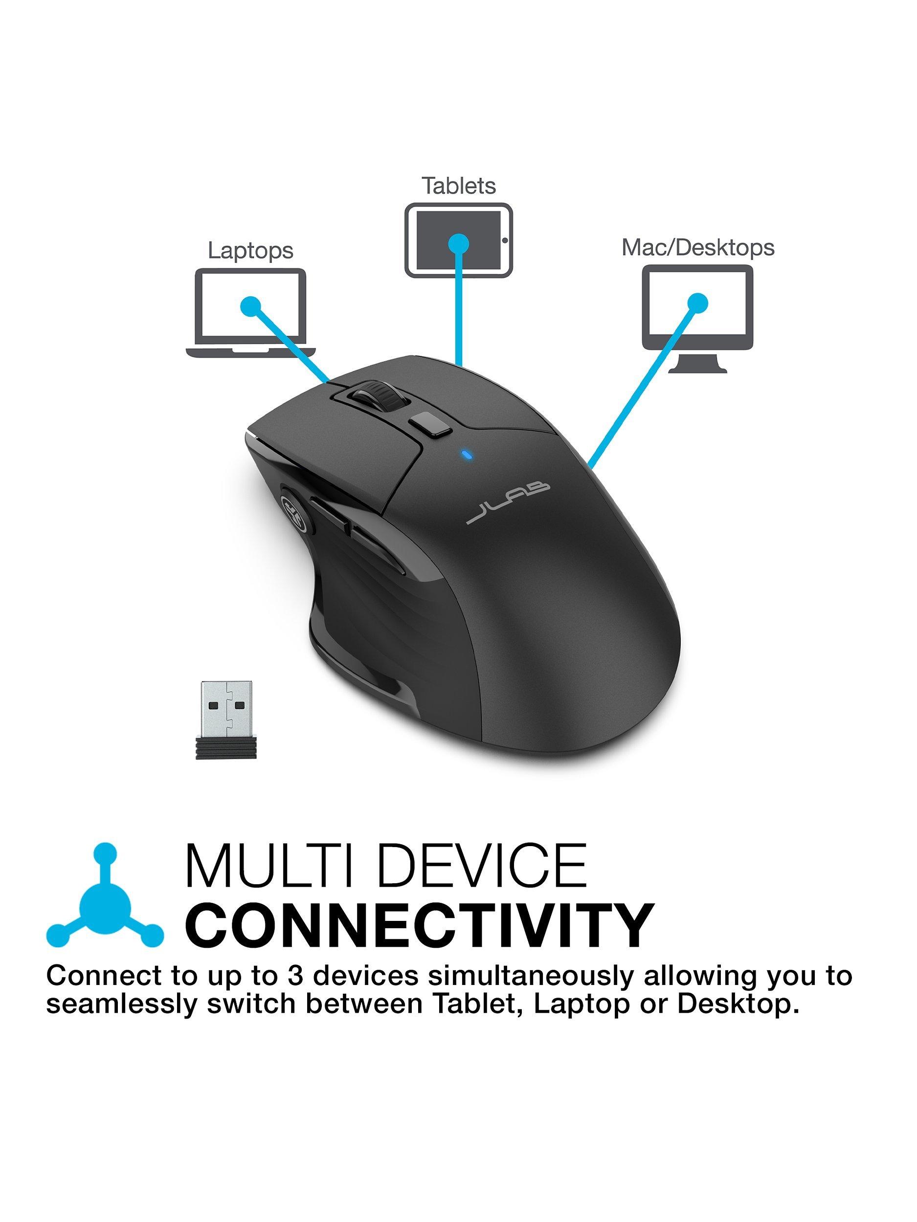 The JBuds Wireless Bluetooth Mouse offers full-sized functionality with a personalised approach. With seven buttons and a comfortable feel, you have everything you need to reach WFH greatness, and everything you want to play your game, your way. And you can save up to three user profiles through the JLab Work app, so switching between your favourite functions and your top devices is only a click away.