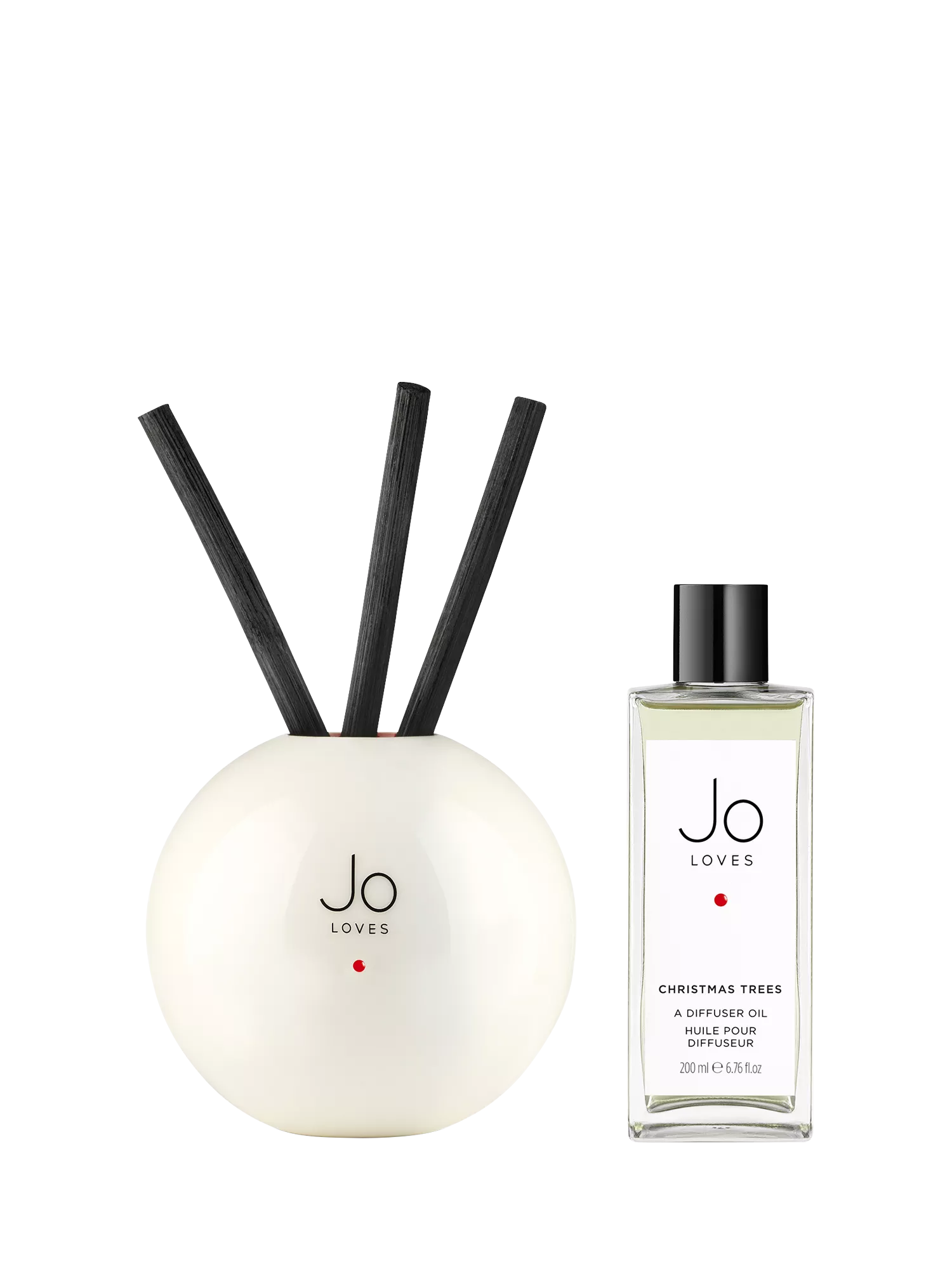 A Fragrance Diffuser set comes with 200ml fragrance oil, three reeds, and the Jo Loves Diffuser Sphere.