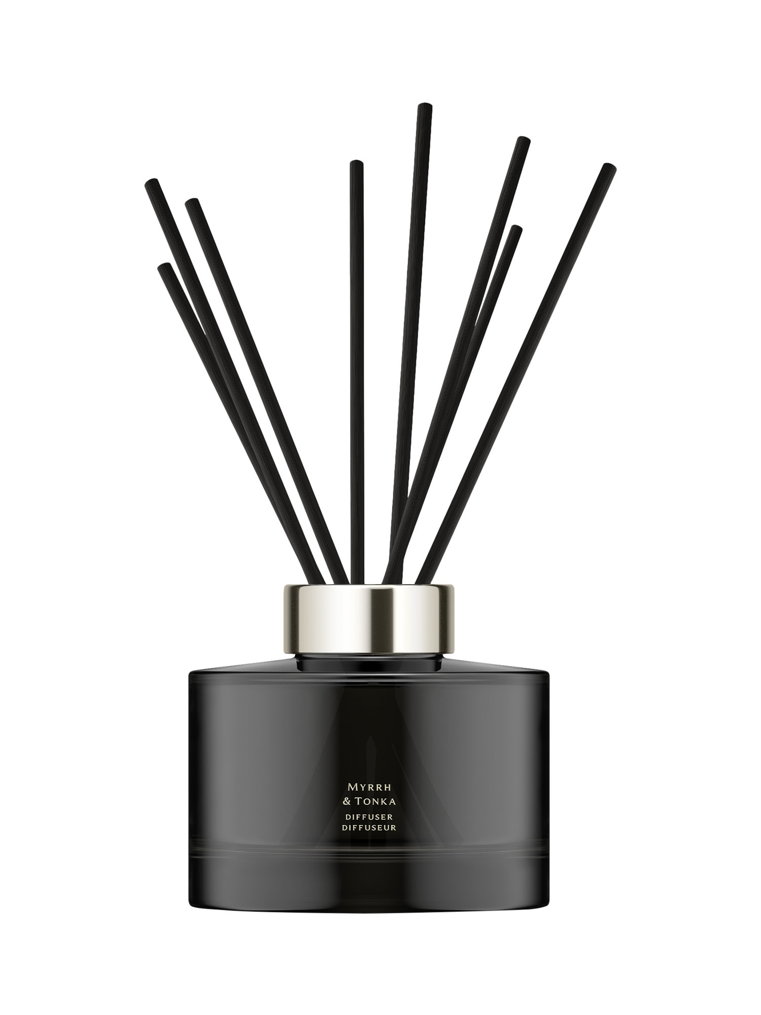 The golden sap of the Namibian myrrh tree harvested in the desert, mingles with warm vanilla notes of the tonka bean. Includes 10 rattan reeds to release scent continuously. For optimum effect use all 10 simultaneously